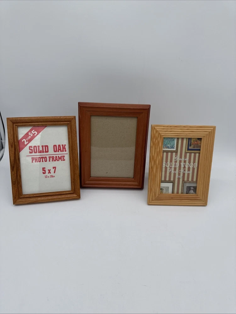 Crafted for moments worth cherishing, this set of three picture frames offers a blend of traditional charm and versatile display options. The set includes one 4x6 inch frame and two 5x7 inch frames, all designed to complement any decor with its classic wood finish. Whether you're looking to showcase your favorite photographs or create a gallery of memories, this unbranded frame set provides a warm and inviting touch to any room. Each frame is made from durable wood, ensuring that your pictures are displayed with care and lasting beauty.