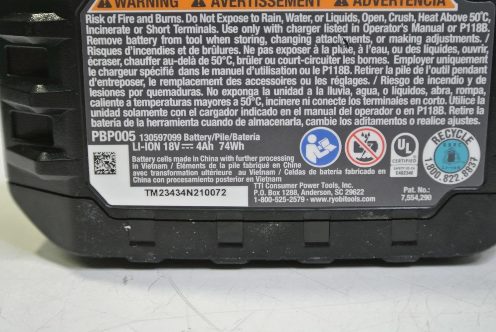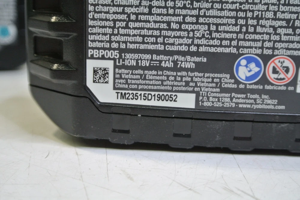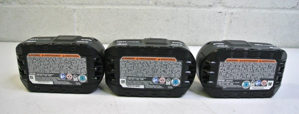 Item available today is the, (3) RYOBI LITHIUM-Ion ONE+ 18V 4Ah Battery PBP005 . This is a used lot of 3 batteries . Batteries have been charged and tested. Ready for use. Please see photos for more details. Items in photos are what come with the listing. Thank you for shopping small business. Terms of Sale Listing is for item and/or accessories shown in photos only. Some states may require a tax be charged at the time of checkout, this is eBay automated. We ship and answer questions Mon-Fri 8am-4pm EST . We stand behind our products and would be happy to assist you if you experience an issue. Please contact us first. We ship to your confirmed PayPal address only using UPS or USPS. Items over $200 may require signature upon delivery. There are no returns on items sold for parts. A RESTOCK FEE UP TO 20% MAY BE CHARGED FOR RETURNS THAT ARE NOT OF FAULT OF THE SELLER OR ITEMS NOT RETURNED IN THE SAME CONDITION. Thank you for shopping small business! Shipping Information Only ships within the Continental United States with one business day processing time. LM 01 /07/2025 ( B23 )