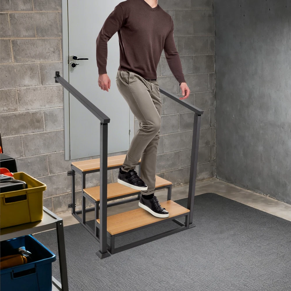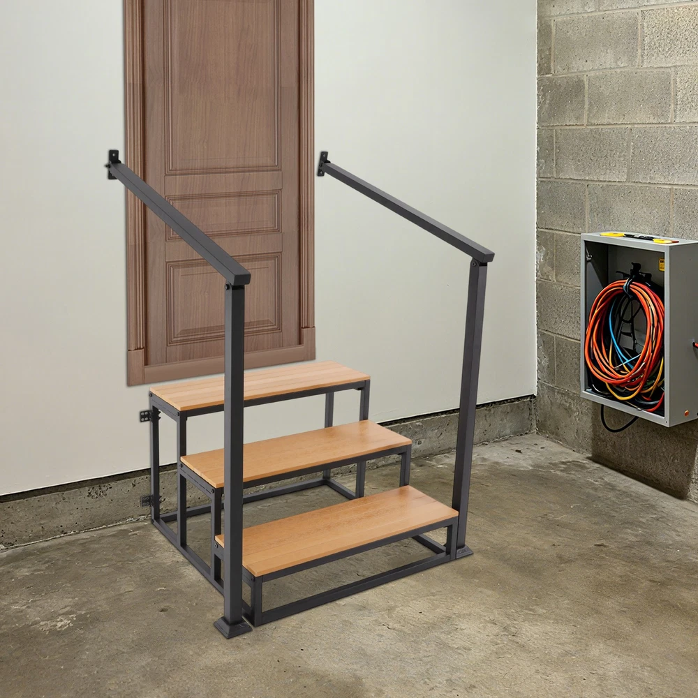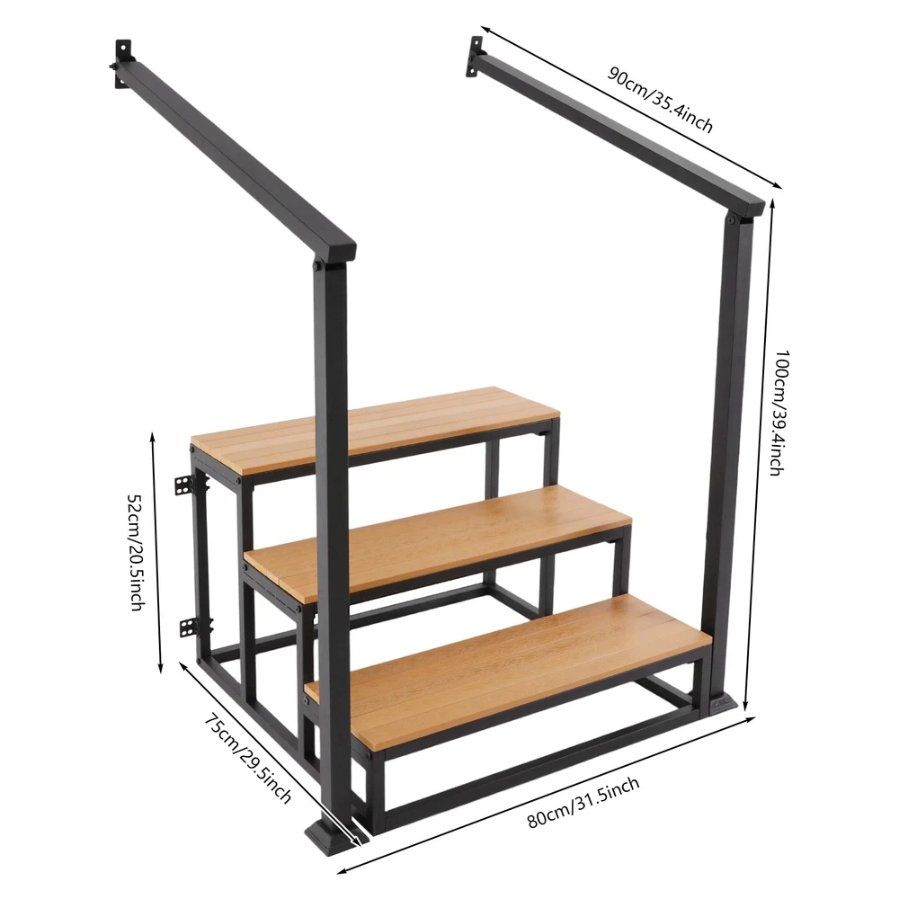 Specifications Material: Wood-plastic Board, Iron Process: Spray Coating, High-temperature Baking Paint Color: Black+Wood Color Board Thickness: 15mm/0.59in Number of Steps: 3 Mounting Type: Wall-mounted, Freestanding Total Load-bearing Capacity: 200kg/440.92 lbs Handrail Height: 100cm/39.37in Handrail Length: 90cm/35.43in Overall Stair Size: 80*75*52cm/31.5*29.53*20.47in Package Size: 105*60*19cm/41.34*23.62*7.48in Gross Weight: 26.05kg/57.43 lbs Net Weight: 23.85kg/52.58 lbs Package Included 1* 3-step Stair 1* English Installation Diagram All Accessories for Installation 3 Steps Stairswith Handrail Garage Steps Prefabricated Outdoor Wooden Stairs Description Description Crafted from premium materials, this 3-step stair offers robust weight-bearing capacity, ensuring your peace of mind during use. The handrail design enhances safety and stability, while its minimalist appearance greatly blends into various environments, combining elegance with practicality. The simple structure facilitates easy installation and cleaning. Key Features Premium Materials: Crafted from wood-plastic board and iron with spray coating, high-temperature baking paint process , it provides wear, corrosion, and rust protection, ensuring long-lasting durability. High Weight Capacity: With a 15mm thickened board design and sturdy structure, this product can bear approximately 440.92 lbs , allowing you and your family to use it with peace of mind. Safe and Reliable: The slip-retardant textured pedal effectively prevents slipping, making this product a safe and reliable assistive tool. It also comes with handrails, providing additional support and stability when going up and down stairs. Easy Assembly & Maintenance: The product has a simple structure, comes with all necessary accessories, and includes an English installation diagram, allowing you to quickly assemble and use it, saving you time and effort. Its simple structure can be easily cleaned by simply wiping it with a damp cloth (not included). Elegant Appearance: The combination of black metal frame and wood color boards provide it with a nice appearance, and it will fit nicely into your house's décor and provide convenience for you and your family. Details Smooth Edges: They can protect your hands from getting scratched during installation and daily use. Fixed Components: The product includes dedicated wall-mounted fixing kits that can be securely attached to the wall with screws, significantly enhancing overall stability and safety. Application This product can provide additional height for cleaning, changing light bulbs, or reaching items. It is suitable for basements, storage rooms, doorways, etc. Whe n not in use, it can function as a decorative storage solution, such as a bookshelf, plant stand, or library ladder. Specifications Material: Wood-plastic Board, Iron Process: Spray Coating, High-temperature Baking Paint Color: Black+Wood Color Board Thickness: 15mm/0.59in Number of Steps: 3 Mounting Type: Wall-mounted , Freestanding Total Load-bearing Capacity: 200kg/ 440.92 lbs Handrail Height: 100cm/39.37in Handrail Length: 90cm/35.43in Overall Stair Size: 80*75*52cm/ 31.5 * 29.53*20.47 in Package Size: 105*60*19cm/ 41.34*23.62*7.48in Gross Weight: 26.05kg/ 57.43 lbs Net Weight: 23.85kg/ 52.58 lbs Package Included 1* 3-step S tair 1* English Installation Diagram All Accessories for Installation Notes Please check the product size before ordering to make sure it fits your needs. Please use the product within its weight capacity to avoid damage. Please note that the screws must be tightened with your tool so that the load-bearing capacity of the product is as expected. Please note that this product does not include other items shown in the picture. Please allow the slight color difference caused by the shooting light and 1-3cm error due to manual measurement, and make sure you do not mind before you order. Description Payment Delivery details Terms of sales About us Contact us Payment We accept ebay payment 。 Fees such as import duties, taxes are not included in the item price or shipping costs. These charges are the buyer's responsibility. Delivery details Shipping: 2-9 working days to: USA Terms of sales We maintain high standards of excellence and strive for hundred percent customer satisfaction. Feedback is very important to us. We hope that you contact us immediately before you give neutral or negative feedback, so that we can address your concerns. It is impossible to address issues if we do not know about them! About us Your satis faction is our ultimate goal. We work hard to earn your trust and future business. Our certified technicians have tested each item before shipping. The unit comes with 1 year limited warranty on all manufacturing defects. a) If you receive a defective item, you may return it or ask for a discount. Please contact us within 14 days after you receive the package. b) What you returned must be intact and in its original packaging as re? u. Customer is responsible for shipping costs of the returned item. c) We will cover the cost of shipping back t with the shipping rate indicated in the registration page. We will send you a new unit or refund the full payment you paid. Thank you. Contact us Business Hour Business Hour: Monday To Friday: 8:30 AM to 5:00 PM (Beijing China time) Due to time zones, our reply to your questions may not be immediately. But within above working time, we will reply your email within 24 hours. If it's non-workdays, please kindly be patient and wait till Monday. Please contact us with ebay message. Please feel free to contact us if you have any questions. Monday To Friday: 8:30 AM to 5:00 PM (Beijing China time) Due to time zones, our reply to your questions may not be immediately. But within above working time, we will reply your email within 24 hours. If it's non-workdays, please kindly be patient and wait till Monday. Please contact us with ebay message. Please feel free to contact us if you have any q