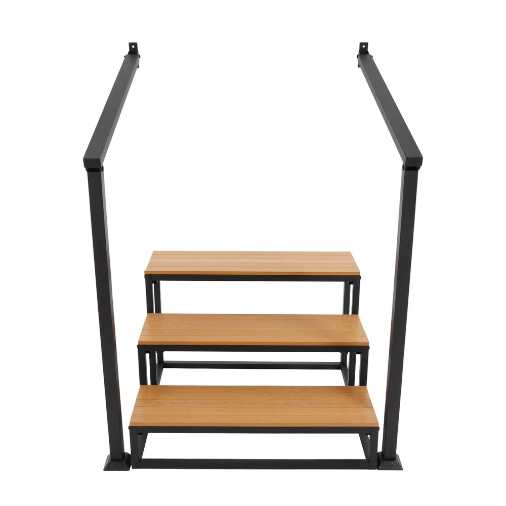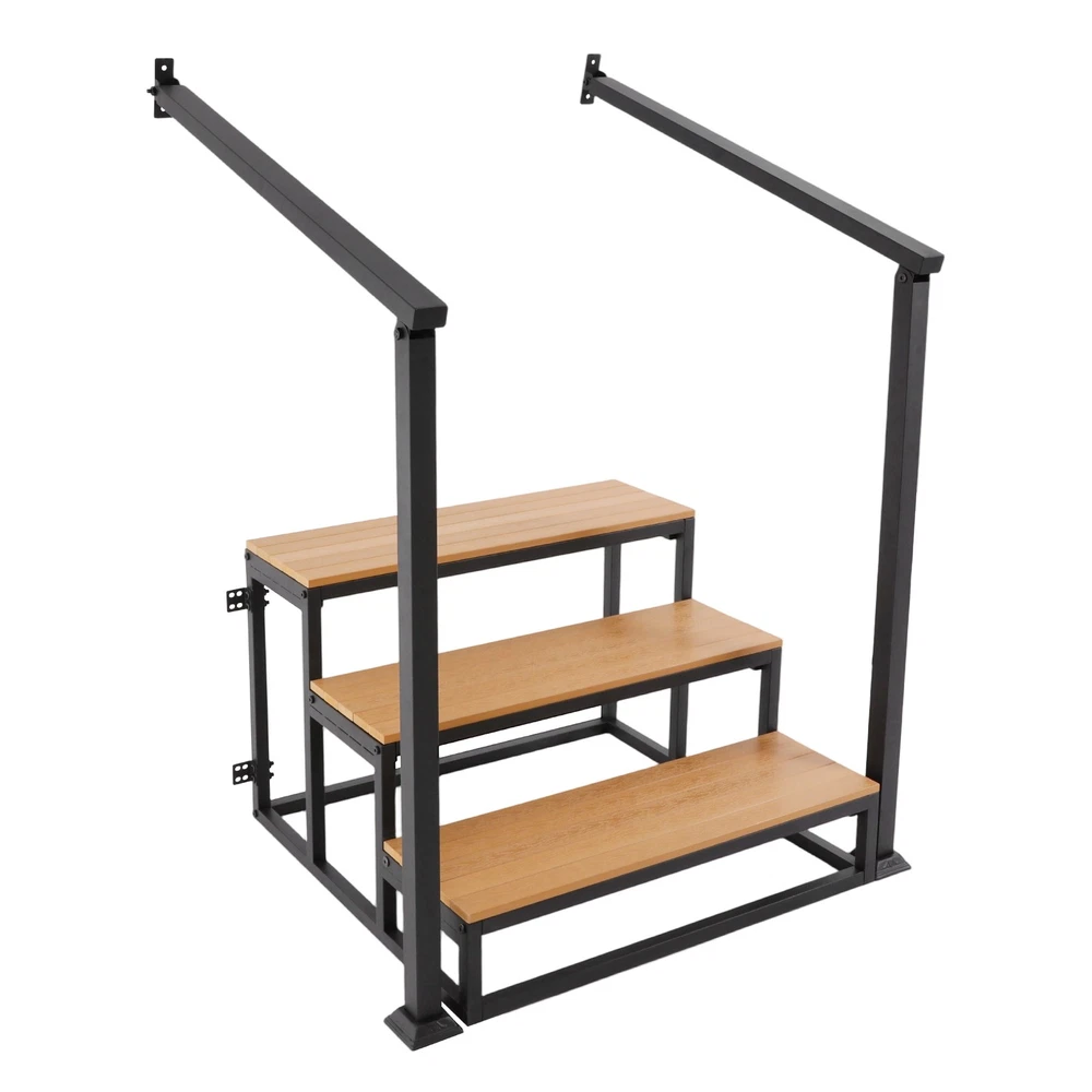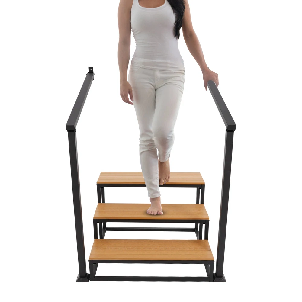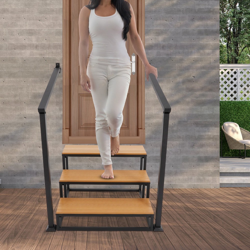 Specifications Material: Wood-plastic Board, Iron Process: Spray Coating, High-temperature Baking Paint Color: Black+Wood Color Board Thickness: 15mm/0.59in Number of Steps: 3 Mounting Type: Wall-mounted, Freestanding Total Load-bearing Capacity: 200kg/440.92 lbs Handrail Height: 100cm/39.37in Handrail Length: 90cm/35.43in Overall Stair Size: 80*75*52cm/31.5*29.53*20.47in Package Size: 105*60*19cm/41.34*23.62*7.48in Gross Weight: 26.05kg/57.43 lbs Net Weight: 23.85kg/52.58 lbs Package Included 1* 3-step Stair 1* English Installation Diagram All Accessories for Installation 3 Steps Stairswith Handrail Garage Steps Prefabricated Outdoor Wooden Stairs Description Description Crafted from premium materials, this 3-step stair offers robust weight-bearing capacity, ensuring your peace of mind during use. The handrail design enhances safety and stability, while its minimalist appearance greatly blends into various environments, combining elegance with practicality. The simple structure facilitates easy installation and cleaning. Key Features Premium Materials: Crafted from wood-plastic board and iron with spray coating, high-temperature baking paint process , it provides wear, corrosion, and rust protection, ensuring long-lasting durability. High Weight Capacity: With a 15mm thickened board design and sturdy structure, this product can bear approximately 440.92 lbs , allowing you and your family to use it with peace of mind. Safe and Reliable: The slip-retardant textured pedal effectively prevents slipping, making this product a safe and reliable assistive tool. It also comes with handrails, providing additional support and stability when going up and down stairs. Easy Assembly & Maintenance: The product has a simple structure, comes with all necessary accessories, and includes an English installation diagram, allowing you to quickly assemble and use it, saving you time and effort. Its simple structure can be easily cleaned by simply wiping it with a damp cloth (not included). Elegant Appearance: The combination of black metal frame and wood color boards provide it with a nice appearance, and it will fit nicely into your house's décor and provide convenience for you and your family. Details Smooth Edges: They can protect your hands from getting scratched during installation and daily use. Fixed Components: The product includes dedicated wall-mounted fixing kits that can be securely attached to the wall with screws, significantly enhancing overall stability and safety. Application This product can provide additional height for cleaning, changing light bulbs, or reaching items. It is suitable for basements, storage rooms, doorways, etc. Whe n not in use, it can function as a decorative storage solution, such as a bookshelf, plant stand, or library ladder. Specifications Material: Wood-plastic Board, Iron Process: Spray Coating, High-temperature Baking Paint Color: Black+Wood Color Board Thickness: 15mm/0.59in Number of Steps: 3 Mounting Type: Wall-mounted , Freestanding Total Load-bearing Capacity: 200kg/ 440.92 lbs Handrail Height: 100cm/39.37in Handrail Length: 90cm/35.43in Overall Stair Size: 80*75*52cm/ 31.5 * 29.53*20.47 in Package Size: 105*60*19cm/ 41.34*23.62*7.48in Gross Weight: 26.05kg/ 57.43 lbs Net Weight: 23.85kg/ 52.58 lbs Package Included 1* 3-step S tair 1* English Installation Diagram All Accessories for Installation Notes Please check the product size before ordering to make sure it fits your needs. Please use the product within its weight capacity to avoid damage. Please note that the screws must be tightened with your tool so that the load-bearing capacity of the product is as expected. Please note that this product does not include other items shown in the picture. Please allow the slight color difference caused by the shooting light and 1-3cm error due to manual measurement, and make sure you do not mind before you order. Description Payment Delivery details Terms of sales About us Contact us Payment We accept ebay payment 。 Fees such as import duties, taxes are not included in the item price or shipping costs. These charges are the buyer's responsibility. Delivery details Shipping: 2-9 working days to: USA Terms of sales We maintain high standards of excellence and strive for hundred percent customer satisfaction. Feedback is very important to us. We hope that you contact us immediately before you give neutral or negative feedback, so that we can address your concerns. It is impossible to address issues if we do not know about them! About us Your satis faction is our ultimate goal. We work hard to earn your trust and future business. Our certified technicians have tested each item before shipping. The unit comes with 1 year limited warranty on all manufacturing defects. a) If you receive a defective item, you may return it or ask for a discount. Please contact us within 14 days after you receive the package. b) What you returned must be intact and in its original packaging as re? u. Customer is responsible for shipping costs of the returned item. c) We will cover the cost of shipping back t with the shipping rate indicated in the registration page. We will send you a new unit or refund the full payment you paid. Thank you. Contact us Business Hour Business Hour: Monday To Friday: 8:30 AM to 5:00 PM (Beijing China time) Due to time zones, our reply to your questions may not be immediately. But within above working time, we will reply your email within 24 hours. If it's non-workdays, please kindly be patient and wait till Monday. Please contact us with ebay message. Please feel free to contact us if you have any questions. Monday To Friday: 8:30 AM to 5:00 PM (Beijing China time) Due to time zones, our reply to your questions may not be immediately. But within above working time, we will reply your email within 24 hours. If it's non-workdays, please kindly be patient and wait till Monday. Please contact us with ebay message. Please feel free to contact us if you have any q
