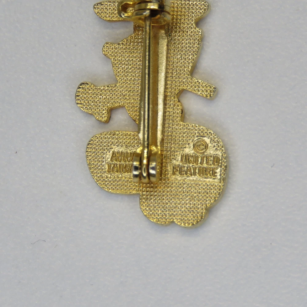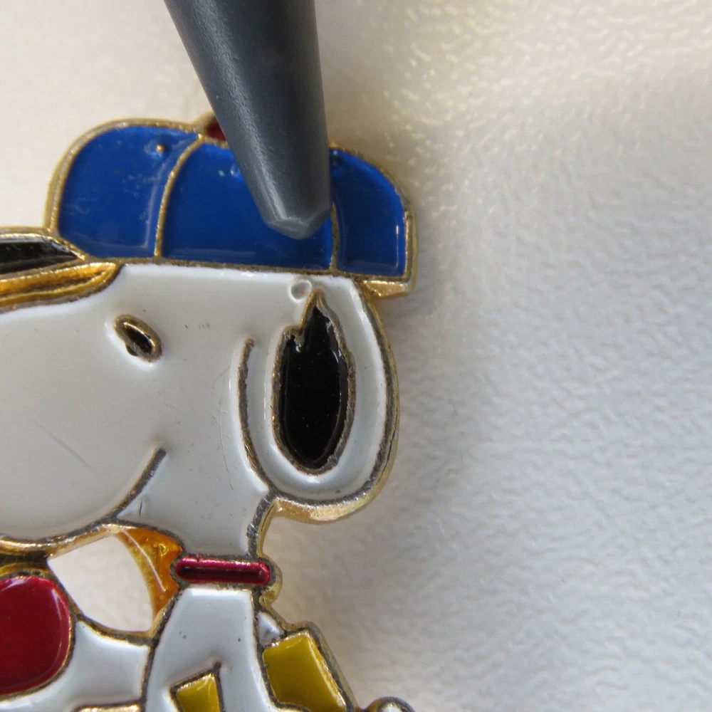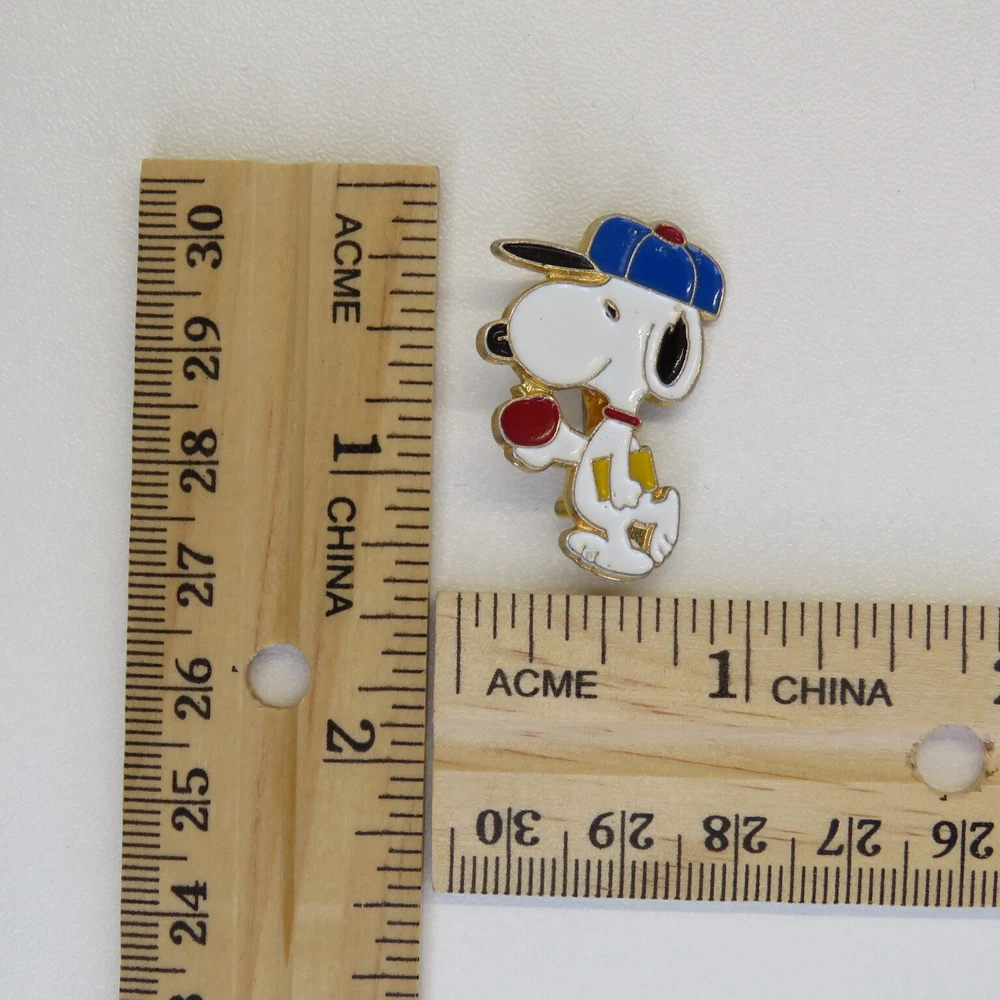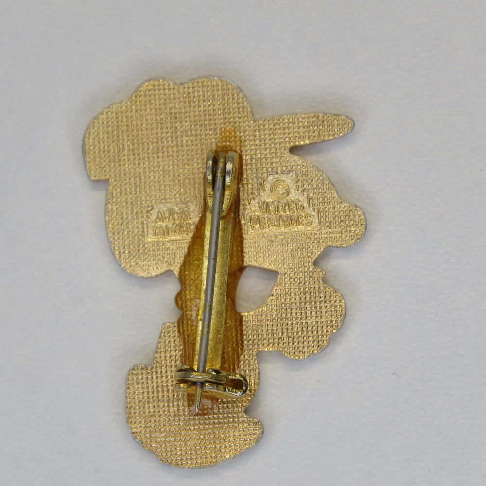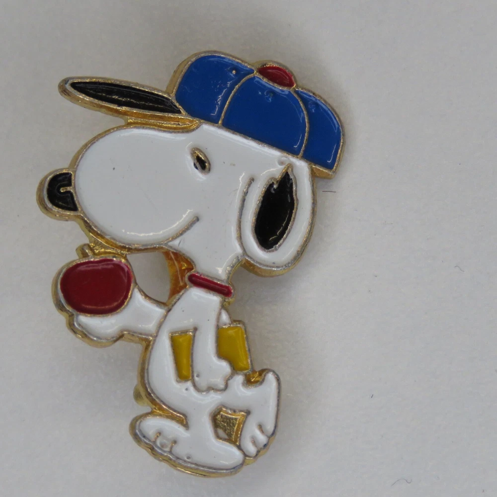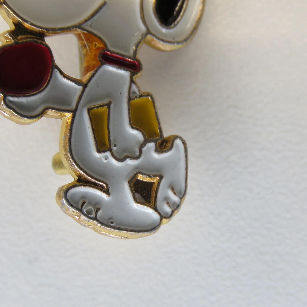 This is a lot of three vintage Snoopy lapel pins. The pins are marked on the backsides "United Features" and "Aviva Taiwan". The pins have enamel set in a gold tone metal. The apple carrying Snoopy has a lower quality enamel with manufacturing flaws in the form of small broken bubble spots. All pin mechanisms are in working order with the pilot and hockey pins measuring approximately 1 inch in height. Please look closely at the pictures for actual condition and pins included. Please contact me with any questions. When possible I can combine shipping on multiple purchases. Please wait for a revised invoice before paying. Check out my other cool items!