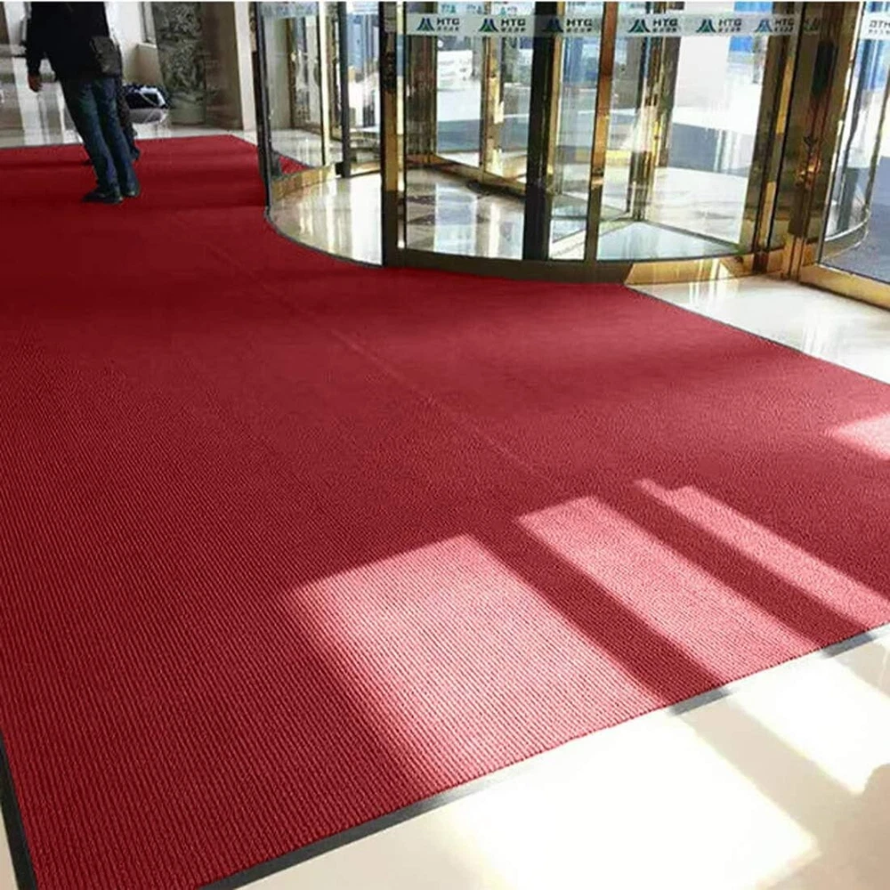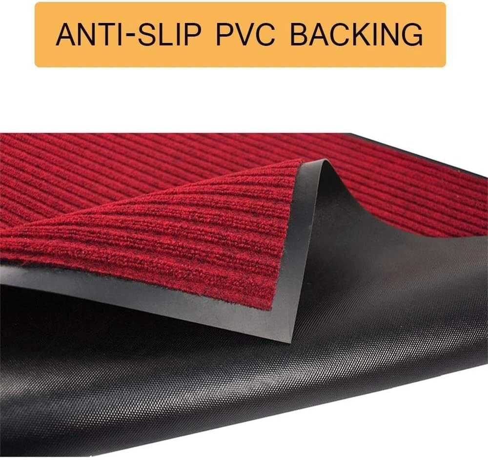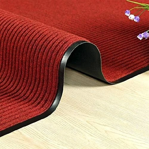 3' x 10' Brush Step Entrance Mat Heavy Duty, Commercial Grade Door Floor Mat Tough Entry Collection Slip Skid Entrance Mat with Rubber Backing Indoor Outdoor Rug Dark Red The large mats are made of high quality polyester and recycled rubber and includes non slip rubber backing which prevents moisture leaks while keeping the mat in place. Since the back side is processed with rubber material, it has excellent anti-slip resistance to stretching, Shrinking, Wrinkle and Abrasion. SIZE: W3'xL10'. 10mm cut with scissors, you can cut freely according to the space of the room. A mat that can be used both indoors and outdoors. The rugged high quality ribbed polyester design allows you to scrape dirt and debris from your shoes. Let the welcome mat clean off your shoes. Perfect for inside or outside entryways near door, closets, laundry, garage, patio or other high traffic indoor outdoor areas.