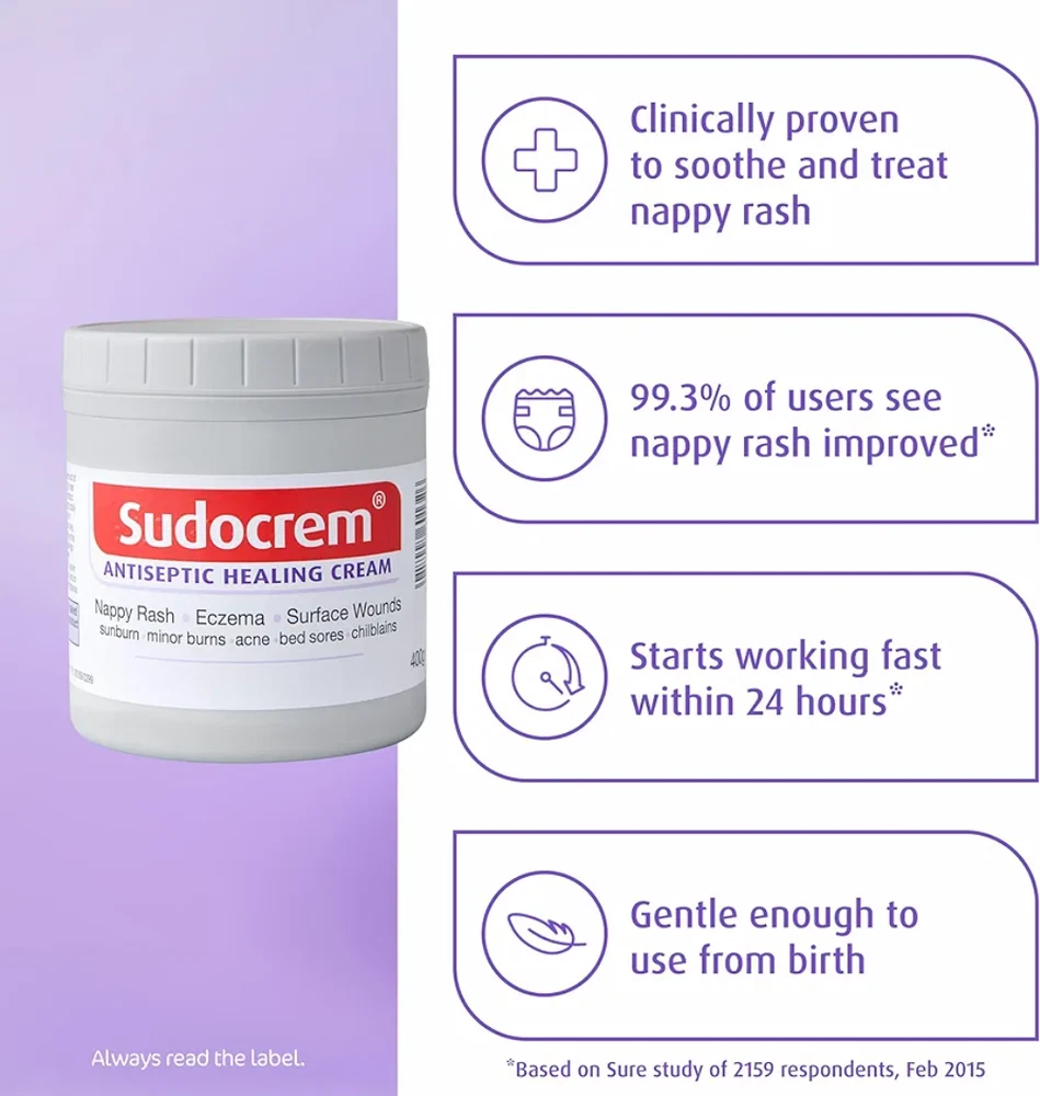 3 x Sudocrem Antiseptic Healing Cream 400g - Exp 2026 Brand: Sudocrem Item form: Cream Item weight: 400 Grams Age range (description)Baby Active ingredientsZinc Oxide Material Type FreeAlcohol Free UK's NO 1 NAPPY RASH CREAM* clinically proven to soothe, heal, and protect your baby’s delicate skin. Reduces nappy rash rapidly**, Gentle enough to use from birth MULTI USE, treats nappy rash, acne, eczema, minor wounds, bed sores, sunburn, minor burns, and chilblains. Sudocrem is an antiseptic cream and zinc oxide cream with antibacterial and antifungal properties UNIQUE FORMULA contains zinc oxide, which helps to reduce the loss of fluid from the skin; hypoallergenic lanolin, which soothes and softens skin; and benzyl alcohol, which has local anaesthetic and antiseptic properties FORMS A WATER-REPELLENT BASE that acts as a protective barrier, preventing contact with irritants like urine and faeces with the skin, preventing further irritation CONTAINS A MILD ANAESTHETIC to help ease pain and irritation ACNE TREATMENT – helps to reduce redness and swelling. Antiseptic properties minimize the risk of infection, which helps prevent the spread of acne-causing bacteria ECZEMA TREATMENT used to calm, soothe, and help heal eczema flare ups on face, hand and body SUNBURN / MINOR BURNS reduces redness and pain associated with sunburn and minor burns helping provide soothing relief SUITABLE FOR ALL SKIN TYPES See less Product specifications General Information Product Name Sudocrem Antiseptic Healing Cream: Nappy Rash, 400 g Weight 400 g Volume 400 litres Units 400.0 gram Brand Sudocrem Format Cream Terms of Sale Color May Vary Slightly Due to the Color Calibration of Each Individual Monitor and Light Brightness Concentration During Taking Picture . Please Note the Picture Not Refer the Actual Sizes of the Goods and You Should Referee to Description and Item Details. We are not responsible for any customs charges or any other international fees. Customs and duties charges and any Additional charges for customs clearance will solely be the responsibility of the buyer. When Customs Clearance Procedures are Required, It Can Cause Delays Beyond our Original Delivery Estimates and We are Not Responsible for any Delays Resulting from That. Please don't forget to LEAVE me FEEDBACK after you get your item in a Satisfactory Condition. If you have any problem with the item, please let me know as soon possible Please review our other products to sell more products and provide good offers Shipping We ship our products with DHL within 3 days of full payment, and a tracking number will be provided once the product is shipped. Shipping takes 3 to 5 days work.