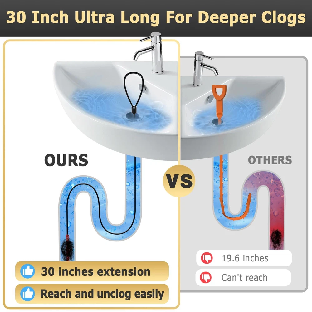 Drainsoon 30 Inches Drain Snake Hair Clog Remover, Upgraded Anti-break Metal Drain Hair Remover Tool with Nylon Coating, Drain Auger for Shower Drain, Kitchen, Bathtub Sink Cleaning (Black-3pack) [Upgraded Anti-break Metal Plumbing Snake With Nylon Coating] Compared to plastic hair snakes, these drain hair removers consist of premium steel with 300 lbs load-bearing capacity, which increases great rigidity to prevent them from snapping effectively. And combined with nylon coating, these tools are also flexible enough to bend into complex “P/U/S” traps. So, with a combination of metal and nylon materials, the drain clog remover will be durable and flexible for cleaning the clogs better. [Upgraded Micro-hooks Design For Efficient Cleaning ] Multi micro-hooks are integrated on the end of the sink snake, helping you cling to hair clogs and grime effectively. Moreover, with 0.23” in width, the drain auger is capable of passing through narrow spaces in the pipes without getting stuck. Reinforced with tightly stitched edges, unlike plastic snakes’ barbs which easily break off in pipes, this shower snake can prevent micro-hook parts from detaching to cause more blockage. [30 Inches Extended Sink Snake For Deeper Blockage] According to the International Residential Code, the standard distance between a kitchen sink drain and the floor is 28 inches. This means that our 30-inch hair drain clog remover is long enough to go deeply into most pipes to reach and unclog the blockages in the sink drain line. Thus, this drain cleaner tool could be applied to most floor drains, bathroom sinks, bathtub drains, washstands, kitchen sinks, etc. to clean deeper clogs. [Easy-to-use Shower Snake For Different Clogs] Compared with the plumber that costs many waiting hours and a lot of money, our hair clog remover will be your convenient and low-cost choice. Simply require you to insert the drain hair catcher into the clogged drain, and push it farther until it reaches the obstruction. Then, spin the handle and pull it back slowly to get the clogs out of the drain. Your clogging culprits like hair clogs and debris will be removed immediately in a short time. [Unclogging Drain Eco-friendly & No Damage ] Unlike chemical cleaners, this sink clog remover is completely made of eco-friendly and recycled steel and nylon material, which will not do harm to the pipes or pollute the groundwater environment. It is very safe for you or other family members to clean the blockages in the bathroom or kitchen. Why don’t you try this hair snake to fix the clogging issues to get water flowing quickly in your drains or sinks? SHIPPING Domestic Buyers - We ship within 3 business days of payment, usually sooner - We offer FREE shipping on all orders! - We only ship to the lower 48 states, no APO/FPO addresses or PO Boxes allowed - We have confidence in our products, but if you are not fully satisfied please contact us within 30 days of purchase and you will get full refund. International buyers – please note: Import duties, taxes, and charges aren't included in the item price or postage cost. These charges are the buyer's responsibility. - Please check with your country's customs office to determine what these additional costs will be prior to bidding or buying. * Order Cancellation Policy ** You can return a product for up to 30 days from the date you purchased it. 1. The seller reserves the right to cancel the special case only due to eBay cancellation fee. 2. The decision of seller is the final. 3. The seller will respond to the cancellation request within 2 business days. Please wait for the result of cancellation. 4. In case the cancellation is not completed by some reasons, the buyer can follow the options below to get the refund. 4.1 The buyer can reject the item when it arrives. 4.2 The buyer can send the item back to the seller within 30 days If the buyer receives item (USA Shipment ONLY). The seller will provide the FREE return label to the buyer when the buyer opens " Return Item" case on eBay by using the reason as "Change my mind" ONLY. 5. When buyer has placed the order. The order will be processed and completed by automatic warehouse system within 5 minutes. In case that buyer sends the cancellation request after 5 minutes of placing the order, the request will be rejected. **Sending direct message to cancel the order is not allowed for every case.* Return Policy For the return case - If buyer would like to return the items for refund or replacement, please CONTACT SELLER to receive the free return label from seller. The refund or replacement will be processed with the tracking number of return label which is provided by seller only. The other ways of return which are not approved by seller will not be processed for the refund or replacement.
