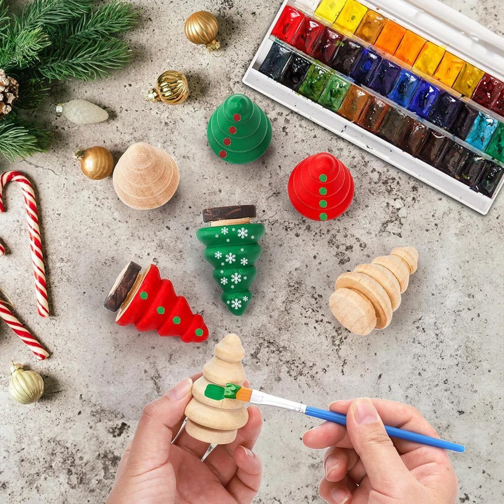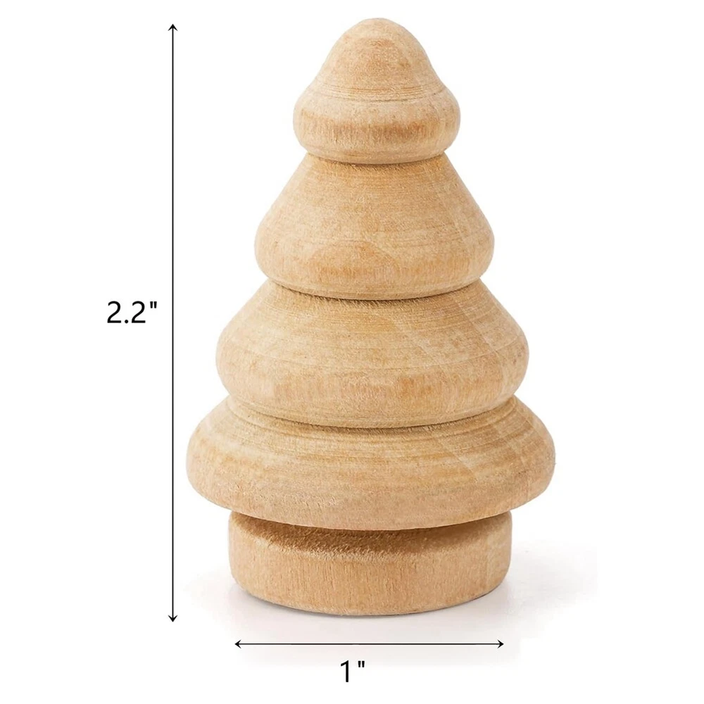 30 Pack Unfinished Wooden Christmas Tree, Natural Wooden Miniature Tree7326 What You Will Get: Package includes 30 pack unfinished mini wooden christmas tree. SIZE: . 2.2inch in height, 1inch in bottom diameter. They looks cute, perfect for Christmas decoration. Enough quantity to meet your daily usage or Christmas festival decor. High Quality Material: Our unfinish small christmas tree are made of premuim quality natural wood, sturdy and . PLEASE NOTE: Due to the mini trees are made of natural wood, it is unavoidable with unique natural textures or flecks. Perfect Detail: This mini wooden christmas tree were laser cut and fine polishing, no burr, smooth , will be nice to DIY with painting and staining. Come to use our wooden Christmas trees to create personalized Xmas gift with your kids, friends and family. Painted Freely: You can use unfinished wooden christmas tree to paint or stain any colors or patterns according to your preference, then match with different styles. Use your imagination to paint it as you like, and you will get the fun of DIY. Great Christmas Decoration: These unfinish small wooden christmas tree conform to Christmas theme and winter atmosphere, great for winter christmas theme and christmas tree decoration. It can be the cutiest christmas gifts to your family or friends. Colour:Wood color Material:Wood Size:5.7 x 3.6cm Package Contents: 30 x Wooden Peg Dolls