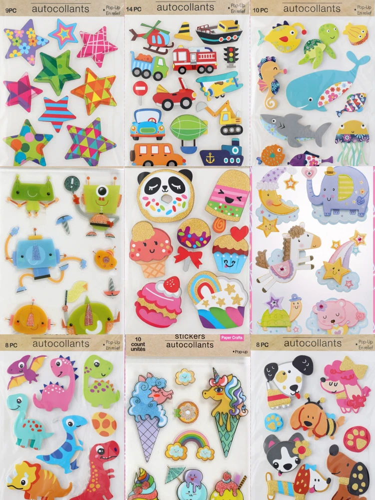 Fun Assortment of Puffy, Scrapbook, Cartoons, Bubble, Pop Up Stickers Packs For Everyone! You will receive 30+ Packs of beautiful colorful assortment. I have included a large variety of pictures of the assortment available. The pictures give you an idea of what you will be receiving. Please Note: You will not receive everything pictured. Please contact me with any special requests. This HUGE Variety of fun designs stickers can be used in parties, classroom, school and home, good for reward for students, potty training, adding inside a birthday card, game activities, entertaining toddlers, etc. Perfect Gifts for Kids & all Occasions: Can be given as a gift for kids, girls, boys, toddlers, teens, students, friends, and classmates, they will love it!