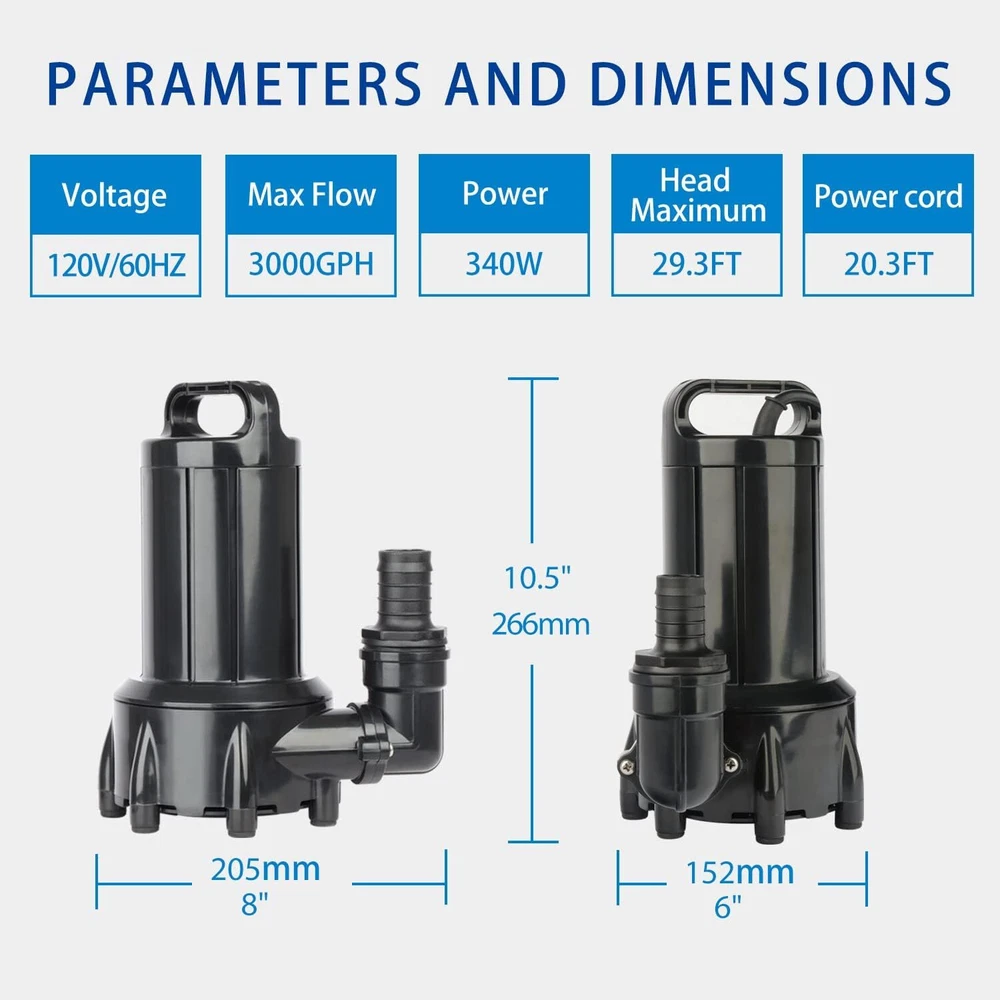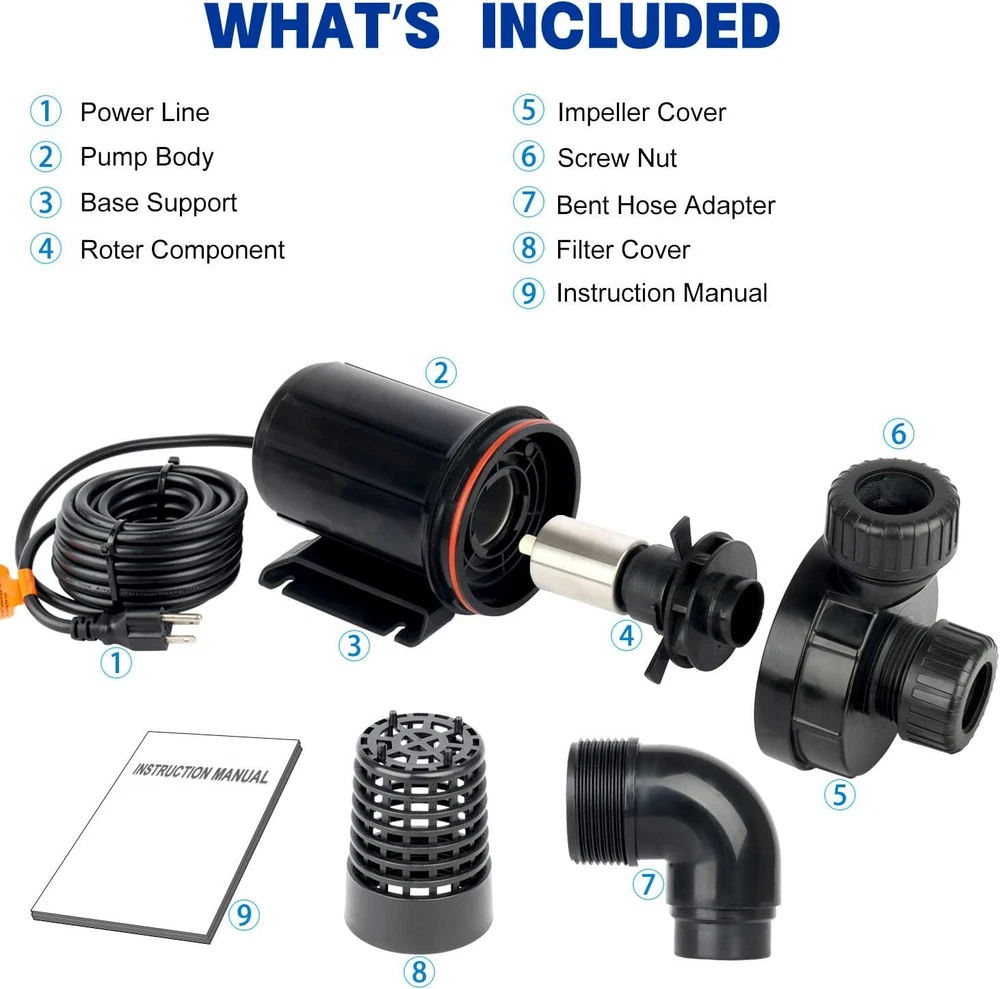 Product Description 【Cuter & Stronger Water Flow】: 1.MORE THEANOINTING, why? 2.BECAUSE CUTER & STRONGER WATER FLOW, AS CLEAN AS “ SPIRIT LIVES IN US" - 3.Smarter & POWERFUL&QUIET pond pump, as "In quietness is your strength": 4.Energy-saving: as "NOT EXTRAVAGANT BUT SIMPLE LIFE" :5.OYO WATER Outdoor 3000GPH In-line Submersible Pond Waterfall Pump is powerful and has high flow, which will create a amazing fountain in your pond 6.WHY NOT TRY? Durable Pond Pump: Oil-free design with ceramic impeller shafts provides a reliable, long-lasting fountain water pump that resists damage, keeps water flowing. More than Outdoor 3000GPH In-line Submersible Pond fountain Water-fall Pump Overheat Protection:This waterfall pump has inbuilt overheat sensor.Anti-Drying Design: When the temperature reaches to 185 ℉(85℃), the built-in thermal protector chip will stop the pump from draining and pumping water; Pure copper wiring delivers more stable power for a longer service life and more energy savings Bottom Inlet: The water inlet is on the bottom of the pump, which could drain as much water as it can, Feel Free to Purchase: We provide 1 year quality assurance and there is California local technical support for your help. You can feel confident to purchase. On Oct 15, 2024 at 03:24:50 PDT, seller added the following information: On Nov 21, 2024 at 23:10:23 PST, seller added the following information: