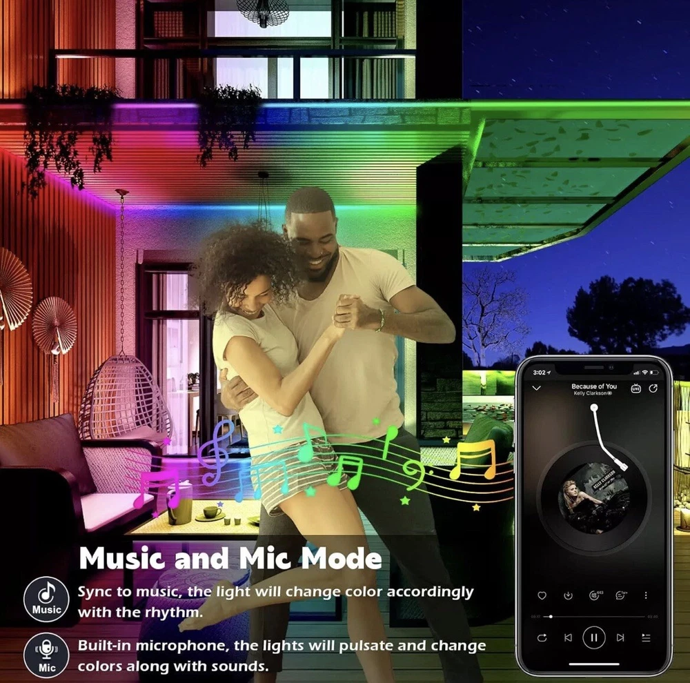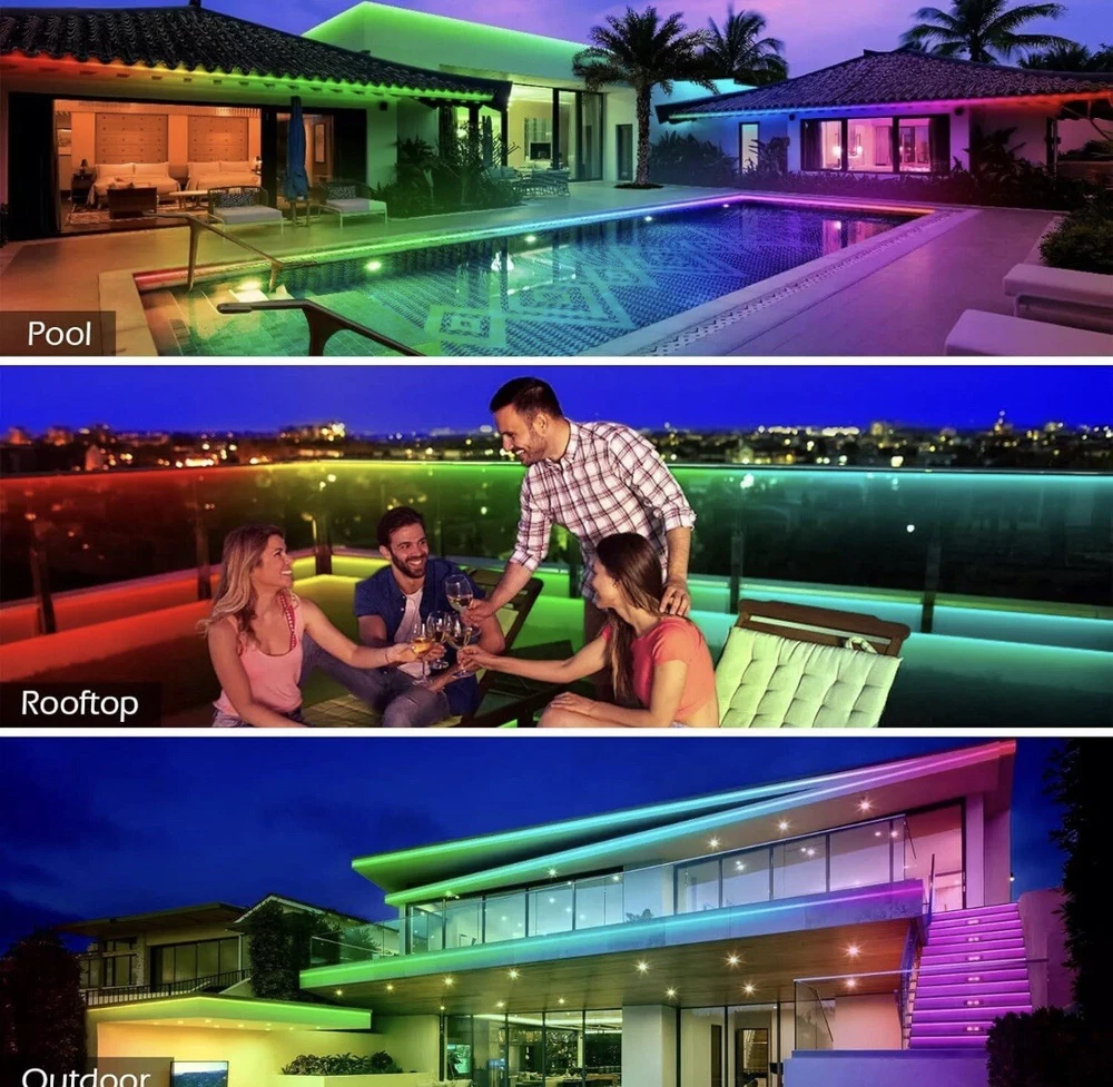 NEW IN BOX 🚨SHIPPING CONTINENTAL STATES ONLY! Add a touch of modern elegance to your outdoor spaces with this 300ft waterproof LED strip light. With six different settings and app control, you can customize your lighting experience to suit any occasion, from Father's Day to Halloween. The multicolor strip is made of durable plastic and features a light sensor for convenient use. Whether you're planning a party or simply want to create a cozy atmosphere for your home, this LED strip light is the perfect addition. It's easy to install and comes with a wall plug-in for convenient power consumption. Celebrate your love for music, TV, movies, and more with this stylish and versatile lighting solution.