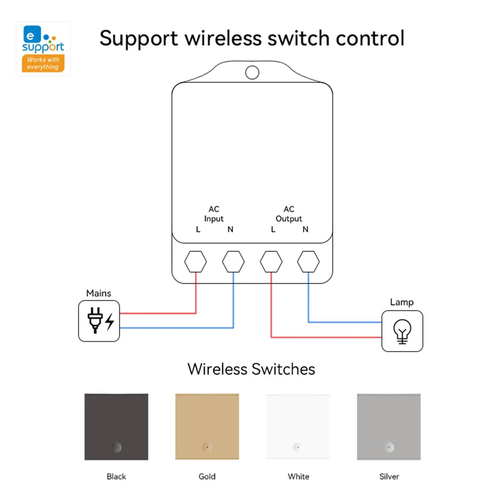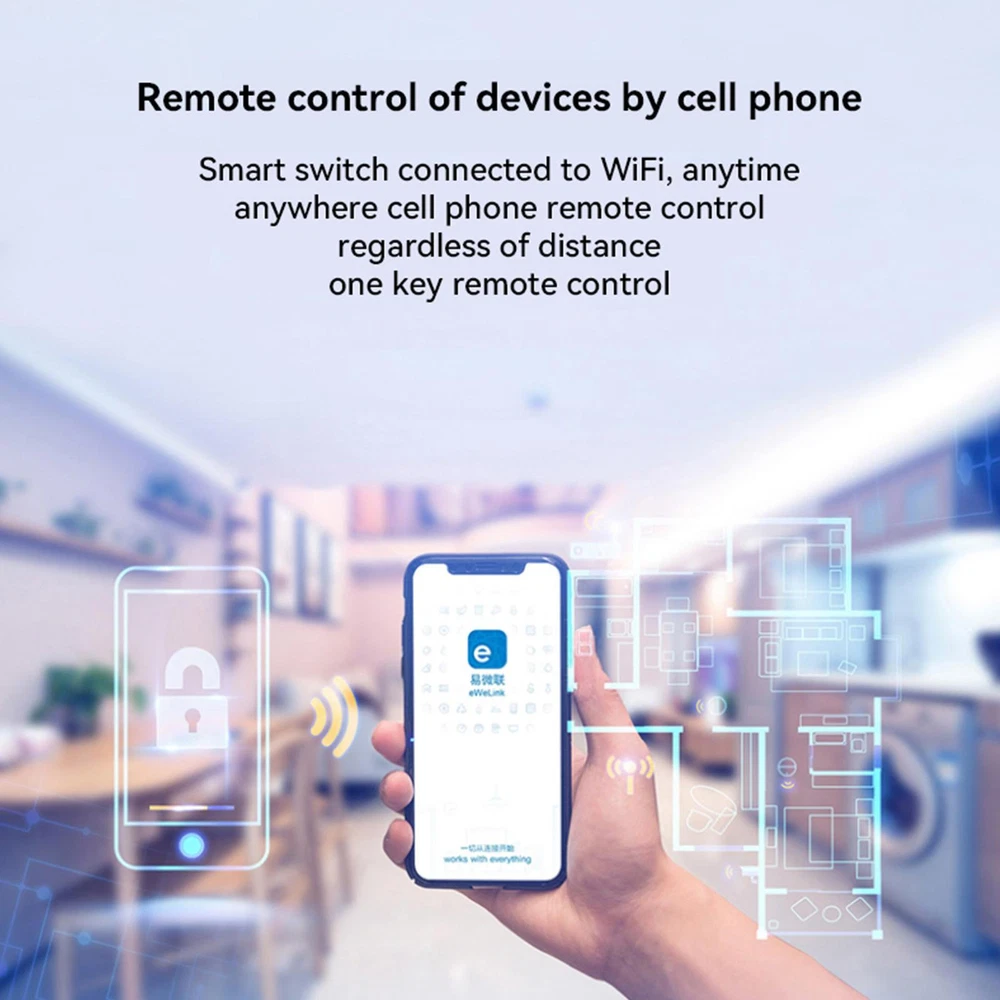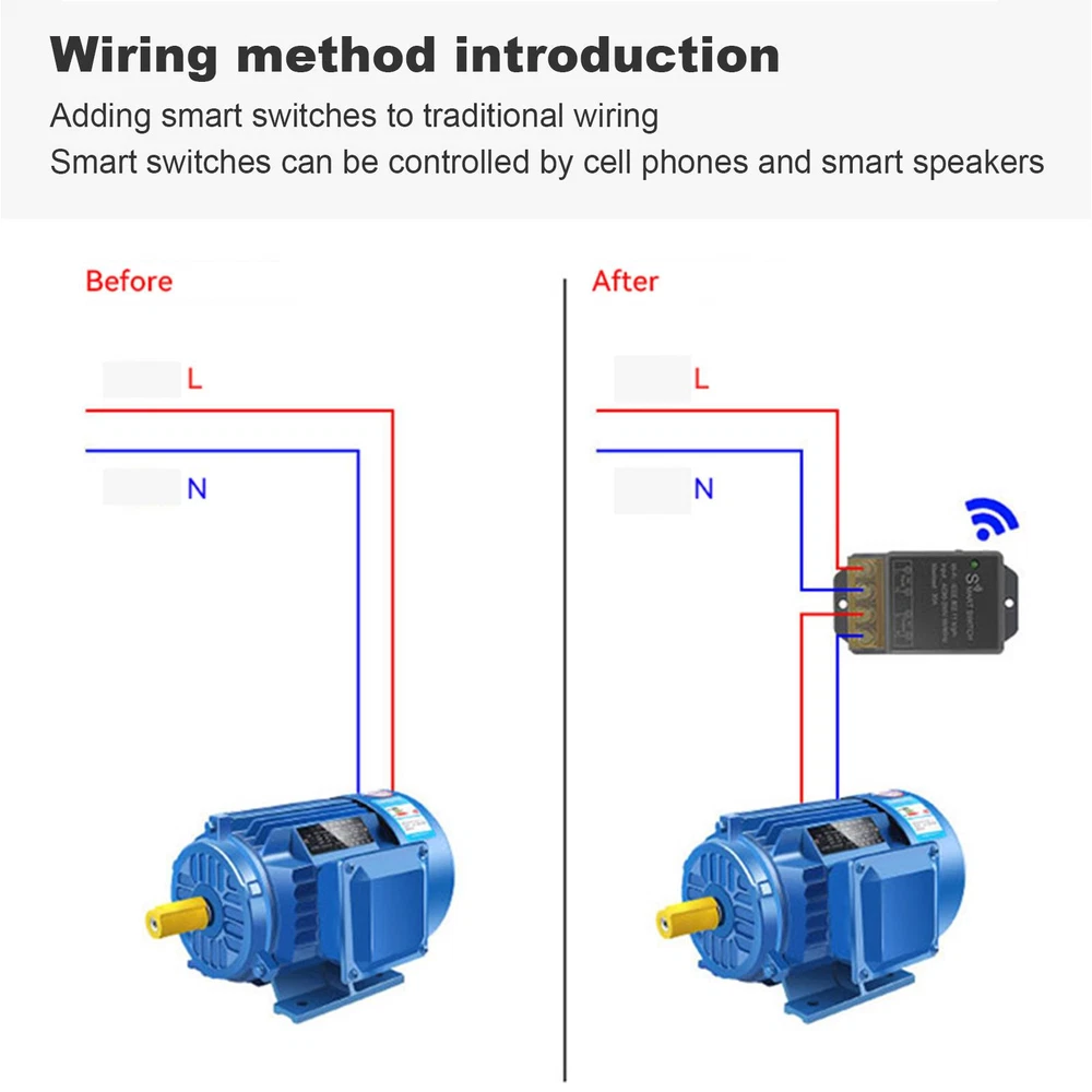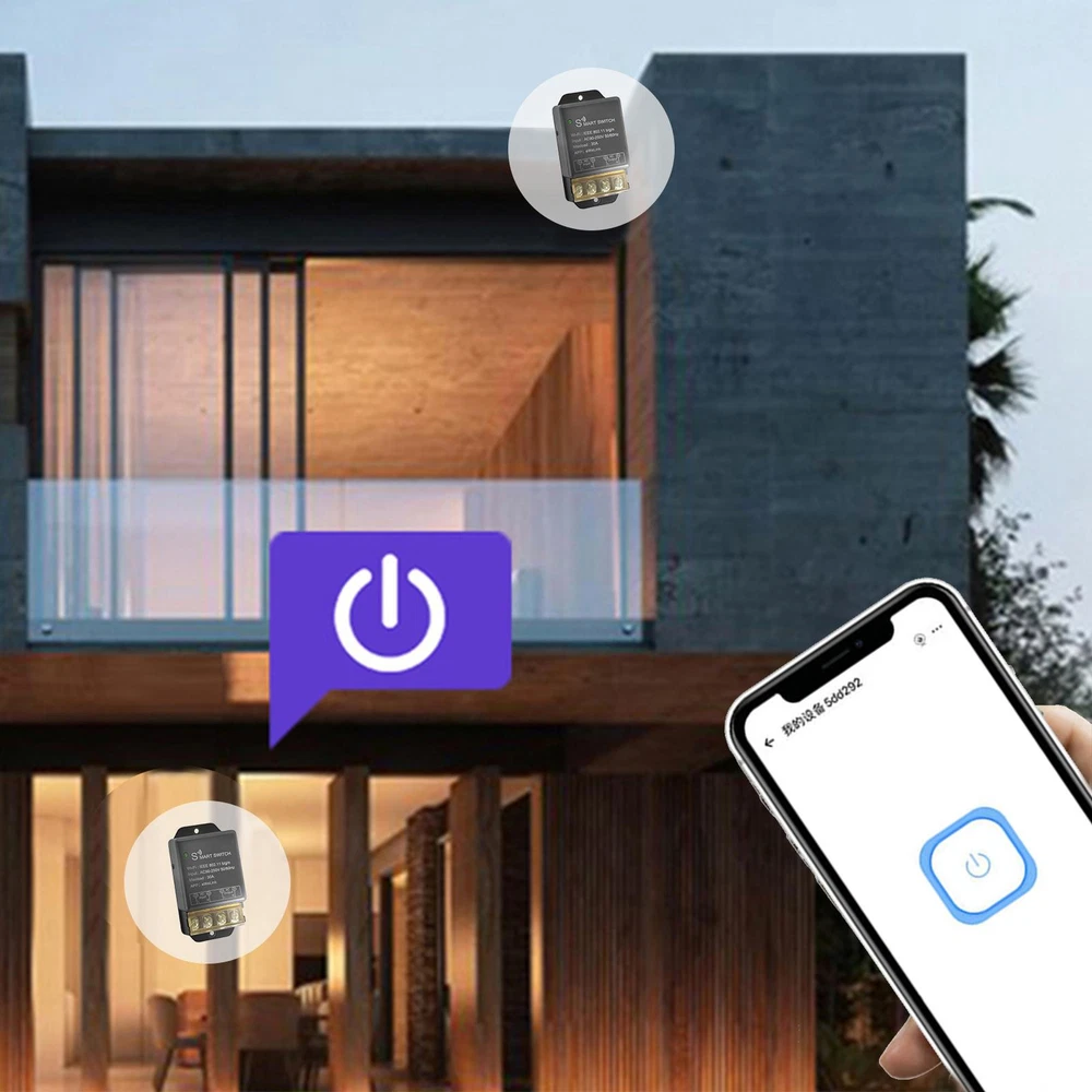 [ Voice Task Control ] Smart Relay WiFi Switch can turn on or off the lights by voice task, freeing you from the hassle of turning on the lights at night, useful to keep your baby away from your phone. [ High-power Appliances Switch ] Wifi Switch Module is suitable for high-power electrical appliances, such as swimming pool pumps, and the maximum current can reach 30A, effective to realize life. [ Automatic Timer Schedule ] Smart Wifi Light Switch is automatic to turn on or off home appliances according to your preference, setting countdown, scheduled, and recurring timer, effective to create your love life. [ Remote Connection ] Wifi Relay Switch is remote to control your connected device, no matter where you are, easy to control your connected devices from your smartphone. [ Dual-mode Control ] Wifi Relay Module is featured with WiFi and BLE two control modes, providing you with smart home mode without adding new configurations, used for BT mode required a wireless gateway for remote control. Description: Wireless Relay Switch Module can use voice to turn on or off and set countdown, scheduled, and recurring timer. It can be suitable for high-power electricity appliances and remote to control for connection. It has two controlling mode for a better life. Specifications: Product Name: Smart Wifi Light Switch Wireless connection method: WiFi+BT Current: 30A Net weight: about 93g Packing List: Smart Wifi Switch Module*1pcs Notes: 1. Due to the lighting effects and filming angles, there is a color difference in the product, please understand. 2. Due to manual measurement, there is a tolerance in the product size.