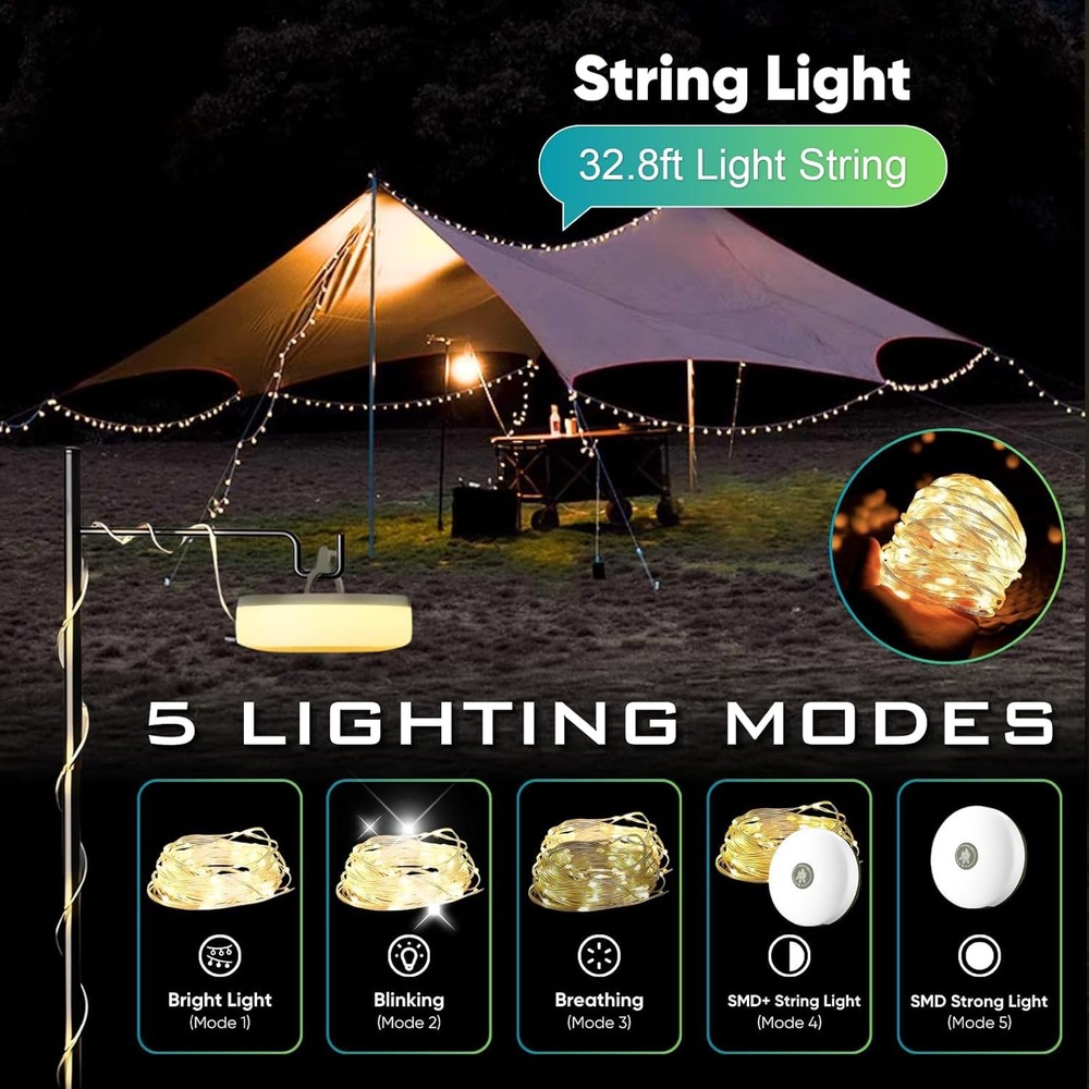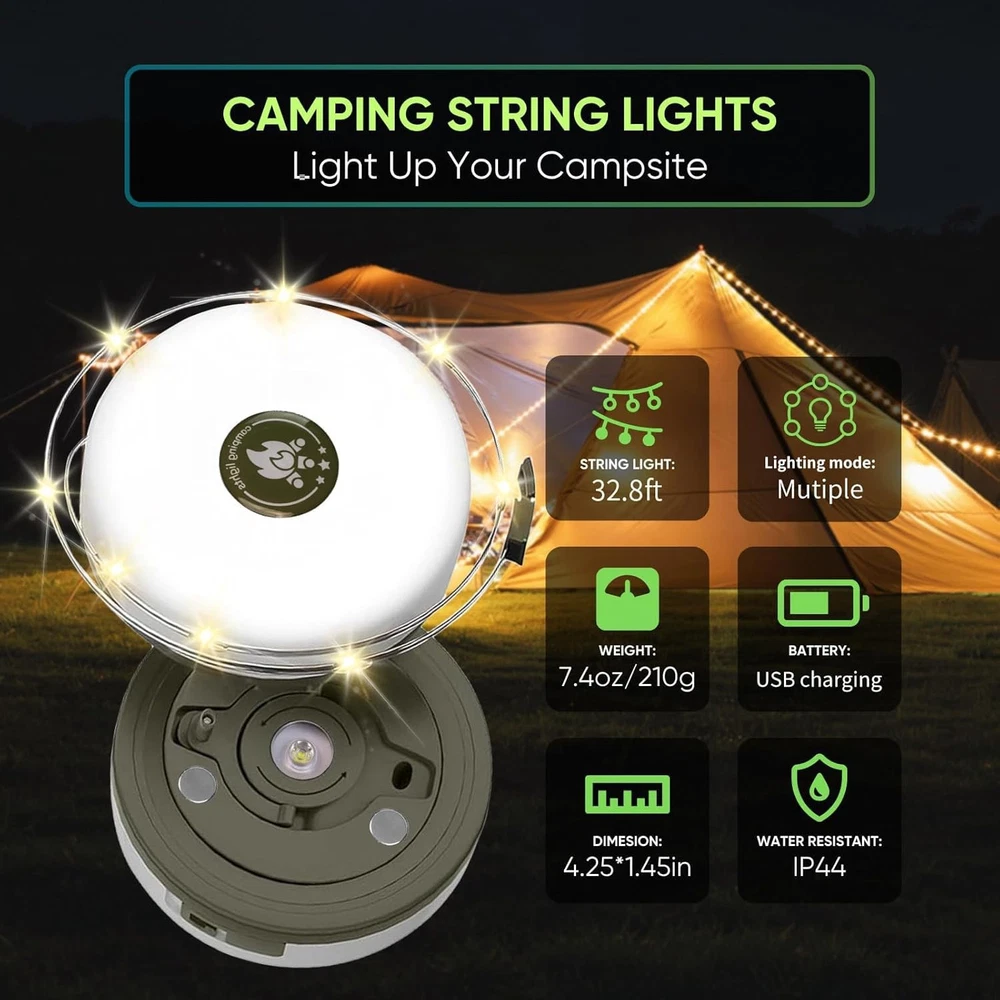 32.8FT Christmas String Light Outdoor 4 in 1 USB Rechargeable Camping Tent Lamp About this item: 【Multi-purpose camping string lights】 retractable camping string lights are composed of lanterns and string lights, not only can you hang the lantern on the top of the tent and use the light string to decorate the tent, you can also use it as emergency lighting or a flashlight. 【5+3 lighting modes】Press the button to switch between 5 modes of lantern and light strings: string lights warm light—string lights flashing—string lights breathing—lantern warm white+string lights warm light—lantern strong light—off. Long press the button to switch between 3 modes of the LED long-range light source behind the camping lantern: strong light—weak light—strobe. After 8s of lighting in any mode, press the switch to turn off. Description: 1. Size: 108mm(diameter)*37mm 2. String Length: 10m 3. Weight: 210g 4. Waterproof: IP44 5. Lamp Belt Protection Level: IP44 6. Material: ABS 7. Charging Interface: Type-C 8. Battery Type: polymer lithium battery(2000mAh) 9. Strong magnetic magnet on the back, easy to absorb lighting; 10. Hidden hook (can be hung anywhere), tape measure hook (anti falling light strip), PC atomized lampshade (softer light transmission). * If any questions about the product quality, please don't hesitate to contact us, we will give you a respond in 24 hours. Package Includes: 1 x String Light with hook 1 x USB cable 1 x User Manual 【Portable stowable string light】 Just rotate the handle for only 30s to store the camping light string. With three magnets on the base, you can stick this rechargeable LED camping light to a metal surface or use the hook on the back to hang it on a shelf. Payment Delivery details Returns About us Contact us Payment 1. This is the payment method we can accept: Paypal 2. You can checkout and pay immediately after the auction ends or you complete the purchases. If you need an eBay invoice sent to you by Email, please contact us before making payments. 3. Once the checkout is completed, you will not be able to include any additional purchases. We start to process and fulfill your order once payment is received. New purchases after the checkout will be processed separately. 4. Payments are expected within 4 days after the order is confirmed. Unpaid item (UPI) strike may be filed with eBay upon non-receipt of payment. *Please send us an email as soon as possible for anything; We will be responsible until the end. 😀 😀 😀 😀 😀 Delivery details 1. How much is the shipping & handling (S&H)? Our shipping and handling charges are clearly stated in the Shipping and Payments section of the item page, and we provide Free Shipping for most items. 2. For multiple purchases, the combine shipping discount will be automatically calculated when you check out and pay all of your purchases together. Items checked out separately may not be combined and the combine shipping discount will not be offered automatically. 3. Please make sure the correct Ship-To address is entered before checking out. Once the payment is completed, you may not be able to change the shipping address. We shall not be held responsible for any wrong or undeliverable addresses. 4. We usually ship within 1-2 business days of receiving cleared payment.All goods are shipped from our warehouse in New Jersey or California, USA . 💯✔️ 5. We do not ship to addresses outside of the United States (including Alaska, Hawaii, Puerto Rico) Returns 1. We put buyer's satisfaction at top priority. If you're not pleased with your purchases, we'll be happy to make an exchange or refund the item total price less Shipping and Handling (S&H) charges within 30 days of your purchases. 2. For any Exchange, Refund or Return, the item must be in its original condition, including the box, packaging, and all the accessories or gifts. 3. We'll provide prepaid return shipping label if the return is a result of our error. Postage reimbursement is offered only on standard mails, and it needs to be approved by our staff prior to returning. 4. Please allow up to 7 business days for returns to be processed. 5. Shipping and Handling (S&H) charges are not refundable. About us -We are a professional seller, wish you have a good time in our shop. we will try our best to serve you and make you satisfied. -All products have undergone strict testing, We promise high quality, and have quality assurance. Thank you very much! *Please send us an email as soon as possible for anything; We will be responsible until the end. 😀 😀 😀 😀 😀 Contact us 1. Customer satisfaction is very important to us and our feedback rating reflects this satisfaction. If you have any question or concern, please contact us via eBay message. 2. We respond to all eBay messages as quickly as possible. Though your question will usually be answered very soon, please allow us up to one business day before you start thinking your message is neglected or the reply is avoided, because there would be time difference, non-working hours or public holidays that have prevented us from making an instant response. Thank you for your support and trust; Wishing you a pleasant shopping experience!