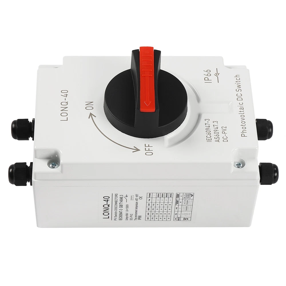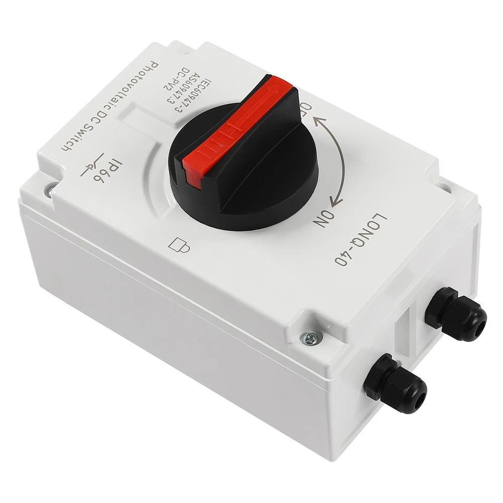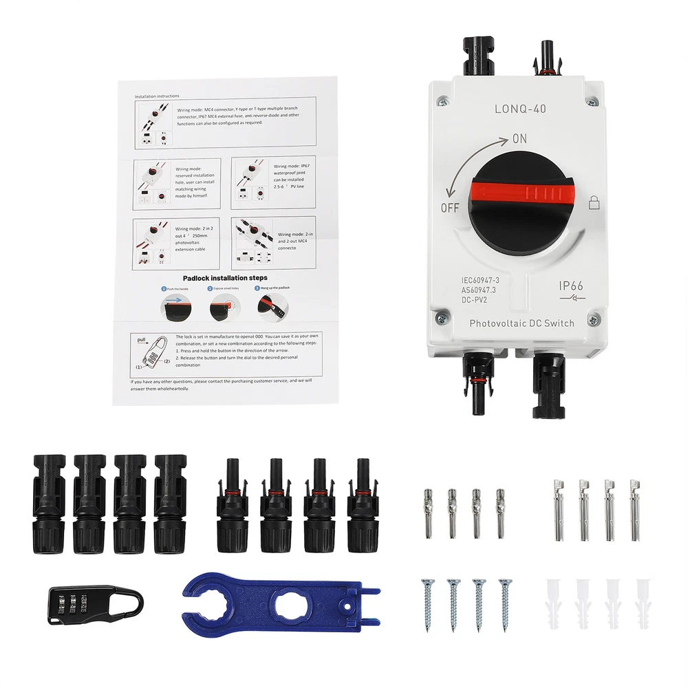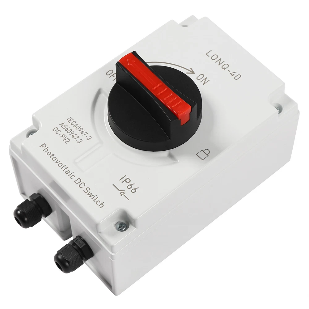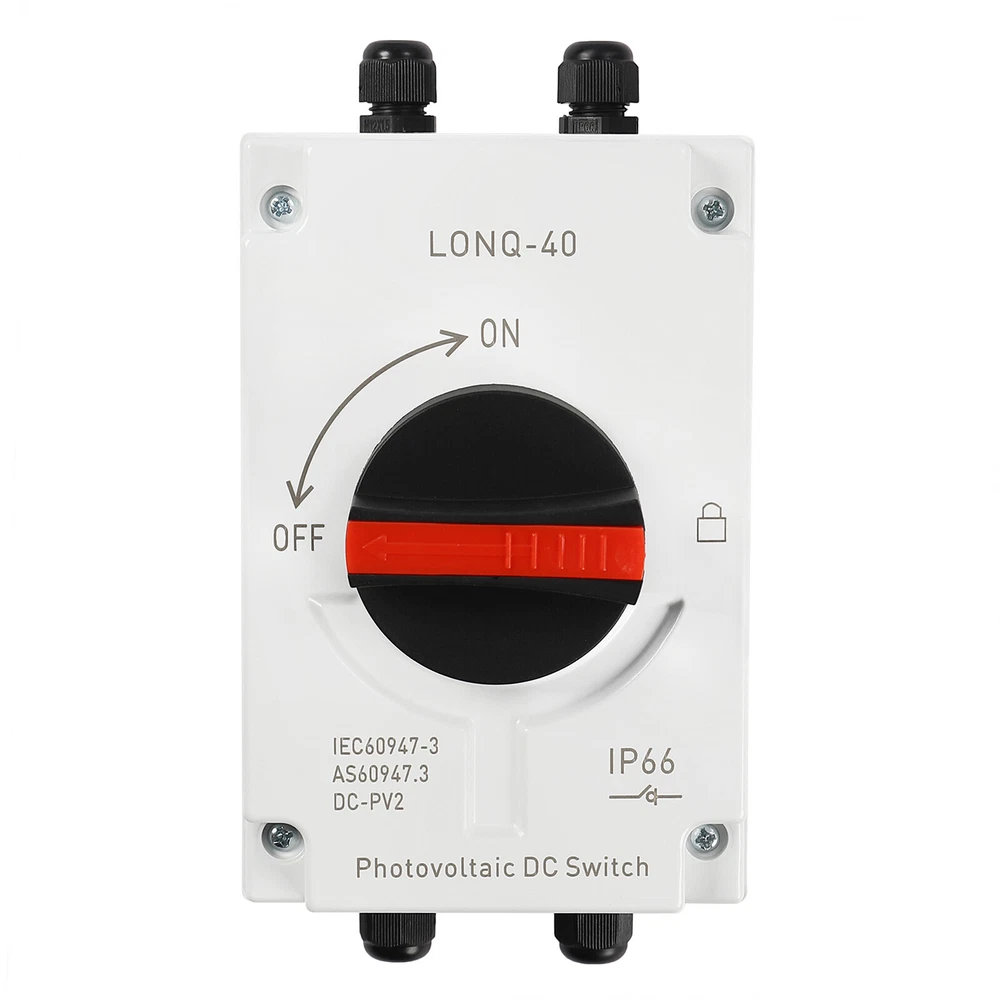 🧡🧡🧡 Welcome to Automaimaimai 🧡🧡🧡 PV Solar Disconnect Switch IP66 Waterproof Photovoltaic Circuit Isolator for Solar Panels 32 Amp DC1200V Description This PV solar disconnect switch is made of insulated, flame-retardant PC and nylon, providing both durability and safety. It is equipped with high-quality upgraded connectors for quick installation. Its powerful DC isolation and excellent protection are ideal for any PV system! Key Features High-quality Materials: The high-quality PC and nylon materials are characterized by good flame retardant, insulation, chemical resistance, drop resistance, aging resistance, and wear resistance, ensuring a long service life. Good Adaptability : After testing, its waterproof grade reaches IP66, the applicable ambient temperature is -40°C to +85°C, and it is also equipped with a silicone waterproof ring, so it can be protected from rain, dust, and other weather factors to adapt any outdoor installation scenario. Circuit Isolation : It is used to quickly disconnect the DC power from the solar panel to the charge controller battery or inverter for the repair, maintenance, installation, and inspection of the system. High Performance : It can cut off the switching current 32A at voltages up to 1500V and it has a load breaking up to 8 times the rated current, meeting the requirements of most PV systems. Arc extinguishing technology is used to effectively suppress arcs, making it safer to use. Easy to Install: Its compact size and complete range of screw fittings make it easy to mount on the wall and take up little space. The ample internal space allows for easy wiring. Independent Poles: With four independent poles, you can use links to change the way the poles are connected. The poles can be connected in series or parallel, or as a variant of series and parallel to determine the load on and off the switch. User-friendly Design: The upgraded connector allows direct wiring without opening the cover, making it faster and safer. It is also equipped with 8 spare connectors for replacement and wire end connectors. Customer Service: We aim to provide quality products and services. If you have any problems, please feel free to contact us. We will reply and solve the problem for you as soon as possible. Details Safety Lock: The safety lock locks the handle in the "off" position to prevent misuse or tampering. The safety lock can be installed by simply pushing out the red part of the handle. Comfortable Handle: The ergonomic handle rotates flexibly for comfortable and effortless operation. Application It is widely used in domestic, RV, oil, metallurgical, and off-grid solar systems, grid-connected solar systems, DC power systems, marine power systems, solar PV systems, or other DC systems. Specifications Material: PC, Nylon Color: White Model: LONQ-40 Product Category: DC-PV2 Poles: 4P Mounting Type: Panel Mount Switch Type: Rotary Switch, Temperature Switch Rated Voltage: 1000-1200VDC Rated Current: 32A Waterproof Rating: IP66 Rated Impulse Withstand Voltage Uimp: 8kV Drop Resistance: 1000/1700 Standard: IEC60947-3, GB/T14048.3 Ambient Temperature: -40°C-+85°C/-40°F-+185°C Insulation Voltage: DC 1500V Connection Type: M20 MC4 Connectors Product Size: 10.4*16.1*11.1cm/4.09*6.33*4.37in Packing Size: 26*11*12cm/10.23*4.33*4.72in Gross Weight: 0.95kg/2.09lbs Net Weight: 0.86kg/1.89lbs Package Included 1* PV Solar Disconnect Switch 4* Expansion Tubes 4* Mounting Screws 8* Cores 8* Upgraded Connectorss 1* Passcode Lock 1* Mounting Wrench 1* English User Manual Notes 1. Please ensure that all electrical connections as well as screws are tightened. 2. We recommend using crimp sleeves for DC multi-strand cables to ensure that the wires do not come loose. Loose cables can cause excessive power loss and generate overheating, leading to serious damage to the switch. 3. Turn the switch on and off several times before use to ensure that a positive snap action can be felt and heard. 4. When used for electrical maintenance and installation, it is important to ensure that the operator holds electrician qualification and takes necessary power off and insulation protection measures. 5. Please read the manual completely before installation and use, and pay particular attention to the safety instructions included. 6. Please allow the slight color difference caused by the shooting light and 1-3cm error due to manual measurement, and make sure you do not mind before you order Payment Delivery details Terms of sales About us Contact us Payment We accept ebay payment 。 Fees such as import duties, taxes are not included in the item price or shipping costs. These charges are the buyer's responsibility. Delivery details Shipping: 2-9 working days to: USA Terms of sales We maintain high standards of excellence and strive for hundred percent customer satisfaction. Feedback is very important to us. We hope that you contact us immediately before you give neutral or negative feedback, so that we can address your concerns. It is impossible to address issues if we do not know about them! About us Your satis faction is our ultimate goal. We work hard to earn your trust and future business. Our certified technicians have tested each item before shipping. The unit comes with 1 year limited warranty on all manufacturing defects. a) If you receive a defective item, you may return it or ask for a discount. Please contact us within 14 days after you receive the package. b) What you returned must be intact and in its original packaging as re? u. Customer is responsible for shipping costs of the returned item. c) We will cover the cost of shipping back t with the shipping rate indicated in the registration page. We will send you a new unit or refund the full payment you paid. Thank you. Contact us Business Hour Business Hour: Monday To Friday: 8:30 AM to 5:00 PM (Beijing China time) Due to time zones, our reply to your questions may not be immediately. But within above working time, we