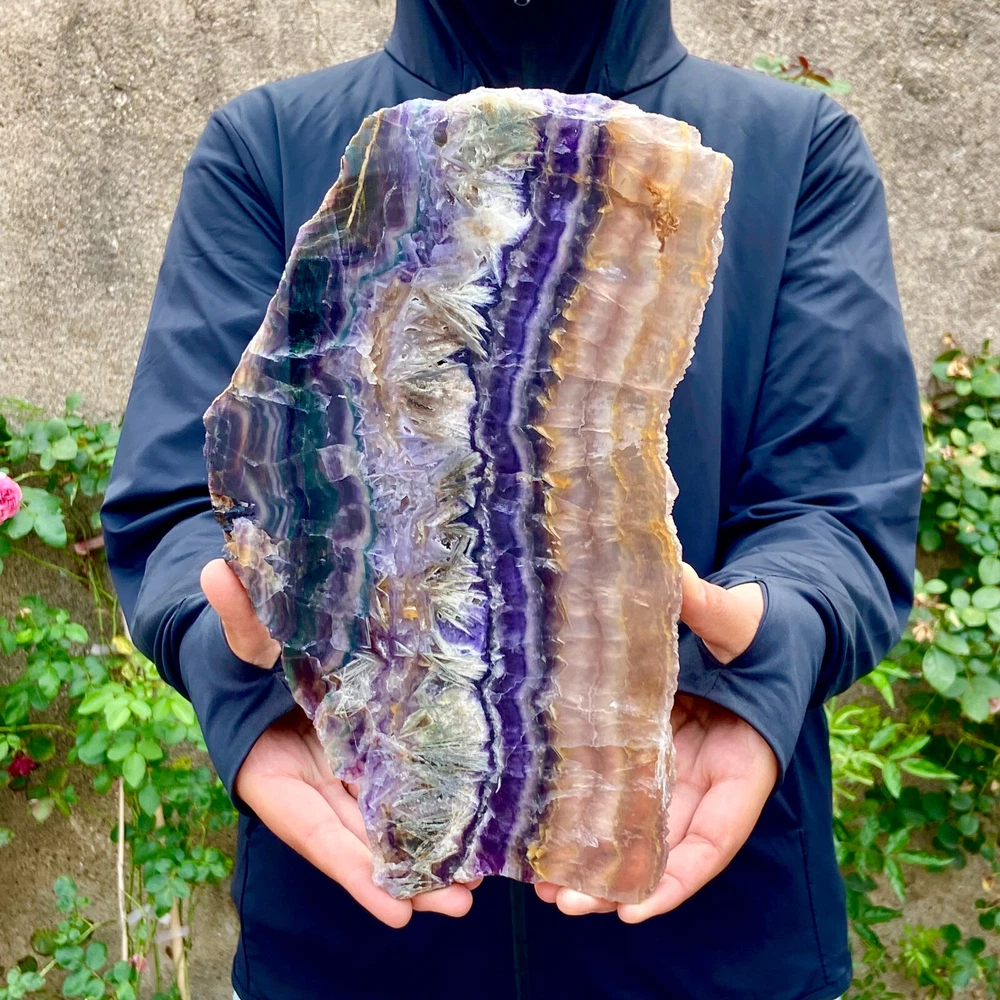 10.4LB Natural banding zebra calcite polished slab crystal reiki healing
