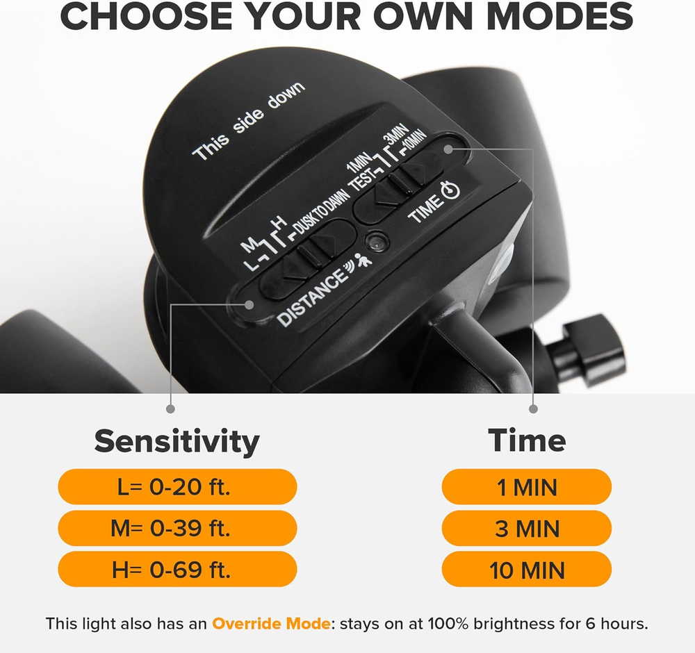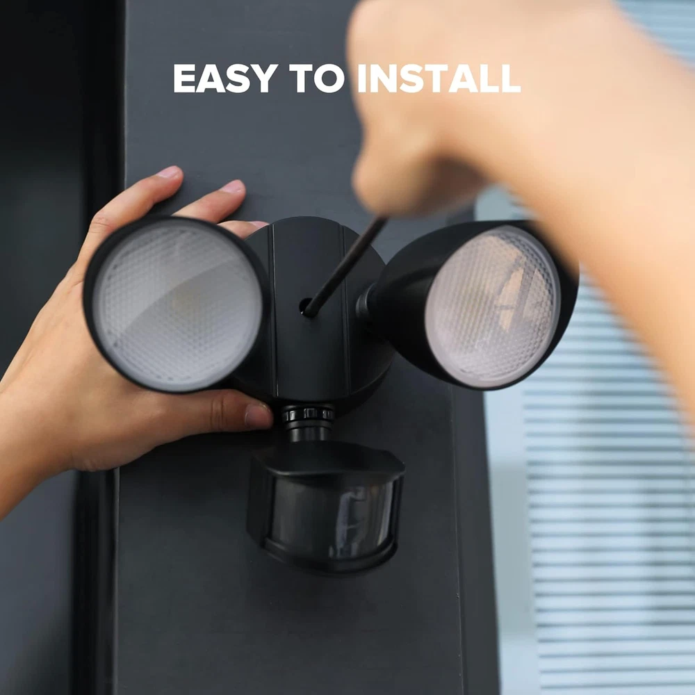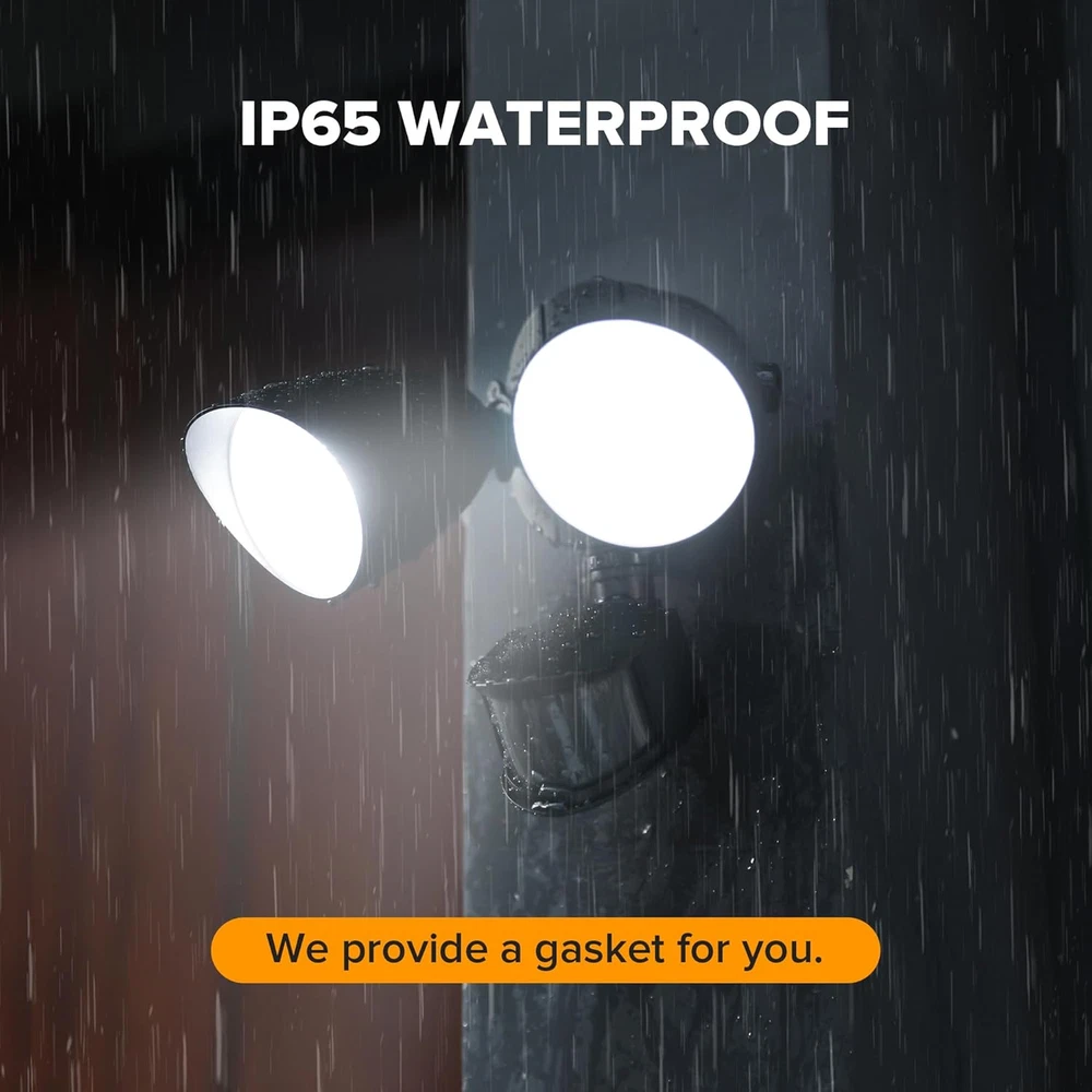 ENERGY SAVING: LED units output 32 W, 2500 Lumens, 5000 K brightness (day light white), equivalent to 150 W halogen light. Also save your electricity bill by up to 88% MOTION ACTIVATE: The wide sensing angle of 180 degrees detects motion up to 0 ft-69 ft away, detecting motion more accurately with its sensitive motion sensor. The adjustable timer can be set for tests, 1, 3 or 10 minutes 4 LIGHTING MODES: Test Mode, Security Mode, Dusk to Dawn Mode and Manual Override Mode. Manual override mode allows light to operate constantly for selected period of time. More choices can meet different demand for each customer METAL AND ROTATABLE DESIGN: Adjustable heads provide a customizable coverage area. Aluminum material, IP65 waterproof and 50,000 hrs lifespan, make this security light pecfect for the porch, back yard, front door, garage, driveway, walkway, step, etc HIGH-QUALITY SERVICE: We provide 7*24 h after-sales service. Contact us if any issue arises Product Description About the light LUTEC LED security lights is a part of LUTEC's continuing pursuit for creating highly efficient and convenient products for our customers. A more sensitive, durable aluminum material design, will give you a better experience. Also it is powered by LED lamp beads, ensure to provide better illumination(soft light, anti-glare); IP65 Waterproof, perfect for your outdoor usage. MOTION ACTIVATED OUTDOOR FLOOD LIGHT TEST MODE Tests the sensor’s functionality even during daylight hours. After motion stops, the light will remain on full brightness for 5 seconds and then turn to low brightness. Main Material: Aluminium(except motion sensor head)+PC Watt: 32W(whole light fixture) Lumen: 2500LM(whole light fixture) Color Temp: 5000K(daylight) Certification: ETL Listed Base Size("): 4.13“X4.13" IP Rating: IP65 Waterproof Voltage: AC 120V (110V-130V) and required to be hardwired to the junction box SECURITY MODE Adjust the “DISTANCE” to L/M/H, you will enter the SECURITY MODE. Turns on at full brightness at night only when motion is detected. Deactivates during daylight hours. Recommended installation height: 8.2 feet DUSK TO DAWN MODE In D2D mode, light turns on at night and stays on at low brightness(20%), then turns to fullbrightness(100%) if motion is detected. The holding time at high brightness can be customized from 1/3/10 MIN. Deactivates during daylight hours. MANUAL OVERRIDE MODE Stay on at 100% brightness, suitable for nighttime gatherings in the courtyard. Turn the light on manually from the wall switch. With the fixture already in the ON position, continuously flip the wall switch off and then back on twice in 3 seconds. LONGER LIGHTING TIME When the security light is triggered, the lighting time is 1, 3 or 10 minutes, which can be customized by yourself. EXCELLENT HEAT DISSIPATION Durable aluminum design, can spread the heat effectively and increase the lifespan up to 50,000+ Hours. ACCESSORIES INCLUDED 3 X 18AWG Wire connectors 2 X Outler Box Screw 1 X Mounting Bracket 1 X M4*50 Fixture Screw 1 X M4*35 Fixture Screw 1 X Rubber Stopper 1 X Gasket
