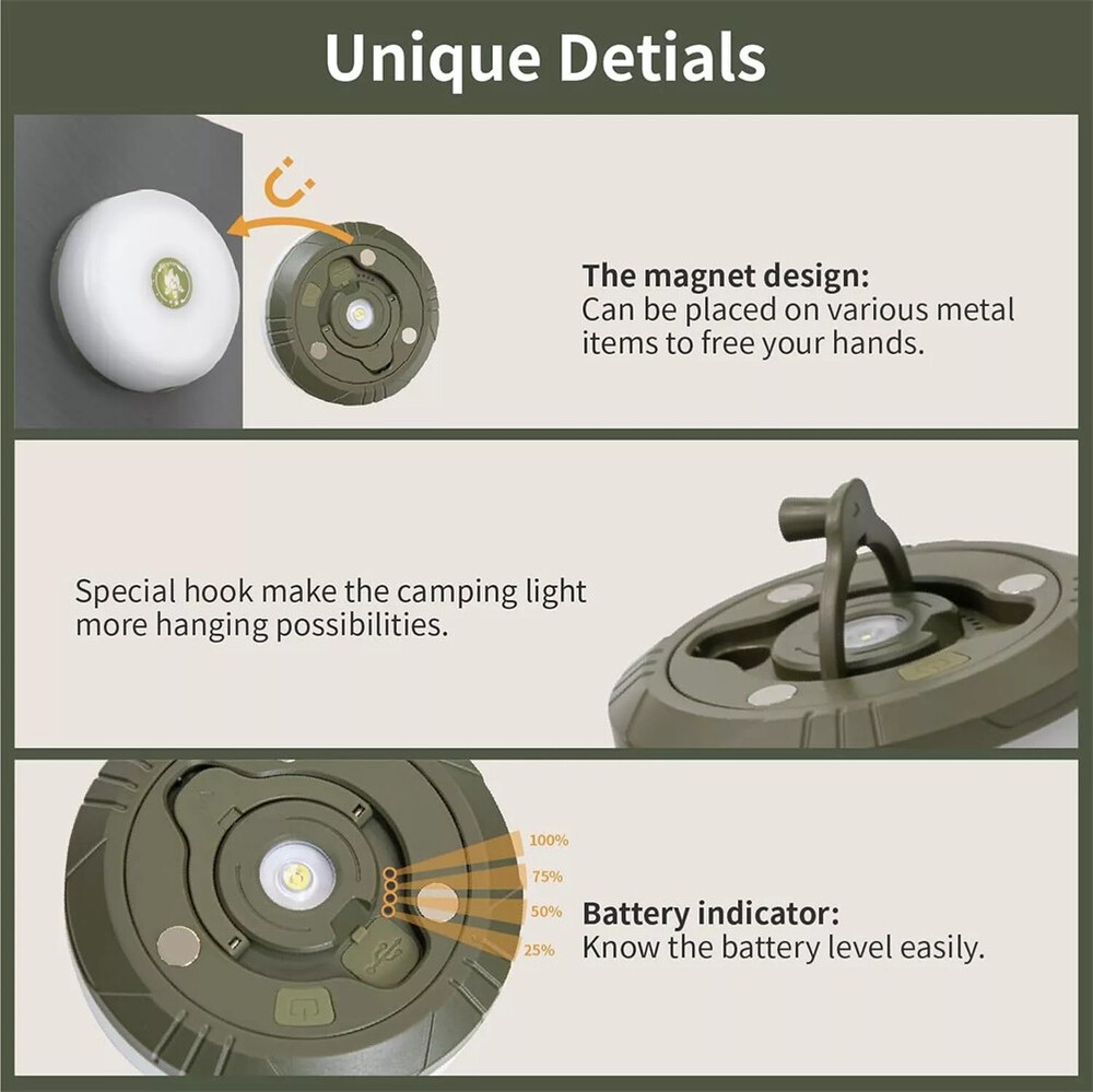 33FT Portable Camping String Lights USB Rechargeable LED Outdoor Tent Light Features: 1. Upgraded Camping Light: This stable string light combines a camping lantern and retractable light string into a compact unit, offering ultimate lighting versatility. The 10m outdoor light string illuminates your tent, creates a cozy atmosphere, and lights up your outdoor adventures. Perfect camping accessory for summer vacations. 2. Customizable Ambient Lighting: The tent string light offers multiple lighting mode options, including steady mode, firefly light mode, and breathing light mode. The camping lantern provides adjustable brightness. 3. Portable Camping Light String: Versatile and compact, this outdoor string light serves as a handheld camping lantern for illuminating pathways and a multi-functional hanging light for tents, tree branches, and other areas, acting as a night light. 4. Easy Storage: With a quick cranking of the handle, retrieving the light string becomes effortless. The sleek design ensures compact storage and easy packing. 5. Durable & Rechargeable: The LED light strip is made of copper wire and transparent PVC material, offering clear 360-degree illumination. It is highly flexible, and easily bendable. The camping lanterns has an IPX4 waterproof rating, making it suitable for various outdoor applications. The ABS body provides a matte, semi-transparent texture for a comfortable grip and produces soft and diffused lighting. Description: 1. Size: 108mm(diameter)*37mm 2. String Length: 10m 3. Weight: 400g 4. Waterproof: IPX4 5. Lamp Belt Protection Level: IP44 6. Material: ABS 7. Charging Interface: Type-C 8. Battery Type: polymer lithium battery(2000mAh) 9. Strong magnetic magnet on the back, easy to absorb lighting; 10. Hidden hook (can be hung anywhere), tape measure hook (anti falling light strip), PC atomized lampshade (softer light transmission). Package Includes: 1 x String Light 1 x USB cable Payment Delivery details Returns About us Contact us Payment 1. This is the payment method we can accept: Paypal 2. You can checkout and pay immediately after the auction ends or you complete the purchases. If you need an eBay invoice sent to you by Email, please contact us before making payments. 3. Once the checkout is completed, you will not be able to include any additional purchases. We start to process and fulfill your order once payment is received. New purchases after the checkout will be processed separately. 4. Payments are expected within 4 days after the order is confirmed. Unpaid item (UPI) strike may be filed with eBay upon non-receipt of payment. *Please send us an email as soon as possible for anything; We will be responsible until the end. π π π π π Delivery details 1. How much is the shipping & handling (S&H)? Our shipping and handling charges are clearly stated in the Shipping and Payments section of the item page, and we provide Free Shipping for most items. 2. For multiple purchases, the combine shipping discount will be automatically calculated when you check out and pay all of your purchases together. Items checked out separately may not be combined and the combine shipping discount will not be offered automatically. 3. Please make sure the correct Ship-To address is entered before checking out. Once the payment is completed, you may not be able to change the shipping address. We shall not be held responsible for any wrong or undeliverable addresses. 4. We usually ship within 1-2 business days of receiving cleared payment.All goods are shipped from our warehouse in New Jersey or California, USA . π―βοΈ 5. We do not ship to addresses outside of the United States (including Alaska, Hawaii, Puerto Rico) Returns 1. We put buyer's satisfaction at top priority. If you're not pleased with your purchases, we'll be happy to make an exchange or refund the item total price less Shipping and Handling (S&H) charges within 30 days of your purchases. 2. For any Exchange, Refund or Return, the item must be in its original condition, including the box, packaging, and all the accessories or gifts. 3. We'll provide prepaid return shipping label if the return is a result of our error. Postage reimbursement is offered only on standard mails, and it needs to be approved by our staff prior to returning. 4. Please allow up to 7 business days for returns to be processed. 5. Shipping and Handling (S&H) charges are not refundable. About us -We are a professional seller, wish you have a good time in our shop. we will try our best to serve you and make you satisfied. -All products have undergone strict testing, We promise high quality, and have quality assurance. Thank you very muchοΌ *Please send us an email as soon as possible for anything; We will be responsible until the end. π π π π π Contact us 1. Customer satisfaction is very important to us and our feedback rating reflects this satisfaction. If you have any question or concern, please contact us via eBay message. 2. We respond to all eBay messages as quickly as possible. Though your question will usually be answered very soon, please allow us up to one business day before you start thinking your message is neglected or the reply is avoided, because there would be time difference, non-working hours or public holidays that have prevented us from making an instant response. Thank you for your support and trust; Wishing you a pleasant shopping experience!