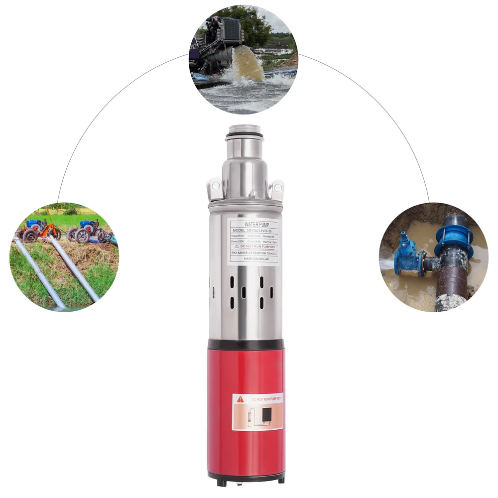 12V Solar Submersible Pump Deep Well Water DC Pump Stainless Steel 1500L/H US Description If you're looking for an efficient and simple irrigation solution, take a look at our submersible pump, a jewel in the world of irrigation technology for its performance and ease of operation. The efficient performance and low-noise operation of this submersible pump will provide your farmland with a constant flow of living water, making every inch of soil come alive, which is undoubtedly the ideal choice for scientific irrigation and improved agricultural efficiency. Key Features Build to Last : Made of 304 stainless steel, this product is corrosion-resistant, wear-resistant, and durable, ensuring your long-term use. High Efficiency: The 250W all-copper motor provides powerful power, with a speed of 3500r/min and a maximum flow rate of 396.26gal/h, making your pumping and watering work faster and easier. Large Delivery Lift: Adopting stainless steel large centrifugal impeller, its maximum lift can reach up to 98.43ft, which allows you to irrigate farmland, fish ponds, and orchards for a long distance, saving the time and cost of manual transportation. Effortless Cleaning: Thanks to its smooth surface and simple structure, and it is used to work in water, so it is very easy to clean. High Stability: Three feet provide stable support for this product, making it less prone to shaking. Simple Installation: The simple structure makes it easy to assemble and quickly start and run. Easy to Carry: Its lightweight allows you to easily move it to the place you need it to use, which is convenient. Customer Service: We aim to provide quality products and services. If you have any problems, please feel free to contact us. We will reply and solve the problem for you as soon as possible. Details Rope Hole: You can use nylon rope or steel wire(not included) to pass through the rope hole and pull this product, making it easy to use. Standard Water Outlet: The pump adopts a 0.98inch large diameter water outlet, which can be matched with different types of water pipes and is very practical. Fine Water Inlet: It helps to provide all-round water intake. High-quality Screw: It makes this product less prone to thermal expansion and contraction, reduces noise, and improves work efficiency. Application This product is suitable for extracting groundwater from deep wells, and can also be used in water-lifting projects of rivers, reservoirs, canals, and so on. It can be used for farmland irrigation, and water for humans in mountainous areas, villages, homes, farms, campervans, cities, factories, and railways. Specifications Material: 304 Stainless Steel, All-copper Color: Silver and Red Assembly Required: Yes Voltage: DC12V Current: 8.0A Power: 250W Speed: 3500r/min Maximum Delivery Lift: 30m/98.43ft Cable Length: 7m/22.97ft Maximum Flow Rate: 1.5m³/396.26gal/h Outlet Diameter: 25mm/0.98in Gross Weight: 3.3kg/7.28lbs Product Height: 38cm/14.96in Package Size: 40*9*13cm/15.75*3.54*5.12in Package Included 1* Submersible Pump Notes Please check that the voltage corresponds to local standards before ordering. Please do not use it without water. It requires vertical installation, and it is designed to be used in clear pure water only, even an small amount of sand diluted in the water will damage it, please make sure your water is clear before you install it. This pump model features a built in check valve, however this check valve is only used to prevent water from going back in the pump and causing backspin of the impellers, but if you are going to use the pump in a pressure system, you need to use at least one external check valve in the pipe, the valve in the pump won't fulfill that function. Please note that when this product is in operation, the pump body should be completely immersed in water to avoid burning the machine. Please pay attention to the precautions on the label of this product. Please allow the slight color difference caused by the shooting light and 1-3cm error due to manual measurement, and make sure you do not mind before ordering. Payment Delivery details Terms of sales About us Contact us Payment We accept ebay payment 。 Fees such as import duties, taxes are not included in the item price or shipping costs. These charges are the buyer's responsibility. Delivery details Shipping: 2-9 working days to: USA Terms of sales We maintain high standards of excellence and strive for hundred percent customer satisfaction. Feedback is very important to us. We hope that you contact us immediately before you give neutral or negative feedback, so that we can address your concerns. It is impossible to address issues if we do not know about them! About us Your satis faction is our ultimate goal. We work hard to earn your trust and future business. Our certified technicians have tested each item before shipping. The unit comes with 1 year limited warranty on all manufacturing defects. a) If you receive a defective item, you may return it or ask for a discount. Please contact us within 14 days after you receive the package. b) What you returned must be intact and in its original packaging as re? u. Customer is responsible for shipping costs of the returned item. c) We will cover the cost of shipping back t with the shipping rate indicated in the registration page. We will send you a new unit or refund the full payment you paid. Thank you. Contact us Business Hour Business Hour: Monday To Friday: 8:30 AM to 5:00 PM (Beijing China time) Due to time zones, our reply to your questions may not be immediately. But within above working time, we will reply your email within 24 hours. If it's non-workdays, please kindly be patient and wait till Monday. Please contact us with ebay message. Please feel free to contact us if you have any questions. Monday To Friday: 8:30 AM to 5:00 PM (Beijing China time) Due to time zones, our reply to your questions may not be immediately. But within above working time, we will reply your email with