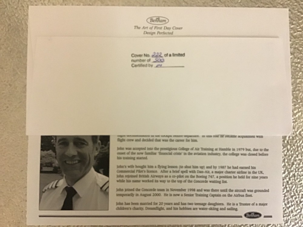 please note:I COMBINE POSTAGE CHARGES. RARE CONCORDE HAND SIGNED COVER,IN EXCELLENT CONDITION.(PLEASE SEE IMAGES). 35th ANNIVERSARY,SIGNED BY CAPTAIN JOHN TYE. 09.04.2004 COMES WITH INFORMATION CARD. PLEASE NOTE:FEEDBACK WILL BE LEFT ONCE THE BUYER'S FEEDBACK IS RECEIVED SO I KNOW THAT THE BUYER HAS RECEIVED THE ITEM. PLEASE CHECK MY OTHER ITEMS FOR SALE.