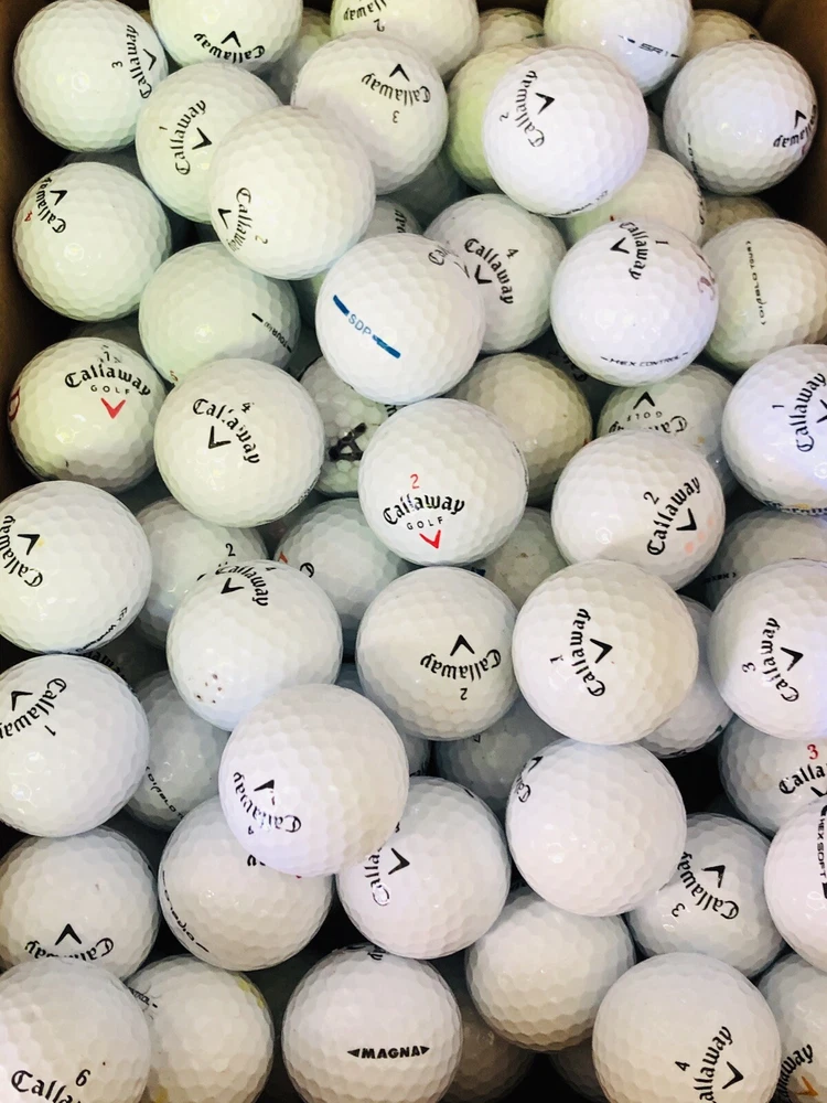 36 Callaway Golf Balls, Assorted Mix, AAAAA In MINT Condition!! Stock Photo Above 5A Grade (AAAAA) Balls will have very little to no blemishes. Will look and feel similar to a new ball. Could contain sharpie markings and slight scuffs that do not affect playability of ball. In great condition!!No balls in this grade has been compromised. May contain team and company logos. Will NOT include X-Outs or PRACTICE balls.