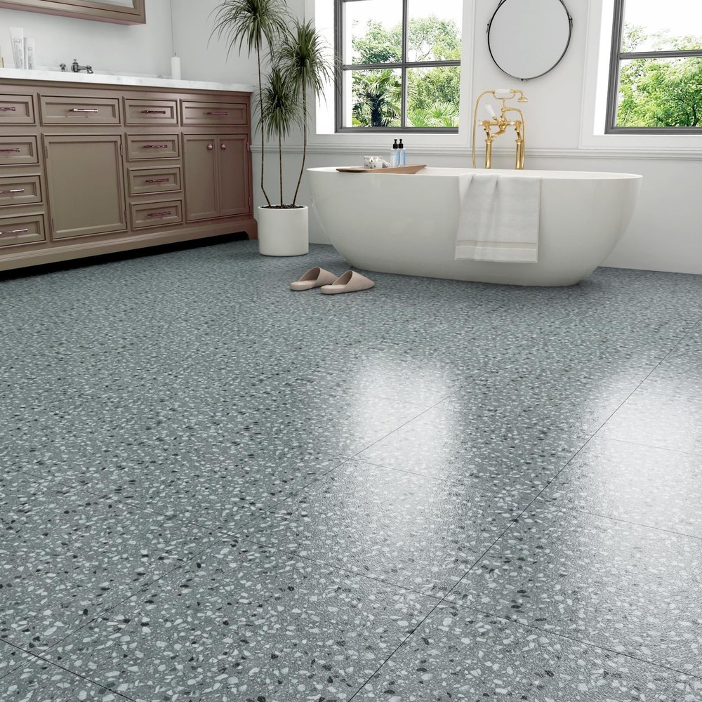 [SIZE] Length: 12 inch; Width: 12 inch [THICKNESS] 0.057 inch [MATERIAL] Vinyl Floor Tiles [COLOR] Black White Grey Peel and Stick Floor Tile [STYLE] Terrazzo Peel and Stick Floor Tile [DESIGN CONCEPT] Natural terrazzo look brings timeless charming for your floor! [ADVANTAGES] 1. Terrazzo Peel and Stick Floor Tile Waterproof: peel and stick floor tile, self adhesive floor tiles, no extra glue needed. 2. Terrazzo Peel and Stick Floor Tile Waterproof: removable floor tiles without sticky residue, great temporary flooring for renters. 3. Terrazzo Peel and Stick Floor Tile Waterproof: 12 x 12 peel and stick floor tile, vinyl floor tiles, vinyl laminate flooring, linoleum flooring. 4. Terrazzo Peel and Stick Floor Tile Waterproof: Waterproof flooring, stain resistant, moisture-proof, anti-slip, easy to clean. 5. Terrazzo Peel and Stick Floor Tile Waterproof: This peel and stick tile floor can be used as bathroom floor tile, shower floor tile, kitchen floor tile, it also can stick on bedroom floor tiles, living room floor tiles, this sticky floor tiles are suitable for dinning room, laundry, nursery, dollhouse, playroom, cubicle, farmhouse, garage, basement, attic, kitchenette, gym, dorm, classroom, apartment, office and rv flooring. [PRO TIPS] 1. Measure the size of the floor surface before purchase, buy enough rolls at one time to avoid color difference. 2. Clean the surface before pasting. The adhesion will be the best if the surface is clean, smooth, dry and flat. 3. We recommend to avoid leaving too much water on the floor tiles while cleaning within two days after installation, which helps to maintain great adhesion for a long time. ➤ SIZE & MATERIAL: Each terrazzo floor tile measures 12"x12" and 0.057" thick. 36 tiles per box, totally can cover 36 square feet. The sticky floor tiles are made of superior vinyl, wear resistant and nonflammable, safe for your family. ➤ EASY TO INSTALL: Self adhesive vinyl floor tiles, just peel and stick floor tiles to your room, readjust if you need, cut with utility knife or scissors to fit small space, no grout or special tools needed. ➤ EASY TO CLEAN: This grey terrazzo peel and stick floor tile is waterproof and washable, oil proof and stain resistant, easy to clean with a wet mop. ➤ REMOVABLE: Just remove the vinyl flooring tiles if you want. It's perfect removable floor tiles and temporary flooring for renters! ➤ MULTI-USE: Stick on floor tiles to any dry, clean and flat floor, such as for bathroom flooring, kitchen flooring, rv flooring, bedroom, living room, laundry room, dining room, basement, entryway, foyers, gym, garage, office, apartment, classroom, etc. ➤ 24/7 SERVICES: Any questions about peel and stick floor tiles, please feel free to contact us or "Ask a Question". Get the gray terrazzo tiles for floor, and start to enjoy your DIY time!