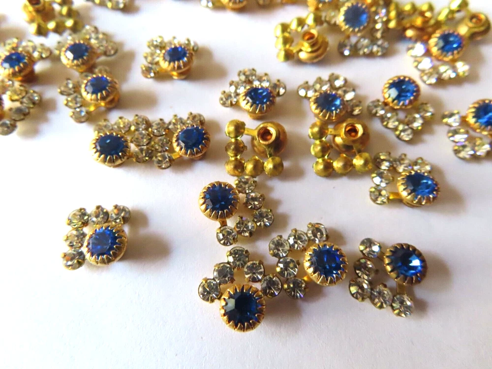 36 Swarovski Rhinestone Brass Rivet settings 11mm Saph/Crystal. NO BACKS
