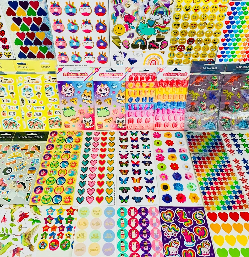 HUGE Mixed Sticker Lot | The Ultimate Kit | Qty. 369+ Stickers | High Quality Only! Fun Assortment of Puffy, Scrapbook, Cartoons, Bubble, Pop Up Stickers Packs For Everyone! You will receive 19+ Sticker Sheets of beautiful colorful assortment. I have included a large variety of pictures of the assortment available. The pictures give you an idea of what you will be receiving. Please Note: You will not receive everything pictured. Please contact me with any special requests. This HUGE Variety of fun designs stickers can be used in parties, classroom, school and home, good for reward for students, potty training, adding inside a birthday card, game activities, entertaining toddlers, etc. Perfect Gifts for Kids & all Occasions: Can be given as a gift for kids, girls, boys, toddlers, teens, students, friends, and classmates, they will love it!