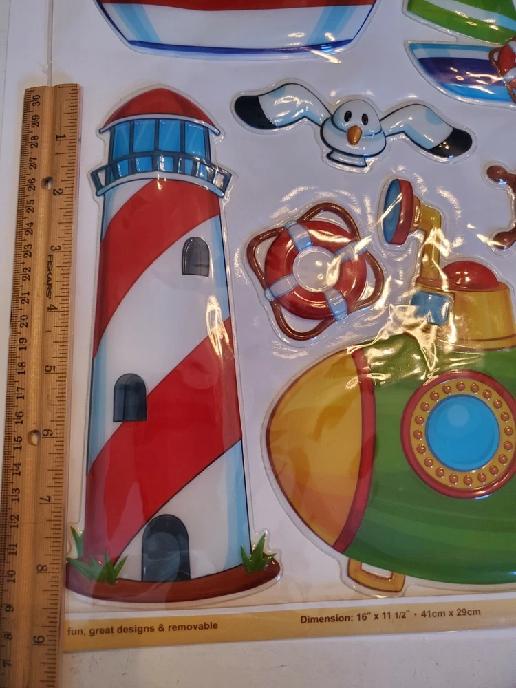 3D Kids Removeable Wall Decor Stickers Out to Sea Lighthouse, Ship, Submarine, Sailboat. We can combine shipping weights and fees if you would like to order multiple items please let us know in advance before you order and we will make you a new listing with all your items included which will save you money.