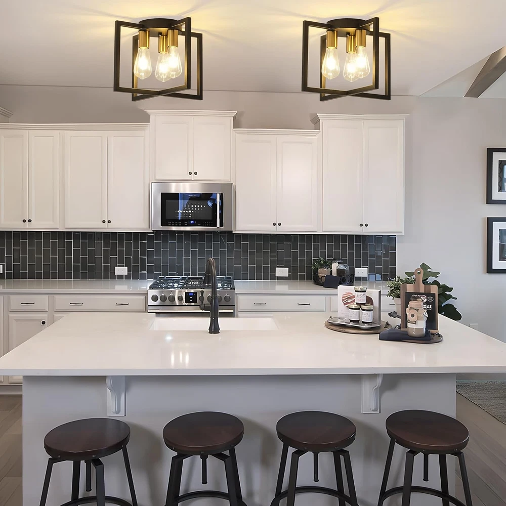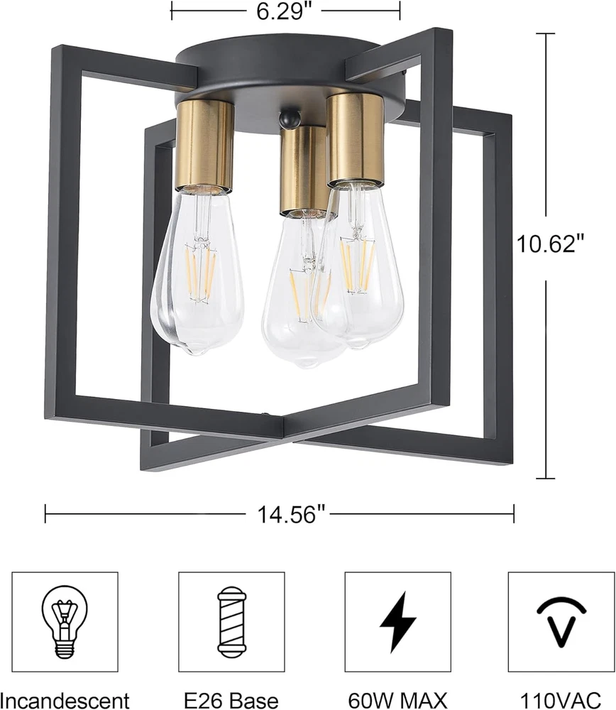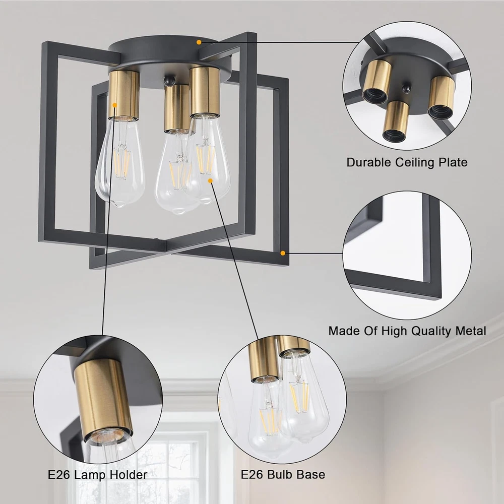 Store New Arrivals Add to Favorite View Feedback Contact 3-Light Ceiling Light Fixture, Black and Gold Semi-Flush Mount Chandelier with Geometric Metal Shade, Farmhouse Industrial Lighting for Kitchen Living Room Bedroom Hallway Foyer, E26 Base Description Item model number K3-Gold Light Source Type Edison, incandescent, halogen, LED, CFL Style Industrial Number of Items 1 Power Source Corded Electric Number of Light Sources 3 Country of Origin China Lighting Method Incandescent, Halogen, LED, CFL Controller Type Push Button Unit Count 1.0 Count Room Type Kitchen/Hallway/Entrances/Foyer/Bedroom/Stairway/Porch/Dining Room/Living Room/Farmhouse/Balcony Product Dimensions 3.15 x 3.94 x 4.72 inches; 4.21 Pounds Material Metal Required Assembly No Model Number K3-Gold Installation Type Flush Mount Model Name K3-Gold Additional Features Dimmable Specific Uses For Product Home Fixture Type Non Removable Brightness 1800 lumen Material Type Metal Light Fixture Form Close to Ceiling Bulb Base E26 Item Dimensions L x W x H 14.56"L x 14.56"W x 10.62"H Shade Color Gold Mounting Type Ceiling Mount Color Black and Gold Ceiling Light Fixture 3-Light Indoor Outdoor Usage Indoor Shape rectangular prism Control Method App Shade Material Metal Included Components Bulb Style Name Industrial Light fixture form Close to Ceiling Modern and Farmhouse Design: The semi-flush mount ceiling light adopts a black painted metal cage shaped lampshade, and the geometric frame staggered design provides a modern industrial appearance. Widely Used: Our farmhouse 3 lights ceiling light fixtures are ideal for bedrooms, living rooms, kitchens, restaurants, foyers, closets, corridors, stairs, entrances, laundry rooms, attics, or kitchen islands. The artistic and charming appearance brings a comfortable rural atmosphere to your house. The Feature of Light: 10.62 inches in height, 14.56 inches in width, and 6.29 inches in bottom width, easy to install, the UL certified ensuring the high-quality and safe operation of this ceiling lamp. Bulb recommendation: 3-light industrial ceiling light supports Edison, incandescent, halogen, LED or CFL bulbs, with E26 base. (excluding bulbs, maximum 60W per socket) Dimmable bulbs and compatible dimming switches are ideal choices for creating various dimming atmospheres. After-sales Service: Bosomfr modern pendant light fixture are shipped after many inspections. If you have any questions or problems before purchasing or after receiving the package, please feel free to . Our professional and reliable service team is always at your service. Product Description E26 Base 3-light industrial ceiling light supports Edison, incandescent, halogen, LED or CFL bulbs(bulbs not include). Bosomfr 3-Light Ceiling Light Fixture Black Chandelier with Geometric Metal Shade Ideal for bedrooms, living rooms, kitchens, restaurants, foyers, closets, corridors, stairs, entrances, laundry rooms, attics, or kitchen islands. ABOUT US We offer the best prices around on high quality products. Our E-store includes media such as books, movies, music and games while offering electronics, toys, sporting apparel, clothing, tools, general home, garden items and more. SHIPPING We are always working hard to ensure your package arrives as soon as possible. Please understand that some factors like weather, high postal traffic, and the performance of shipping companies are outside of our control. We offer free shipping to the lower 48 states and ship within 2 business days of payment, usually sooner. We do not accept P.O. Boxes. Please provide a physical address. For shipping outside of the continental USA, we only use eBay's Global Shipping Program.The item is shipped to KY and then sent to the rest of the world. International customers are responsible for all duties and taxes. Continue to check out in order to calculate costs for shipping the item to your country. Messages regarding eBay's Global Shipping Program MUST be directed at eBay EXCLUSIVELY. RETURNS We offer a 30-Day Return Policy on items which you are not completely satisfied with. You have the option for a full-refund or an exchange of the item. No returns are available on items shipped outside of the USA. PAYMENT We accept PayPal. CONTACT US This page content is yet to come Please ad us to your favorite seller and visit again later Thank You CUSTOMER SATISFACTION We try our very best to make sure every customer is completely satisfied. If there's a problem, message us! We're happy to help. WE ACCEPT Copyright © 2021 AutoDS. | All Rights Reserved