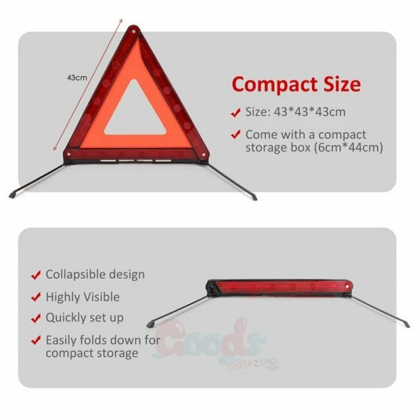 3PCS Car Emergency Warning Triangle DOT Approved Reflective Safety Roadside Kit Ship within 24 hours. 100% New & Excellent Quality Strictly QC, Each item was fully checked before shipping FREE & FAST Shipping delivery with Tracking Number Feature: - Warning for emergencies:Notify other drivers on the road to watch out for an emergency situation like car breakdown on the road, flat tires, crashes or other road breakdown. -Reflective :Help you to stay visible when pulled over during the day/night time. -Easily to use &Stored: No need for charging or other aids when opening.Come with a stored case,foldable design takes up no space . -Non-skid base : Can withstand wind speeds of up to 40 meters per hour.. -Widely use:For work trucks, tractors, trailers, cars, motorcycles, trucks, buses and more. Specification: Material: ABS Color:red Size:431mm/17 inch Package including: 3 pcs *Red Warning Triangles Feedback Delivery details Terms of sales About us Contact us Feedback Contact us if you have any question, Give us a chance to serve you,No negative feedback, it will not solve the problem! Thanks! communication Please! Delivery details Fast Shipping fro m NJ-U S A Terms of sales About us Contact us Welcome ! Pls email us by clicking contact the buyer or ask a question.