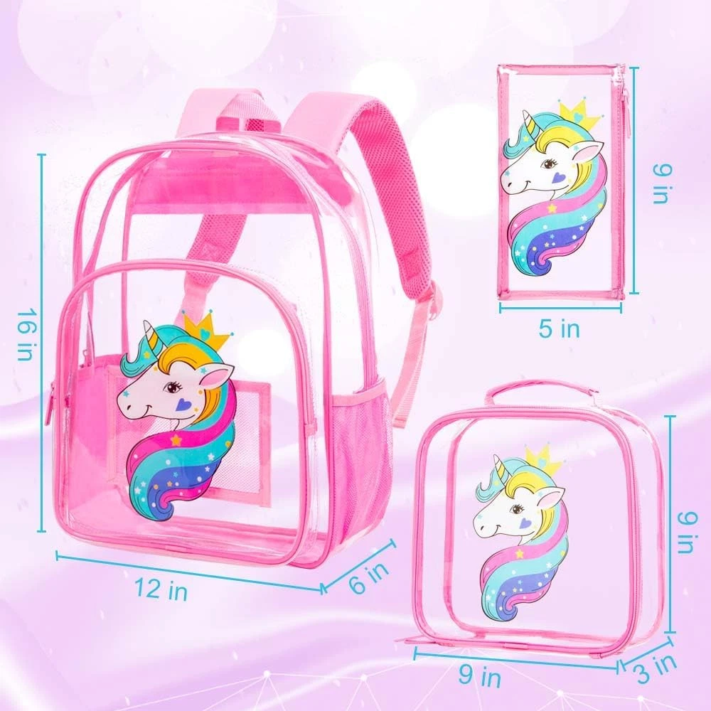 Store New Arrivals Add to Favorite View Feedback Contact 3PCS Clear Backpack for Girls, Kids Unicorn Transparent Bookbag Heavy Duty, Cute See through Backpacks with Lunch Bag - Pink Description Item model number C60 Age Range Description Kid Capacity Total 18 Liters Number Of Items 3 Color Unicorn Pink Product Dimensions 6 x 12 x 16 inches Item Weight 1.72 pounds Department girls UPGRADE MATERIAL--The material of this clear pvc backpack is customized by environmentally-friendly and cold resistant, It is safe for your health and you don't worry it will crack in cold winter. REINFORCED BASE--This clear backpack for girls reinforced the material under bottom, improve the bottom corner of the bookbag ripped apart problem. BACKPACK SET SIZE--The clear unicorn backpack set including bookbag--12.5"(L)x16"(H)*6.5"(W), lunch bag--9"(L)*8.8"(H)*2.5"(W), Pen Case--8.66"(L)x4.8"(H)*0.2"(W). Meet Your Daily Storage Needs. STADIUM APPROVED CLEAR BOOKBAG--This kids backpack made of heavy duty 0.5 mm Clear PVC, It's more strong and durdable. Transparent Backpack with Completely see through all around, including back. LARGE CAPACITY--This clear bookbag for girls with a large main compartment, as well as a spacious front zipper pocket for easy access to your most frequently used accessories and two mesh side pockets perfect. Product Description 16 Clear Backpack for Women Men Add to Cart Add to Cart Add to Cart Add to Cart Add to Cart Add to Cart Customer Reviews 4.4 out of 5 stars 8,580 4.4 out of 5 stars 8,580 4.4 out of 5 stars 8,580 4.4 out of 5 stars 8,580 4.4 out of 5 stars 8,580 4.4 out of 5 stars 8,580 4.4 out of 5 stars 8,580 Price $17.99 $ 17 . 99 $12.99 $ 12 . 99 $14.99 $ 14 . 99 — $13.99 $ 13 . 99 $12.99 $ 12 . 99 $12.99 $ 12 . 99 Backpack Size 12in*16in*6in 12in*16in*6in 12in*16in*6in 12in*16in*6in 12in*16in*6in 12in*16in*6in 12in*16in*6in Backpack Material heavy duty 0.5 mm PVC heavy duty 0.5 mm PVC heavy duty 0.5 mm PVC heavy duty 0.5 mm PVC heavy duty 0.5 mm PVC heavy duty 0.5 mm PVC heavy duty 0.5 mm PVC Adjustable Strap ✔ ✔ ✔ ✔ ✔ ✔ ✔ Easy clean ✔ ✔ ✔ ✔ ✔ ✔ ✔ Multi-pocket Design ✔ ✔ ✔ ✔ ✔ ✔ ✔ Heavy Duty Clear Backpack See Through PVC Backpacks for Kids. 3PCS Clear Backpack, Heavy Duty Transparent Bookbag, See Through PVC Backpacks for Boys Girls. Heavy Duty Clear Backpack See Through PVC Backpacks for Kids. 3PCS Clear Backpack, Heavy Duty Transparent Bookbag, See Through PVC Backpacks for Boys Girls. Heavy Duty Clear Backpack See Through PVC Backpacks for Kids. 3PCS Clear Backpack, Heavy Duty Transparent Bookbag, See Through PVC Backpacks for Boys Girls. 1 Clear Backpack for Girls 2 Clear Backpack for Girls 3 Clear Backpack for Girls Clear Backpack for Girls Boys This clear backpack for girls with a large main compartment, as well as a spacious front zipper pocket for easy access to your most frequently used accessories and two mesh side pockets perfect. Heavy Duty 0.5 mm PVC Clear Backpack This clear backpack for girls reinforced the material under bottom, improve the bottom corner of the bookbag ripped apart problem. Children's Printed Clear Backpack The video showcases the product in use. The video guides you through product setup. The video compares multiple products. The video shows the product being unpacked. The material of this clear pvc backpack is Cold-resistant material and cold resistant,you don't worry it will crack in cold winter. 16 Children's Backpacks for Boys Girls Backpack Size 12in*16in*5in Backpack Size 12in*16in*5in Backpack Size 12in*16in*5in Water Resistant splash-proof Water Resistant splash-proof Water Resistant splash-proof PACKAGE-3PCS School Backpack + Lunch bag + Pencil bag PACKAGE-3PCS School Backpack + Lunch bag + Pencil bag PACKAGE-3PCS School Backpack + Lunch bag + Pencil bag Is the backpack material waterproof? Our backpack is constructed by water resistant,But it's just splash-proof. What occasions is this clear backpack suitable for Attend soccer games, sporting events, concerts, parties, and holiday celebrations with this amazing see-through backpack that allows you to go through security without worry! How is the weight capacity of this clear backpack This kids backpack made of heavy duty 0.5 mm Clear PVC, reinforced the material under bottom, improve the bottom corner of the bookbag ripped apart problem,It's more strong. What is the capacity of this backpack? This clear bookbag for girls with a large main compartment, as well as a spacious front zipper pocket for easy access to your most frequently used accessories and two mesh side pockets perfect. ABOUT US We offer the best prices around on high quality products. Our E-store includes media such as books, movies, music and games while offering electronics, toys, sporting apparel, clothing, tools, general home, garden items and more. SHIPPING We are always working hard to ensure your package arrives as soon as possible. Please understand that some factors like weather, high postal traffic, and the performance of shipping companies are outside of our control. We offer free shipping to the lower 48 states and ship within 2 business days of payment, usually sooner. We do not accept P.O. Boxes. Please provide a physical address. For shipping outside of the continental USA, we only use eBay's Global Shipping Program.The item is shipped to KY and then sent to the rest of the world. International customers are responsible for all duties and taxes. Continue to check out in order to calculate costs for shipping the item to your country. Messages regarding eBay's Global Shipping Program MUST be directed at eBay EXCLUSIVELY. RETURNS We offer a 30-Day Return Policy on items which you are not completely satisfied with. You have the option for a full-refund or an exchange of the item. No returns are available on items shipped outside of the USA. PAYMENT We accept PayPal. CONTACT US This page content is yet to come Please ad us to your favorite seller and visit again lat