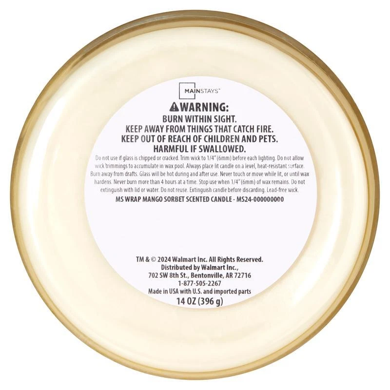 Penny Candy Glass Jar with Lid Cookie Jar 1 Gallon Food Storage Jar for Snacks 12.9 USD 13.72 USD Free shipping 6% off 8 Ounce Ball Peen Hammer Wood Handle Automotive Tool Drop Forged Steel New 9.72 USD 10.34 USD Free shipping 6% off 4-Piece Stoneware Stacking Mugs Set W/ Organizer Rack 12oz Christmas Decoration 17.58 USD 18.7 USD Free shipping 6% off Airtight Storage Bin W/ Lid Clear Stackable Durable Plastic Containers 6 Qt New 11.57 USD 12.31 USD Free shipping 6% off Heavy Duty Plastic Shirt Hangers 19in 100 Pack w/ Metal Swivel Hook Durable US 63.44 USD 67.49 USD Free shipping 6% off All Mileage Synthetic Motor Oil 20W-50 5QT High Mileage Protection Engine Care 24.53 USD 26.1 USD Free shipping 6% off 2 lb Dead Blow Hammer Non-Marring Soft Face Steel Shot Handle DIY Tool New 15.08 USD 16.04 USD Free shipping 6% off Chipotle Seasoning All-Purpose Smoky Sweet Flavor Ideal Grilling Smoking New 12.43 USD 13.22 USD Free shipping 6% off 12 Gal Hinged Lid Industrial Tote Plastic Storage Box Heavy-duty Stackable Bin 17.82 USD 18.96 USD Free shipping 6% off Toilet Lid Cover Plush Polyester Non-Slip Stain Resistant Machine Washable New 10.57 USD 11.24 USD Free shipping 6% off Medium Dog Bed Tufted Pillow Soft Cozy Pet Sofa New Machine Washable 27" x 36" 17.62 USD 18.74 USD Free shipping 6% off Ceramic Mug 15oz Comfortable Handle Dishwasher Microwave Safe Office Gift Girl 10.55 USD 11.22 USD Free shipping 6% off Introduce a soothing aroma into your living space with the Mainstays 3-Wick Textured Wrapped Mango Sorbet Scented Candle. Mainstays scented candles are highly fragranced and provide a clean and even burn that will fill your home with beautiful and enticing seasonal aromas. Place this candle in the kitchen, living room or dining room where you can enjoy it when entertaining guests or anytime you want to relax. Trim the wick periodically to promote even burning. Mainstays offers a wide selection of candle scents to explore and enjoy. Shop all of our Mainstays scents online and in-store. Treat yourself to the enticing scent of the Mainstays 3-Wick Textured Wrapped Mango Sorbet Scented Candle. Mainstays 3-Wick Textured Wrapped Mango Sorbet Scented Candle, 14 oz Consistent and smooth burn 3-wick with decorative wrap and attractive metal lid Highly fragranced candle Fragrance notes of mango, mandarin, and sugarcane You may also like 3-Wick Juicy Watermelon Scented Candle Decorative Glass Jar Recyclable 65h Burn 10.55 USD 11.22 USD Free shipping 6% off Bourbon Pecan Pie Scented Large Glass Jar Candle Single Wick 20 oz Aroma New 12.09 USD 12.86 USD Free shipping 6% off 12oz 2-Wick Jar Candle Smoky Gray Mist Hand-Poured Aromatic Fragrance Home Decor 17.47 USD 18.58 USD Free shipping 6% off Fall Farmhouse Scented Candle Warm Spicy Aroma Cozy Relaxing Environment New 11.95 USD 12.71 USD Free shipping 6% off Hazelnut Cream Scented Candle Single Wick 20 oz Aromatic Gift Home Decor New 12.09 USD 12.86 USD Free shipping 6% off
