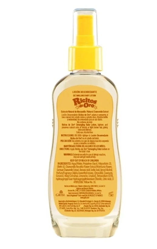Hair Type:All Hair TypesVolume:125ml eachPeriod After Opening (PAO):36MSize Type:125 ml eachBrand:Ricitos De OroDepartment:UnisexScent:chamomileCustom Bundle:YesStyling Effect:Nourishing/Hydrating, Shine/GlossProduct Line:Ricitos De OroCountry/Region of Manufacture:MexicoSuitable For:HairHold Strength:Light HoldColor:ClearFeatures:All Natural Ingredientsgtin13:Does not applyBundle Description:3 packMPN:N/AType:HairsprayUPC:Does not applyFormulation:Spray