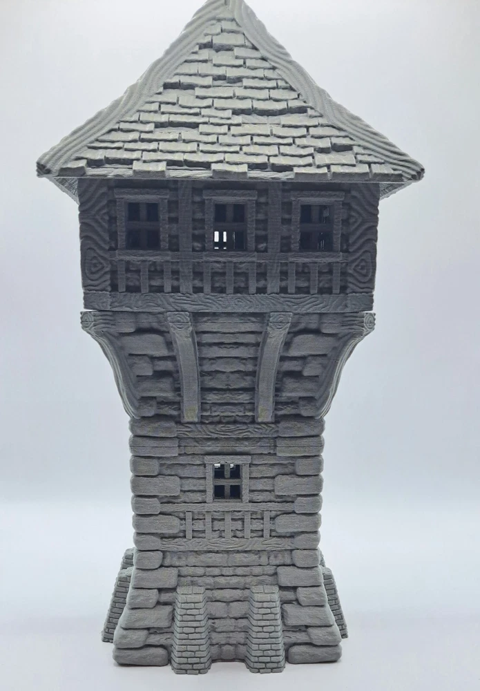 This 3d printed Wizards tower is perfect for tabletop roleplaying games and scenery. It's a great addition to any miniature or war game collection. The intricate details and high-quality printing make it a must-have for any fantasy enthusiast. The house is ideal for creating a unique and exciting atmosphere for your games. This tower is 3 stories tall and is suitable for 28mm and 32mm miniatures. It is a 3d printed with PLA plastic that ensure durability and longevity. Whether you're a seasoned player or just starting out, this tower is sure to impress. Add it to your collection today and take your gaming experience to the next level! Please note: it will come unpainted in a random color. However, it is very easily painted. Returns are accepted if the item does not match the listing description or is not accurate as advertised. If you have any questions or concerns please contact me. Accreditation Designer: Dani Amengual Check them out on myminifactory. https://www.myminifactory.com/users/DaniAmengual I am a licensed printer of Dani Amengual