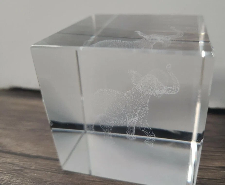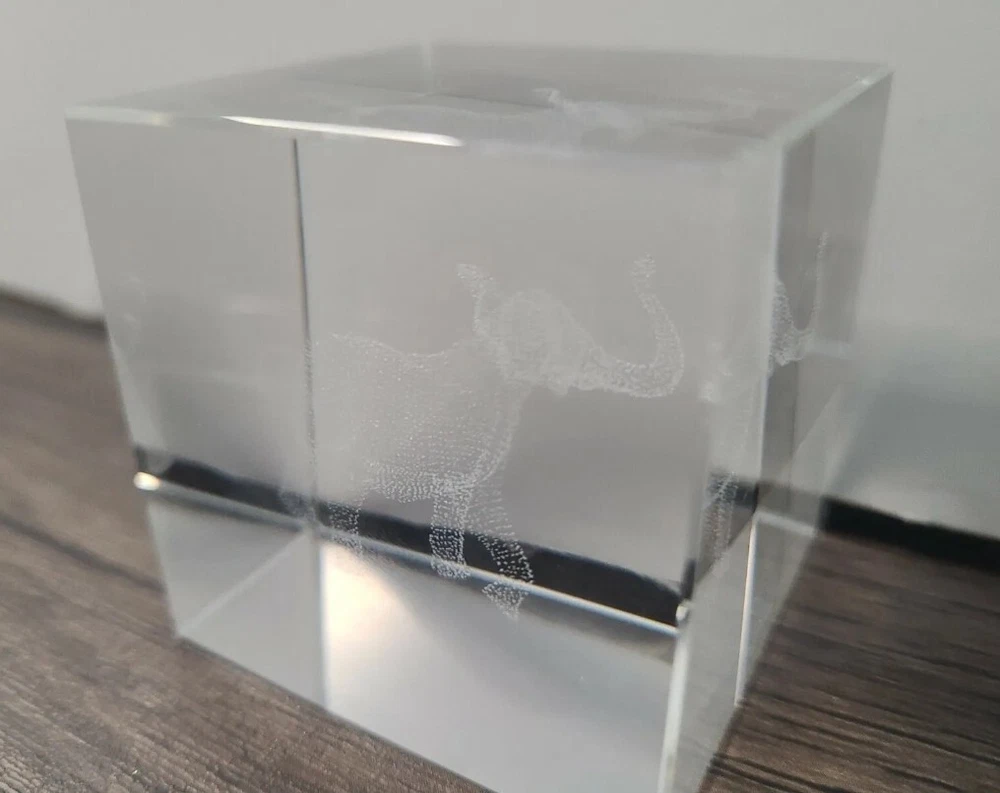 3d laser etched crystal paperweight elephant.