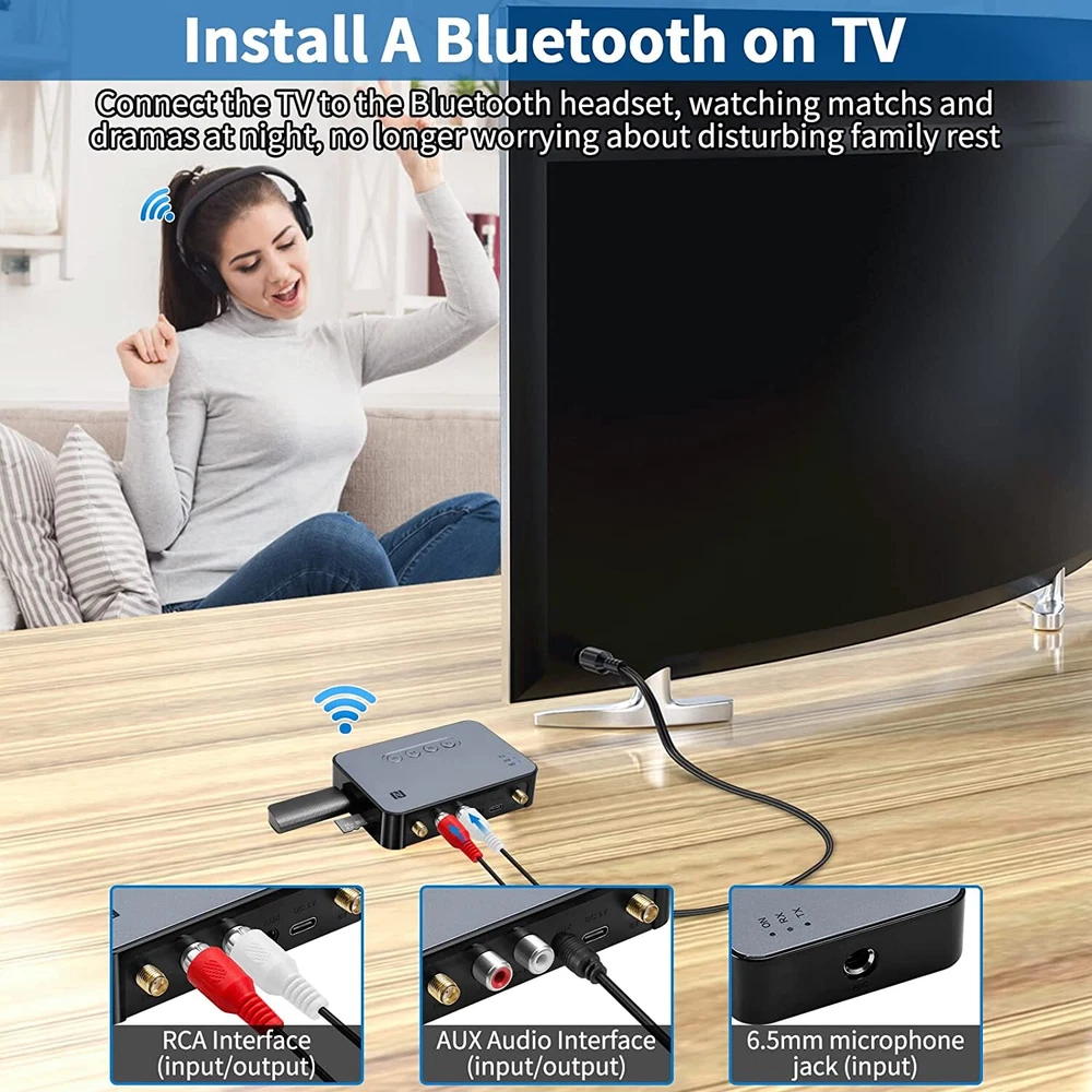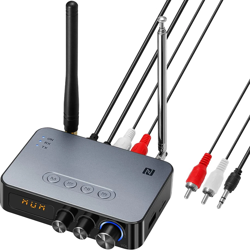 [Three-in-one design]: Support Bluetooth receiving (RX), Bluetooth transmitter (TX), FM transmitter mode. Equipped with HD LED display, working status and Bluetooth mode can be clearly seen. With multi-function keys, one - click switch mode, or play/pause music, easy to operate. Support wireless music listening, hands-free calling, navigation, make your driving safer 3in1 Bluetooth 5.1 Transmitter Receiver Wireless NFC to RCA Stereo Audio Adapter Bluetooth V5.1 Transmitter Receiver Audio Adapter - 3 In 1 Wireless Bluetooth Adapter NFC Bluetooth Receiver Transmitter HiFi with Low Latency 3.5mm AUX RCA Coaxial for Home Stereo, Car, PC, TV About this item: Dual Transmit Dual Receive: 3-in-1 Bluetooth Adapter support RX, TX and FM, support NFC wireless connection. As an audio Bluetooth transmitter, it stream audio from TV, PC, laptop to two Bluetooth headphones. Or use it as a receiver to stream your cellphone audio to home stereo as well as any device with a 3.5mm audio jack. Enjoy the wireless tech life High-fidelity Surround Sound: Built-in Bluetooth V5.1 chip, equipped with aptX lossless transmission technology and intelligent noise reduction system, DSP digital audio processing chip, you can manually adjust the treble and bass to make the sound clearer and enhance the surround sound Long-Range Wireless Connection: The latest version 5.1 Bluetooth wireless communication standard is adopted, external Bluetooth signal gain transceiver antenna and FM radio antenna. Bluetooth receiver can achieve 100 feet (30m) range, stable transmission, audio is not easy to cut in/out Multiple Interface Options: built-in digital to analogue chip, supports 3.5 mm jack AUX, RCA, coaxial, USB flash drive , TF interface, 6.5mm audio line microphone can be connected. Comes with AUX cable, RCA cable, USB charging cable, it can meet all your connection requirements and meet different audio devices with Bluetooth and non-Bluetooth function Rechargeable & Long Playtime: Built-in with 1200mAh battery that supports the receiver for non-stop streaming up to 8-10 hours, long standby time of 30 days. Can be used while charging. Compliance with safety certification, longer service life Product Description Built-in FM Radio Unlock A Rich Music World Support Microphone Equipped with a professional karaoke-level chip, the remote control can realize operations such as microphone volume/mixing/cancelling original sound Old speakers/amplifiers/DVD players can easily upgrade Bluetooth 5.1 function Upgrade old-fashioned active speakers, built-in DSP sound chip, stereo sound quality is more pleasant Equipped with Bluetooth 5.1 + DSP dual upgrade chip, quick response Fast transmission of Bluetooth signals, reject delays, and have no lag 1200mAh Lithium Battery Low power consumption design, listen to music for 8 hours, and experience long-lasting music journey Supports simultaneous charging and playback, unlimited indoor and outdoor use 30 Meters Long-Distance Transmission External 2.4G Bluetooth antenna, 30 meters signal transmission without barriers Payment Delivery details Terms of sales About us Contact us Payment - We only accept payment via PayPal. Please kindly check if you can do the payment via PayPal before placing an order. If you do not have PayPal account. - Payment must be received within 7 days after auctions ended. Unpaid dispute will be filed to eBay for the non payable bidders. Delivery details - We will ship all orders within 2 business day of payment. - The shipment usually takes 1-5 business days (Saturday and Sunday excluded). - If you need the item urgently, please contact us for detail before purchase. - Local pick up is not available. Terms of sales 1 .Our items come with our warranty. 2.Our warranty does not extended to any products that are physically damaged or that are not under normal operating conditions as a result of misuse or improper installation on the buyer/user's part. 3.This product comes with 30-Day Money Back Guarantee. 4.We stand behind every product we sell. If you're not pleased with your purchase, we'll be happy to make an exchange or refund. 5.For all returned products, please contact us for the returning address. About us 1.Your better comments will be an encouragement for us as a new and honest seller to offer the better quality and the better service in future. 2. If you are not satisfied with them, please contact us first via "Contact Seller" before leaving any Negative feedback or open any dispute ,we will reply you within 1-2 working days and We shall try our best to solve your problem to your satisfaction.Thanks for your trust and understanding in advance. Contact us 1. Please contact us in time if there is any further question or suggestion, we will reply you within 1-2 working days. 2. Hope you have a good shopping experience in my store.Thank you so much for your support!