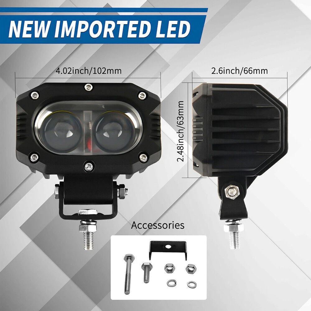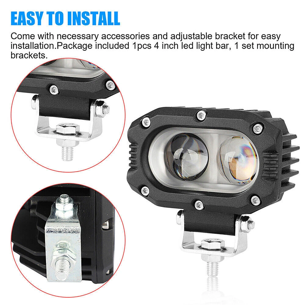Product Description LED Power:60w Lumin: approx.6000LM Operating Voltage: 10-60V DC Waterproof rate: IP 68 Light Color: White Color Temperature: White: 6000K Working Temperature: -45 ~+85°C Material: Diecast aluminum alloy housing Lens material: PC Beam: Flood Beam 70000 hours lifespan Certificates:CE/RoHs/ IP68 Package included: 1x 4inch Flood LED Work Light Bar 4" 60W Flood Led Work Light Fog Reverse Cube Pod For Offroad Truck SUV ATV 12V 4" Flood LED WORK LIGHT Product Description LED Power:60w Lumin: approx.6000LM Operating Voltage: 10-60V DC Waterproof rate: IP 68 Light Color: White Color Temperature: White: 6000K Working Temperature: -45 ~+85°C Material: Diecast aluminum alloy housing Lens material: PC Beam: Flood Beam 70000 hours lifespan Certificates:CE/RoHs/ IP68 Package included: 1x 4inch Flood LED Work Light Bar Features: - Super light with High intensity LEDs and triple row combo beam pattern (spot or flood). - Special designed aluminum alloy heat sinks extends the lifespan to over 50000 hours. - Come with mounting brackets & Screw set, easy to install. - Easy mounting to different types vehicles, widely used. - The high performance of tight, waterproof, dustproof and shockproof, high waterproof rate IP68, Anti explosion. Does it bright enough to light up the way? High-quality LED chips create powerful and super bright ray to light up the forward dark road. Provides the perfect balance between beam distance and coverage area. It is popular for both highway driving and off-road because drivers can see the road ahead and beneath the wheels. Installation 1. Test the light to make sure it can work properly. (Red line is positive, black line is negative.) 2. Install the hex nuts on the bolts, And twist the spring meson . 3. Make the bolts go through the mounting holes And set into the spring meson, And then tighten the hex nut. 4. Connect the power line to the corresponding power connector. 5. Make sure the light is installed steadily, And then start the power. Application: It is used on any vehicles, car, ATV, SUV, UTE, mining, boat, Jeep, off-road, trailer, motor,bicycle,Excavators, truck, tractor and other heavy equipments. Payment Delivery details Terms of sales About us Contact us Payment 1.We will only acceptPayPal as the payment which enables you to send payment quickly and securely. 2.All products will be sent to your PayPal address. Please check your address when you place an order and before shipment. 3.If you would like to change your address, please contact us ASAP by eBay message before shipment. Delivery details 1.Package can be shipped out to you within 3 working days from USA 2.The default expected delivered time is 1-5 working days 3.We send the most packages via e-packet/ UPS/Fedex/DHL and other air mail. 4.Please be kindly note that there will be custom duty or tax for certain items in some countries. It is the buyer's responsibility to pay for the clearance. Terms of sales 1.We will provide 3-year warranty. And you may return all products within 30 days of delivery for replacement or refund if you're unsatisfied with them. 2.All return items must be in brand new condition which means the item is never installed and kept in original packaging with whole integrity. 3. We offer the pre-label for our customer who received the broken/ defective/wrong item. But please be kindly note that the customer has to pay for the returning shipping fee unless a mistake is made by us. 4.For the returned products, we will arrange a new replacement or issue a refund after we have received your package and inspected it. About us 1.We operate the shop based on the principle of " quality first, credit first, customer first, integrity". Please contact us to solve the problems firstly if you have any ones. 2.We specialize in producing and selling LED working light/ LED headlight/ LED light bar/ LED headlight bulbs etc. 3.Due to the time difference, we may not be able to respond to your message in time, we will check the message and solve your problem at the first time.Our Customer Support Working Time: (GMT+8)Monday to Friday,9:00-17:00. Contact us 1.If you have any problems about our product, please do not hesitate to contact us by eBay message or email any time you need. If you are not satisfied in anyway, please be free to let us know and give us a second chance to correct and serve you before you want to leave a neutral or negative review. 2.We hope you enjoy your shopping experience within our shop. Your satisfaction is always our first priority. We will very appreciate that you can leave us a favorable reputation if you like our commodity and service. And we will do the same for you within 24 hours or more sooner. On Jan 24, 2024 at 17:13:44 PST, seller added the following information: