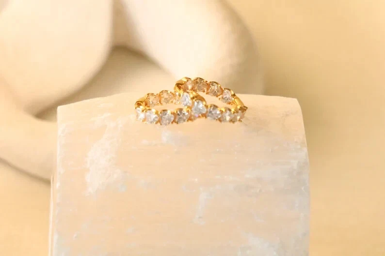 This 4 Ct Heart Simulated Diamond Women's Hoop & Huggie Earring is crafted in 14k Yellow Gold Over Sterling Silver. The earrings feature a heart-shaped simulated diamond with a 4mm width, set in a prong style. They have a clip-on closure and are 18mm in length, with a 10mm diameter. These personalized earrings are nickel-free, engraved, and handmade in India, making them suitable for various occasions like engagements, weddings, birthdays, and more. Perfect for adding a touch of elegance and sparkle to any outfit.