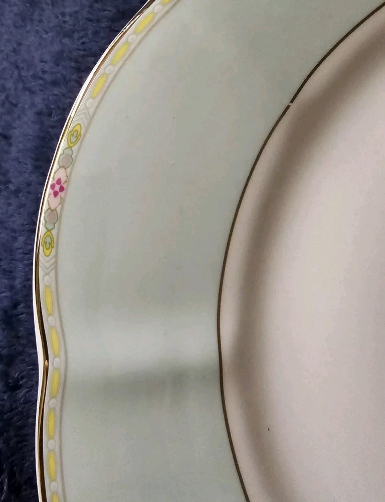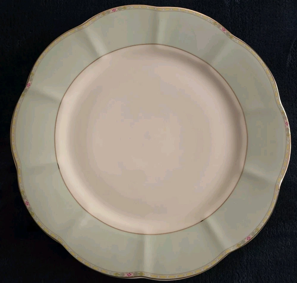 Add a touch of elegance to your dining table with this set of four Grace's Teaware dinner plates. The plates are crafted from high-quality porcelain in a beautiful sage green color with a shiny finish. Each plate measures 10.5 inches in diameter and features a scalloped edge design with gold accents that add a touch of luxury to your dining experience. These plates are perfect for all occasions, whether you're hosting a formal dinner party or a casual family gathering. They are dishwasher safe, making them easy to clean and maintain. The set includes four plates, each with the brand's signature design. Bring a touch of contemporary style to your table with these Grace's Teaware plates.