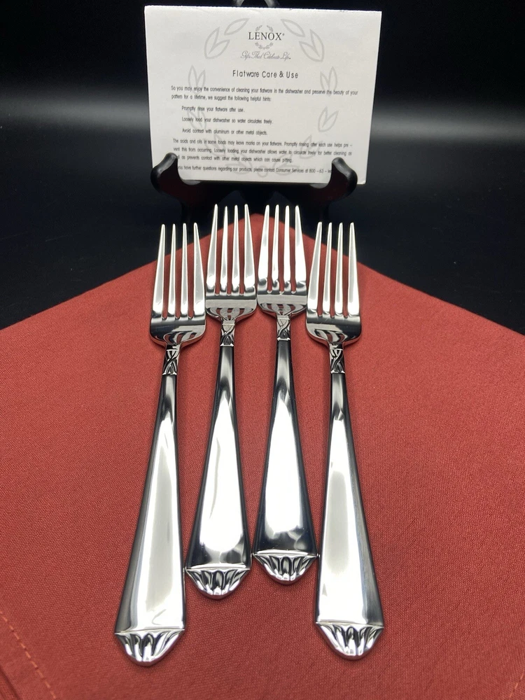 The listing is for 4 (four) Lenox British Colonial Stainless Dinner forks each measures approximately 8-1/8 inches long. New and unused from my own personal stock 17 years ago. They are all in excellent condition. The dinner forks weigh approximately 8 ounces without packaging material. Will package with great care and thank you kindly for your consideration. REASONABLE SHIPPING: Calculated shipping: Weight and distance based shipping via USPS Ground Advantage domestically USA from South Florida. USPS Ground Advantage is lowest shipping cost. Estimated delivery of 2-8 business days. Shipping costs is based on item(s) weight including packaging materials and the distance from the seller’s zip code to the buyer’s zip code. Buyers whose shipping address/zip code is in the East coast of USA tend to have higher shipping costs as distant is longer from seller’s South Florida zip code. Ships globally via Ebay International Shipping Delivery.