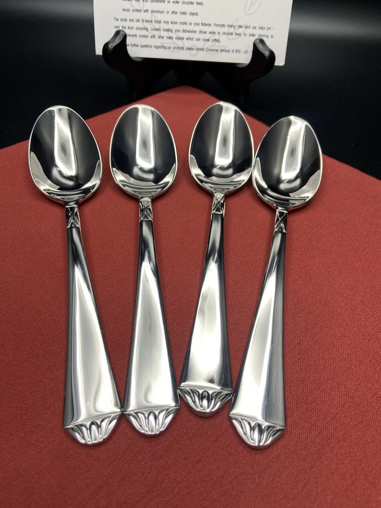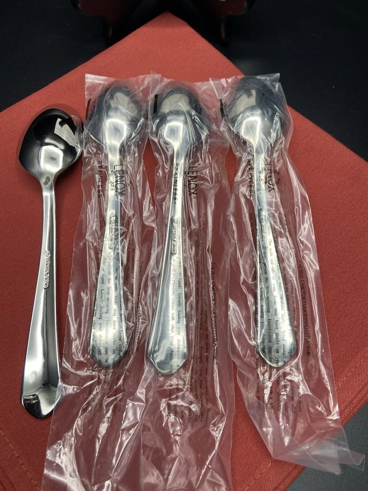 The listing is for 4 (four) Lenox British Colonial Stainless Soup Spoons each measures approximately 7-1/8 inches long. New and unused from my own personal stock 17 years ago. They are all in excellent condition. The soup spoons weigh approximately 7 ounces without packaging material. Will package with great care and thank you kindly for your consideration. REASONABLE SHIPPING: Calculated shipping: Weight and distance based shipping via USPS Ground Advantage domestically USA from South Florida. USPS Ground Advantage is lowest shipping cost. Estimated delivery of 2-8 business days. Shipping costs is based on item(s) weight including packaging materials and the distance from the seller’s zip code to the buyer’s zip code. Buyers whose shipping address/zip code is in the East coast of USA tend to have higher shipping costs as distant is longer from seller’s South Florida zip code. Ships globally via Ebay International Shipping Delivery.