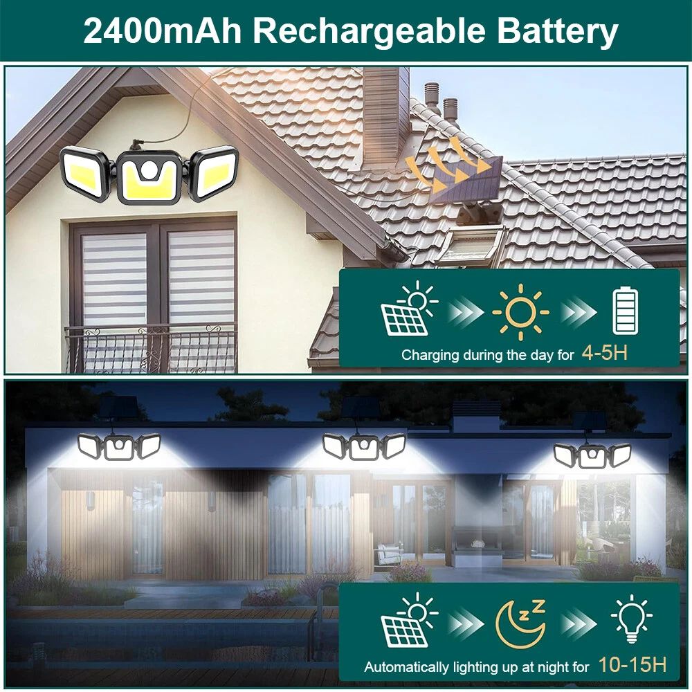 Solar Powered Outdoor Lights 2000LM 100 COB Security Light, 3 Heads Motion Sensor Lamp, IP65 Waterproof, 270° Wide Angle Flood Wall Light with 3 Modes, Motion Detected Spotlight for Garden Garage Yard Entryways Patio Electronicsrepair-h Your best online business partner 4 Pack Waterproof Solar 3 Head Powered Motion Sensor Wall Outdoor Security Lamps Solar Powered Outdoor Lights 2000LM 100 COB Security Light, 3 Heads Motion Sensor Lamp, IP65 Waterproof, 270° Wide Angle Flood Wall Light with 3 Modes, Motion Detected Spotlight for Garden Garage Yard Entryways Patio Features: 【MOTION SENSOR】 Solar Motion Sensor Light Outdoor is equipped with 120 degree angle and sensitive motion sensor, which can provide illumination widely and without delay. Once the sensor of Solar Spotlights Outdoor detect the motion, there will be 30s illumination and without motion detected for long time the lights will auto turn off. 【Wide Angle Illumination & PIR Motion Inductor】 3 adjustable heads design can be adjusted. With innovative wide-angle and intelligent induction control, solar flood light detects up to 120° wide lighting angle and 26 feet sensing distance,which can provide extra brightness and more visible area. 【Long Working Time】 This solar powered flood light has a built-in 2400mAh rechargeable battery with the high-efficiency solar panel to ensure that it can be charged at less light day. The solar light will be charged auto in the daytime and start working in darkness. So please install these lights under sunshine for effective battery charging. 【IP65 WATERPROOF】 The Solar Lights with Motion Sensor are waterproof, heat-resistant, frost resistant, suitable for most weather conditions and suitable for outdoor patio, garden, lawns, deck, yard, drive, outside wall, fence, etc. 【EASY TO INSTALL】 The package of LED Solar Lights includes brackets and screws of each lights. The outdoor security lights motion can be mounted on the wall with screws and great for patios, lawns, patios, front door etc. Specifications: Safe Material: ABS + PC Solar Panel: 1.8W, 5.5V; Wattage: 5-8W; LED QTY: 100 pcs COB Lumen: 2000LM Li-ion Battery: 3.7V 2400mAh Waterproof Rate: IP65 Sensing Distance: 26-32Feet Installation Type: Wall Mounted Sensor Angle: 120 Degree Three Working Mode: Three gear modes 1. Induction mode (highlights when people come, lights off 20-30s after people leave) 2. Induction + micro-bright mode (highlights when people come, slightly bright after people leave, 10% brightness) 3. Micro-bright and no induction mode, 20~30% brightness Packae: 4x Solar Light Item Specifics Brand Unbranded Type Solar Street Lamp Power Source Solar Colour Black Features Solar, Waterproof, Weather Resistant, Weather Proof/ Rainsafe Number of Lights 4 IP Rating IP65 Material ABS Installation Area Outdoor Style Modern Returns Restocking fee: There will be a 15% restocking fee if returning mistakenly order or no longer needed item, read the tips below on how to avoid it. Read the item description carefully instead of only the listing title Choose the correct item from the drop-down menu (if applicable) before clicking on the add to cart button. If you have any questions regarding the item, please send us a message before purchasing. DOA (Dead On Arrival) : Take a picture of the outer box if you have received a damaged package, check all the contents inside for any physical damage and send the pictures to us as evidence within 3 Days for a return or refund. We are not responsible for any kind of compatible issues, or problems related to any specific software or games. Payment We only accept payment via eBay. Please make your payment within 5 days after auction ends otherwise a non-payment dispute will be opened. We will ship to your eBay address. Please make sure your eBay address is correct before you pay. Contact Us If your item has any issues, do NOT leave a Negative feedback without contacting us through eBay first, we will try our best to get it resolved and provide an address for you to return the item once it is qualified. Returns will be processed within (7) business day after receiving the item in original condition. Shipping After receiving your payment, your order will be shipped within 1-2 business days from Australia. Delivery times may vary , especially during peak periods or toward remote area. You may choose what service you need. Economy Delivery : 2-6 Working Days Standard Delivery : 2-5 Working Days Express Delivery : 1-3 Working Days We are not responsible for anything late or lost by logistics. Electronicsrepair-h Your best online business partner DESCRIPTION PAYMENT SHIPPING RETURN POLICY CONTACT US Hot Item For Samsung Galaxy S8 G950 Incell LCD Display Touch Screen Digitizer Replacement USD 43.95 Incell Replacement For Samsung Galaxy S8 Plus G955 LCD Display Screen + Frame USD 44.95 For Samsung Galaxy S9 Plus S9+ G965 LCD Display Touch Screen Replacement Black USD 45.69 Gorilla Glass Military Heavy Duty Hard Case For iPhone 14 Pro 12 Mini 15 XS 8 7 USD 13.01 HOT Coin Storage Holders Box Plastic Capsules Case 20 Certified PCGS NGC Slab US USD 9.59 New List Item Outdoor Solar COB Deck Night Lights Garden Patio Pathway Stairs Step Fence Lamps USD 11.09 Solar Garden Light Street Sensor Light 108 COB Outdoor Garden Street Light USD 11.09 2 Pack Waterproof Solar 3 Head Powered Motion Sensor Wall Outdoor Security Lamps USD 31.29 2X Solar Remote Security Lights Outdoor 72 COB Motion Sensor Flood Garden Light USD 22.49 2 PC Solar Flood COB Light Motion Sensor Security Wall Yard Street Outdoor Lamp USD 17.59 Shop Category Store Home For Samsung DOT Screen For Samsung Digitizer For iPhone Digitizer For OnePlus Digitizer For Motorola Digitizer For Google Digitizer For LG Digitizer Other Digitizer For Samsung Tablet For Apple Tablet Other Tablet Accessories For iPhone Case Smart Watch Accessories Memory RAM Stylus Z Wholesale L Wholesale W Wholesale X Wholesale Other Help & Info Payment Policy Shipping