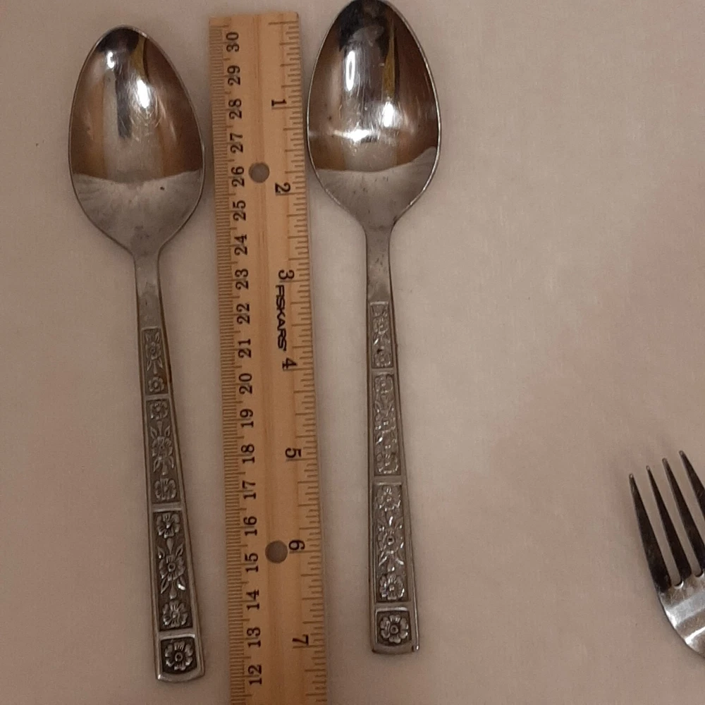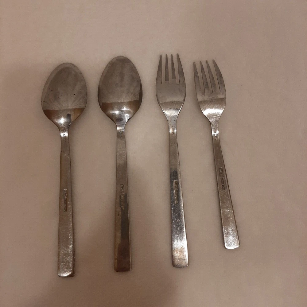 4 Piece TTC Stainless Steel Korea Flatware 2 Spoons & 2 Forks READ DISCRIPTION In good pre-owned condition may show signs of wear from use/handling/storage/display. Please view all pics for condition/details/flaws/issues. SOLD AS IS This set has a few issues the set has surface scratches please see photos 10, 13, & 18-19, there are marks/spots/dirt/debris/rust on set please see photos 7-23, there is color loss to design on both spoons and large fork please see photos 14 & 24, the spokes of forks may have slight bents please view photos 7-10, Please view all photos for details/conditions.