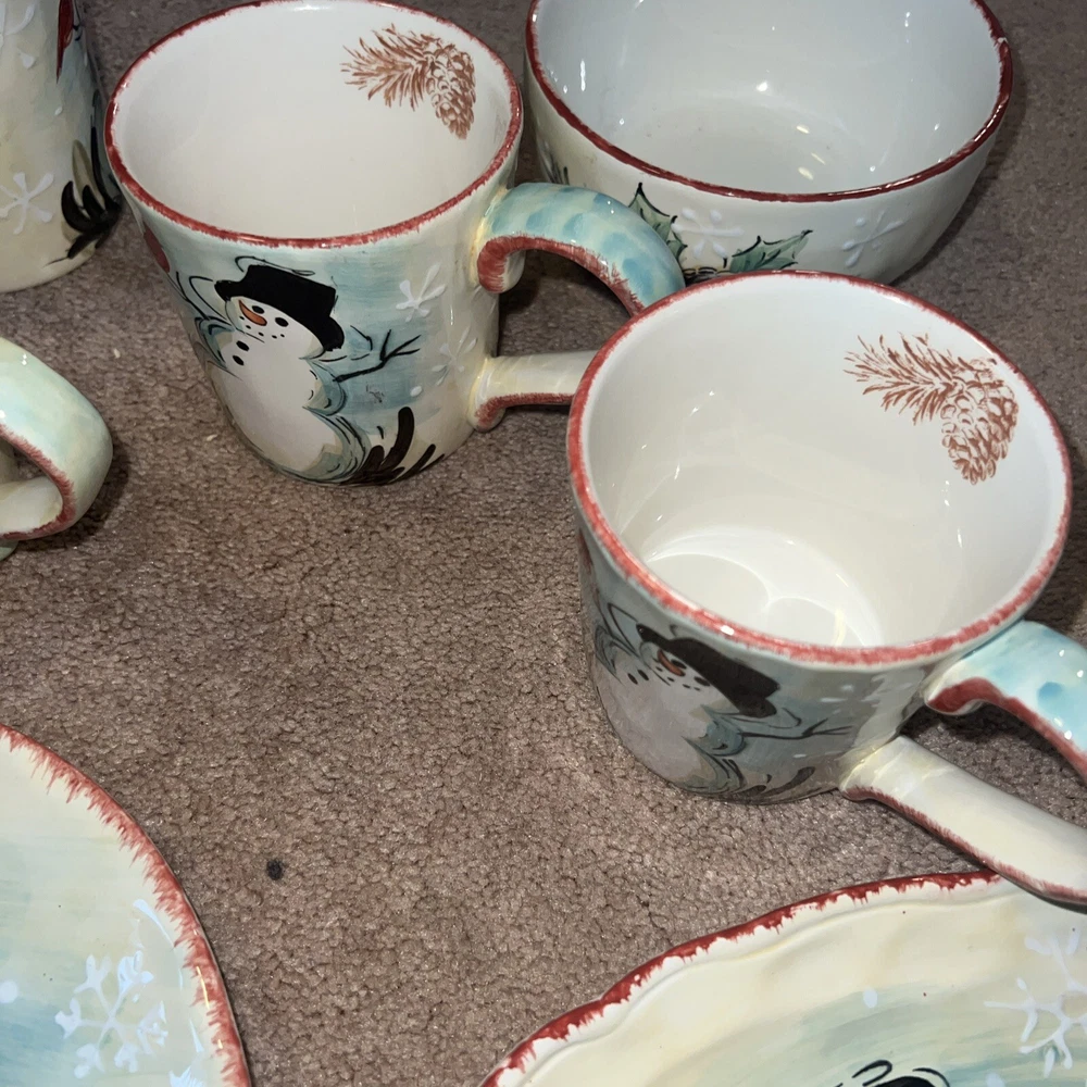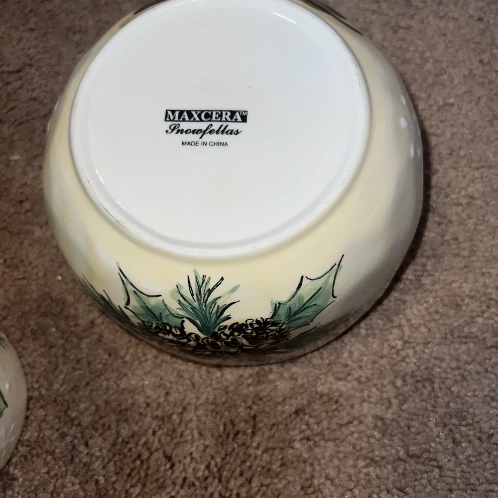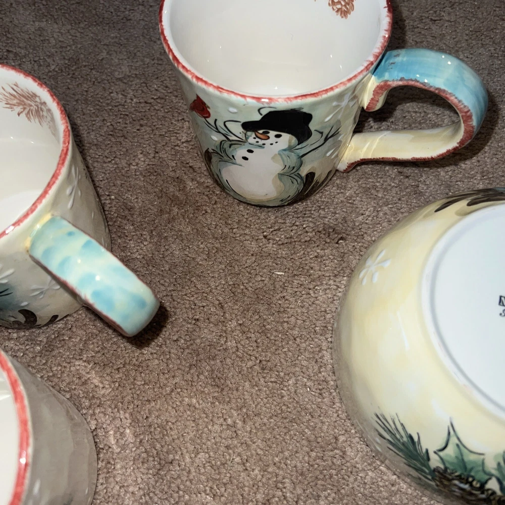 4 - Snowman Mug Maxcera "Snowfellas" Mug or Cup Platter Plate Bowl Lot