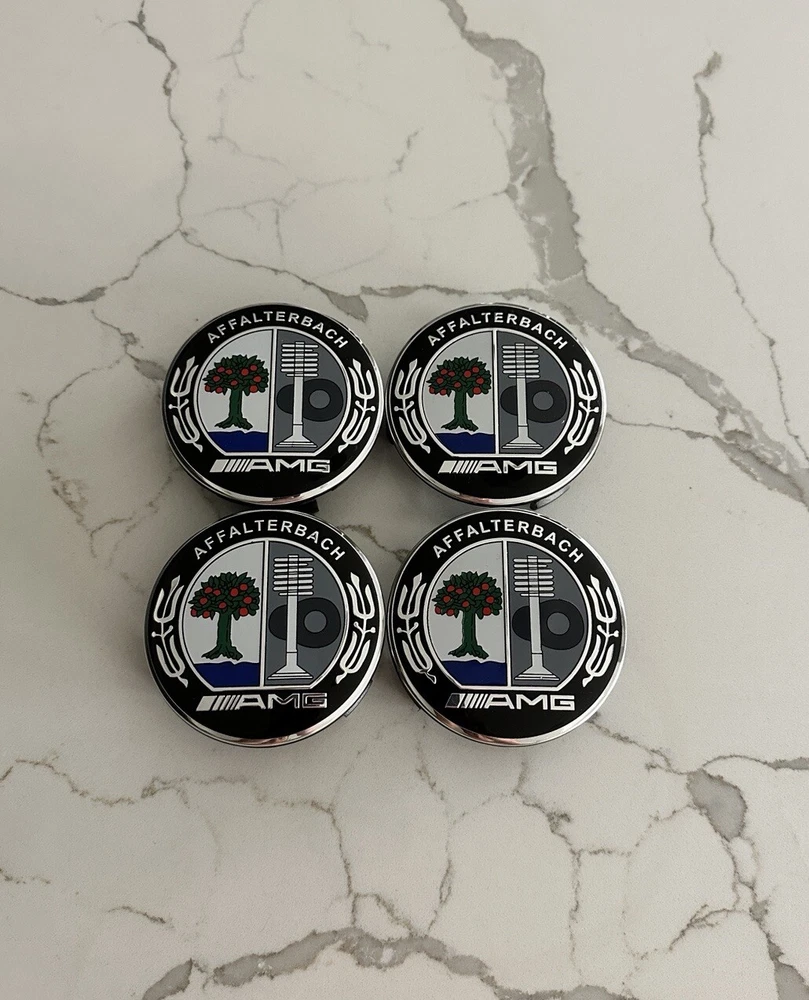 Brand new set of 4 Amg 75mm hubcaps Will ship within the next business day after purchase