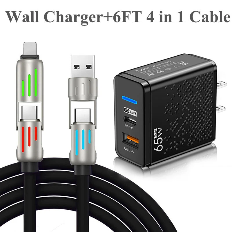 4 in 1 USB C Cable 240w Fast Charging & Data Sync Multi Silicone RGB Charge Cord