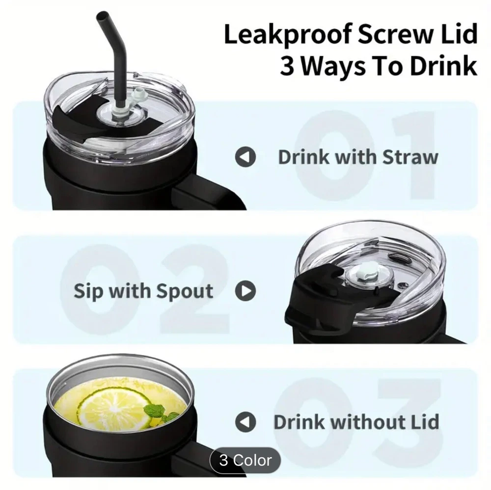 1pcs, 40 Oz Tumbler With Handle And Straw, Leakproof Vacuum Insulated Stainless Steel Cup With Screwed Lid & Straw Gym Water Jug Travel Mug For Hot/ Cold, Sweat Proof