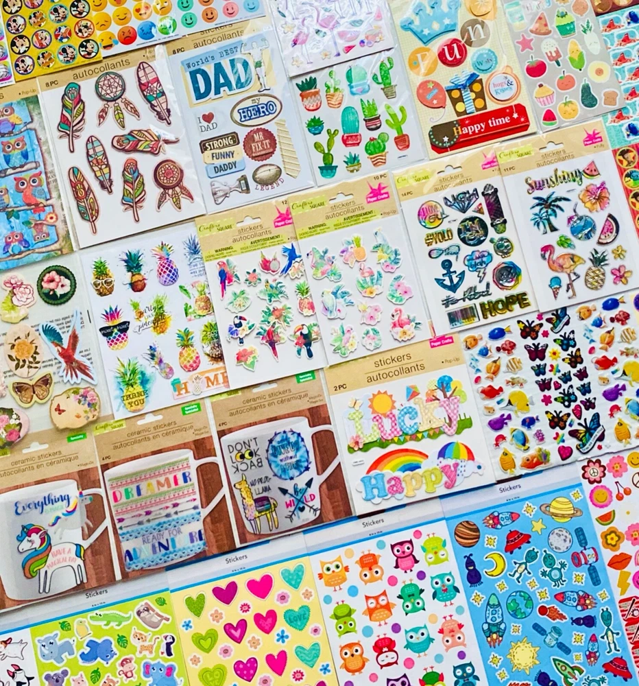 All stickers are BRAND NEW | New Full Sticker Sheets! Popular Mixed Sticker Lot | The Ultimate Kit | Qty. 400+ Stickers | High Quality Only! Fun Assortment of Puffy, Scrapbook, Cartoons, Bubble, Pop Up Stickers Packs For Everyone! I have included a large variety of pictures of the assortment available. The pictures give you an idea of what you will be receiving. Please Note: You will not receive everything pictured. Please contact me with any special requests. This HUGE Variety of fun designs stickers can be used in parties, classroom, school and home, good for reward for students, potty training, adding inside a birthday card, game activities, entertaining toddlers, etc. Perfect Gifts for Kids & all Occasions: Can be given as a gift for kids, girls, boys, toddlers, teens, students, friends, and classmates, they will love it! Each package of stickers is a different style & theme with some lovely embellishments like rhinestones, ribbons, buttons and other 3D details that make these quality stickers look so unique!