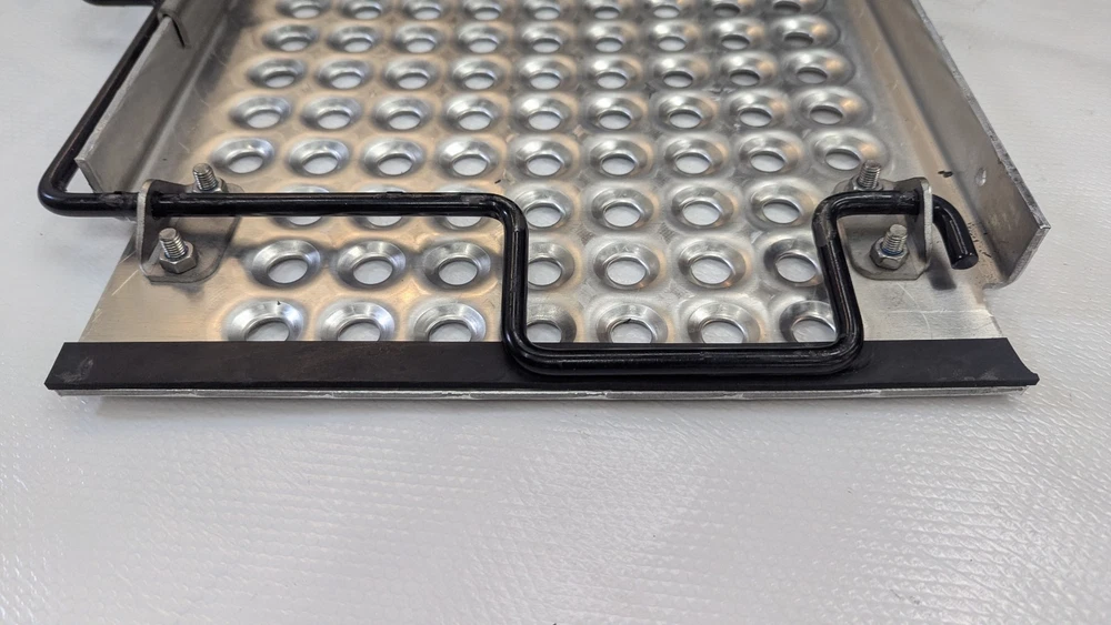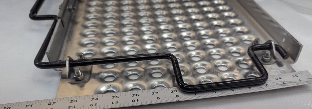 4067969C92 International Truck Deck Plate (15"x30") Quick Release Freightliner Peterbilt Kenworth Volvo Mack. This is a universal deck plate walking platform for behind the cab or bunk of your truck. Great frame access plate. Nice aluminum high traction and very good looking. Not a super high polish but a very nice finish. Quick Release / Install just pull the handles down and set on the frame move the handles back to their stowed position to clamp to the frame. The spring action design gives flexibility for different thicknesses of frame. Both handles are on the same side so you can put 2 together to form a 30 x 30 plate with no gap. New unused deck plate that have some light scratches from handling. They all have a few scuff marks from being boxed together without packaging in between. Quantity discounts helps with the freight cost of this oversized part. Free shipping