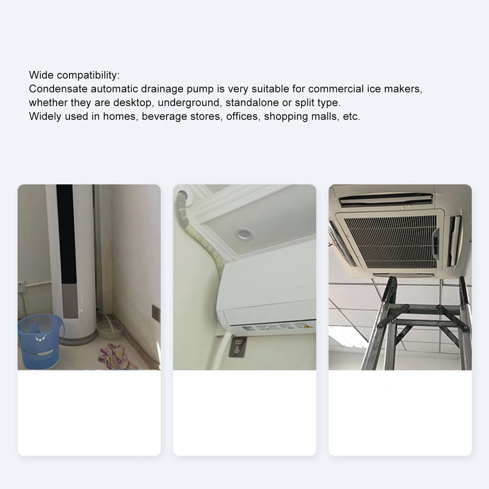 Feature: 1. High Flowing Efficiency: Equipped with a 200ml water tank, our condensation pump is designed to manage the water discharge from ice makers with an impressive flowing rate of 40 liters/hour. It ensures efficient and timely drainage, maintaining a dry environment for your ice without worrying about rapid melting. 2. Low Noise Work: Our compact condensation pump operates at a whispered level of 25 decibels, offering high performance without disturbing your regular activities. It features vent holes for quick heat dissipation and anti shock pads to reduce noise while enhancing stability. 3. Plug and Play Convenience: With automatic start and stop functionality, the condensate pump springs into action when water arrives the lower probe. It conveniently connects to commercial ice machines or air conditioners via a 7mm inlet, ensuring automatic drainage when filled with water. 4. High Level Safety Switch: The safety switch automatically shuts off the device once the sensor notes an excessive water level in the tank, preventing overflows. Ensure the pump is vertically installed on a flat or wall for optimal performance. 5. Widely Compatible: Ideal for commercial ice machines, our micro condensation automatic drainage pump suits countertop, under sink, standalone, or split systems. Its application extends across homes, beverage shops, offices, malls, and more. Specification: Item Type: Condensate Pump Material: ABS Flowing Rate: 40L/h Maximum Head: Approx. 10m / 32.81ft Water Tank Capacity: 200ml Voltage: 110VAC 60HZ Maximum Air Conditioner Power Capacity: 15KW (45,000btu/hr) Noise Level: 25(dB.30mm) Package List: 1 x Condensate Pump 2 x Screws 2 x Expansion Screw 1 x Hose 1 x Filter Net 1 x Accessory 1. Our listing price includes the value of goods,packaging cost,and export taxes,not including international duties. 2. duties,taxes,and charges are not included in the item price or shipping fee. 3. T he duties are buyers' responsibility .Please check with your country's customs office determine what these additional costs will be prior to your purchase. 4. All disputes arising from the duties will be submitted to ebay for solution. 1. Any questions, pls. contact us via ebay message or email us. We will reply your message within 48 hours. If you do not receive our reply within 48 hours, pls. post a message again because sometimes our message system may block some emails. 2. If you are satisfied with our service, pls. kindly leave us a positive feedback and give us the Detailed Seller Rating with all " 5 " in very area 3. Our aim is to provide Level Customer Service, your recognition will encourage us greatly and serve you better. We strive to keep all our customers satisfy. We will do our up most to exceed your expectations in customer service, communication and dispatching of your orders. On Dec 10, 2024 at 22:29:36 PST, seller added the following information: