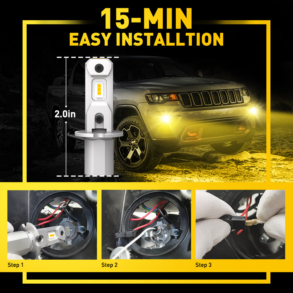 These LED fog lights are fantastic! The bright 3000K golden yellow cuts through fog perfectly, and the 4000LM output gives great visibility. Installation was a breeze—just plug and play with no wiring hassle. They turn on instantly, handle vibrations well, and the build quality feels durable. Perfect upgrade for fog lights or DRLs with long-lasting performance and superior illumination. Highly recommend!