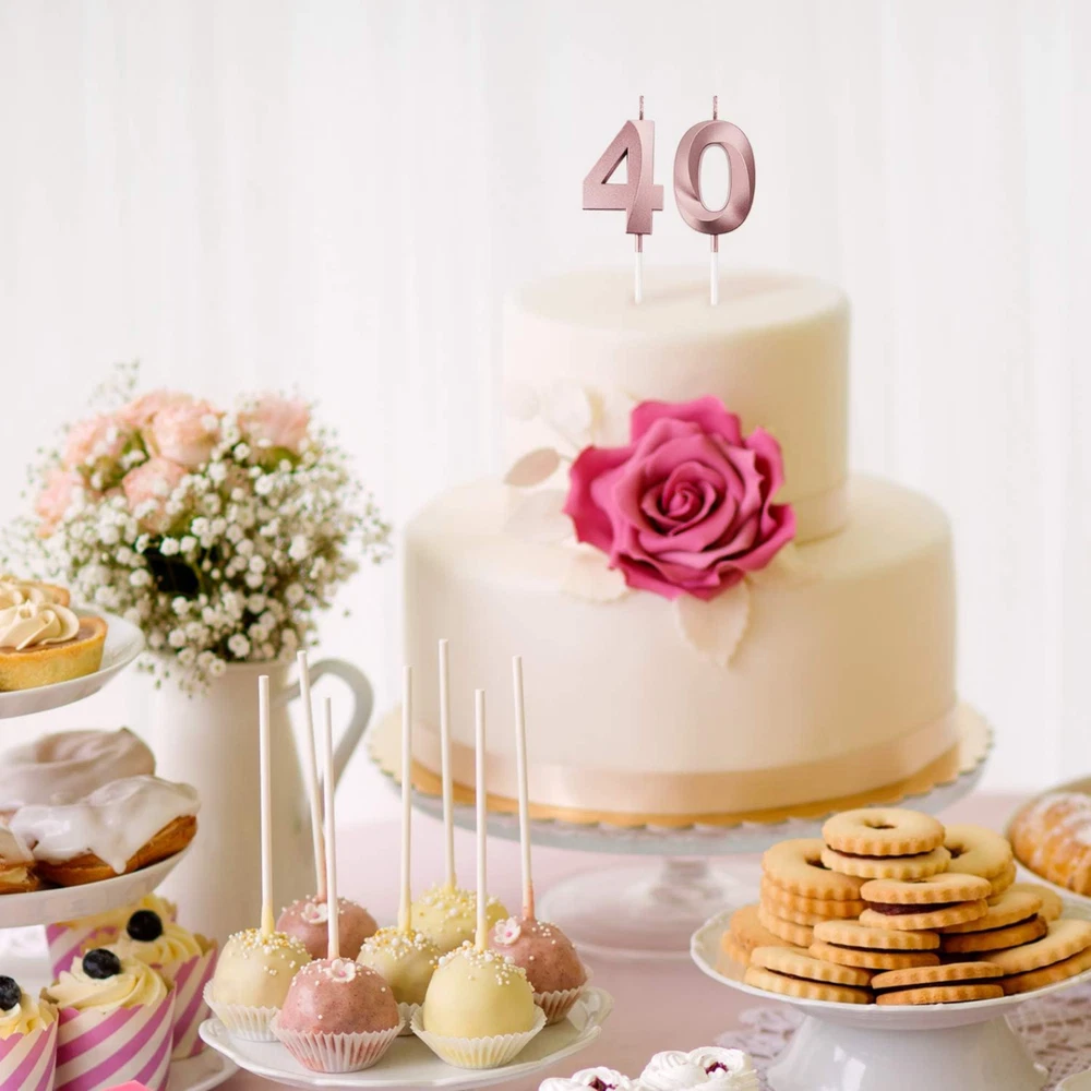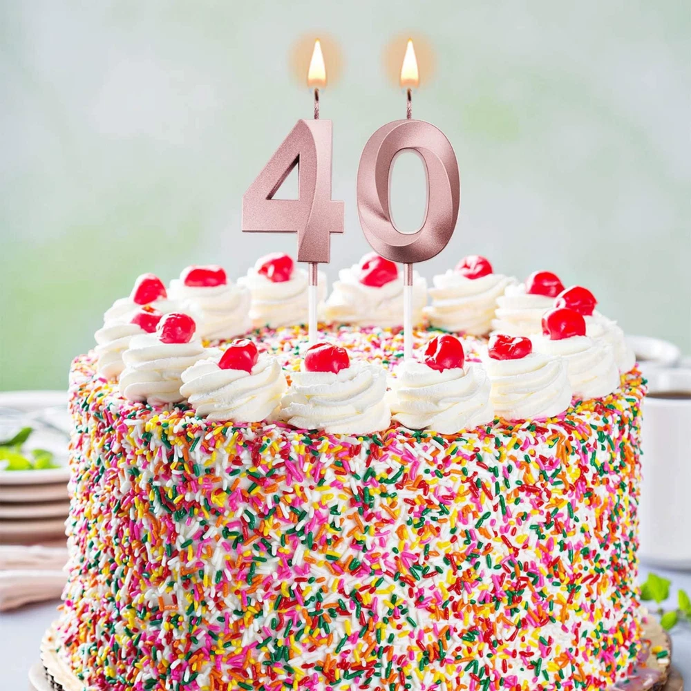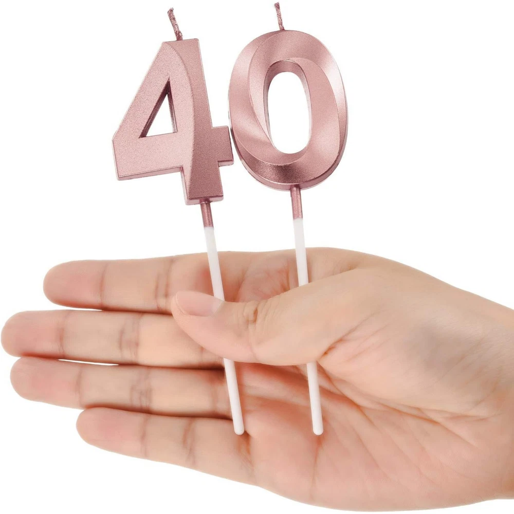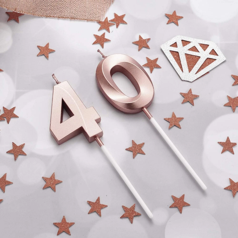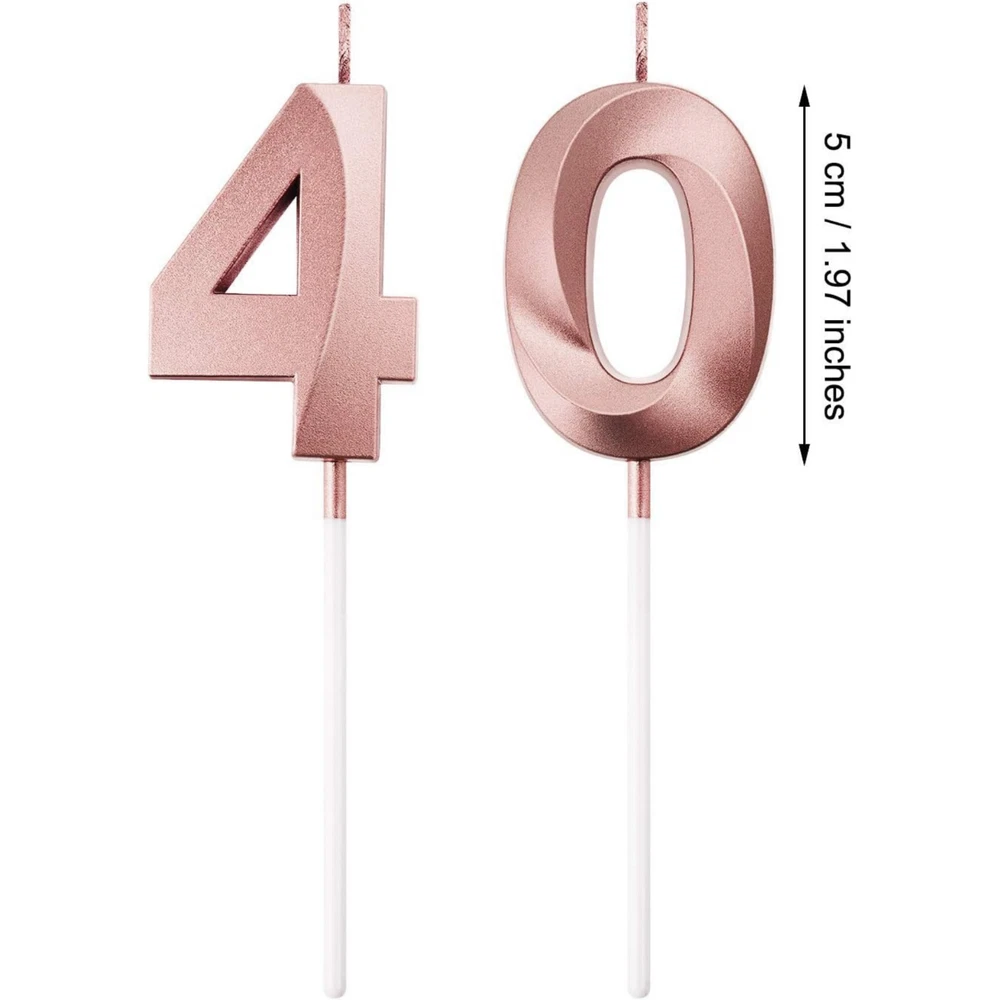 40th Birthday Candles Cake Numeral Candles Happy Birthday Cake Topper Decoration for Birthday Party Wedding Anniversary Celebration Supplies(Rose Gold) About this item Reliable to use: the birthday number candles are made of wax material, non-toxic, odorless and safe for your use, easy to insert and provide bright light, can burn evenly and consistently, give you nice using experience What you get: comes with 2 pieces numeral candles with number 4 and 0, can meet your birthday party needs, each numeral candle is packaged in a separate plastic box, provide good protection and reduce damage during transportation Size: each numeral birthday candle size is approx. 5 cm/ 1.97 inches in length, total length (include the candle pick) is approx. 11.5 cm/ 4.5 inches, proper size as cake topper decoration for most birthday and wedding cake Wide application: ideal cake decoration for many occasions, such as birthday party, baby showers, anniversaries, retirement parties, family reunions, weddings, Hawaiian parties, even Christmas Day, bring you memorable and meaningful party Delicate appearance: the happy birthday cake candles are meaningful for you to celebrate your birthday and nice cake topper decoration for embellishing your cake and cupcake, bright glow for creating romantic atmosphere and adding a touch of elegant Product Description Premium Quality Made of wax material, non-toxic and smokeless, odorless and safe for your use Eye-catch Design Lovely color shades and contours, proper size and weight Wide Usage Suitable for many occasions, bring you memorable and meaningful party Warm Note Please keep birthday cake candles in shade place away from the fire Product information Measurements Number of Items 2 Unit Count 2.0 Count Style Style Name 40th Theme Multiple (Anniversary, Retirement, Birthday, Baby Shower, Family Reunion, Christmas, Wedding) Numeric Theme Number 40 Occasion Anniversary,Retirement,Birthday,Baby Showers,Family Reunions,Christmas,Wedding Seasons All Season Color Rose Gold Item Shape Number Features & Specs Container Type Can Wick Quantity 1 Candle Type Novelty Candle Embellishment Feature Bow Additional Features Odorless,Non-toxic Important information Safety Information Keep the candle away from fire when not in use, adult supervision required during burning.