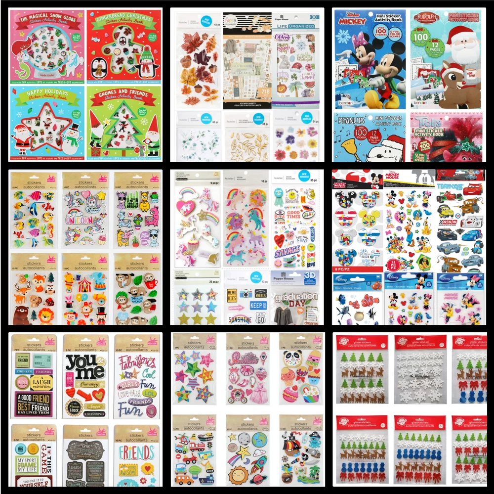 All stickers are BRAND NEW | Still in their original packaging! HUGE Mixed Sticker Lot | The Ultimate Kit | Qty. 4199+ Stickers | High Quality Only! Fun Assortment of Puffy, Scrapbook, Cartoons, Bubble, Pop Up Stickers Packs For Everyone! You will receive 44+ Sticker Sheets of beautiful colorful assortment. The Pack will include 4199+ Stickers overall! 44+ Sheets of Colorful Fun! I have included a large variety of pictures of the assortment available. The pictures give you an idea of what you will be receiving. Please Note: You will not receive everything pictured. Please contact me with any special requests. This HUGE Variety of fun designs stickers can be used in parties, classroom, school and home, good for reward for students, potty training, adding inside a birthday card, game activities, entertaining toddlers, etc. Perfect Gifts for Kids & all Occasions: Can be given as a gift for kids, girls, boys, toddlers, teens, students, friends, and classmates, they will love it! Each package of stickers is a different style & theme with some lovely embellishments like rhinestones, ribbons, buttons and other 3D details that make these quality stickers look so unique!
